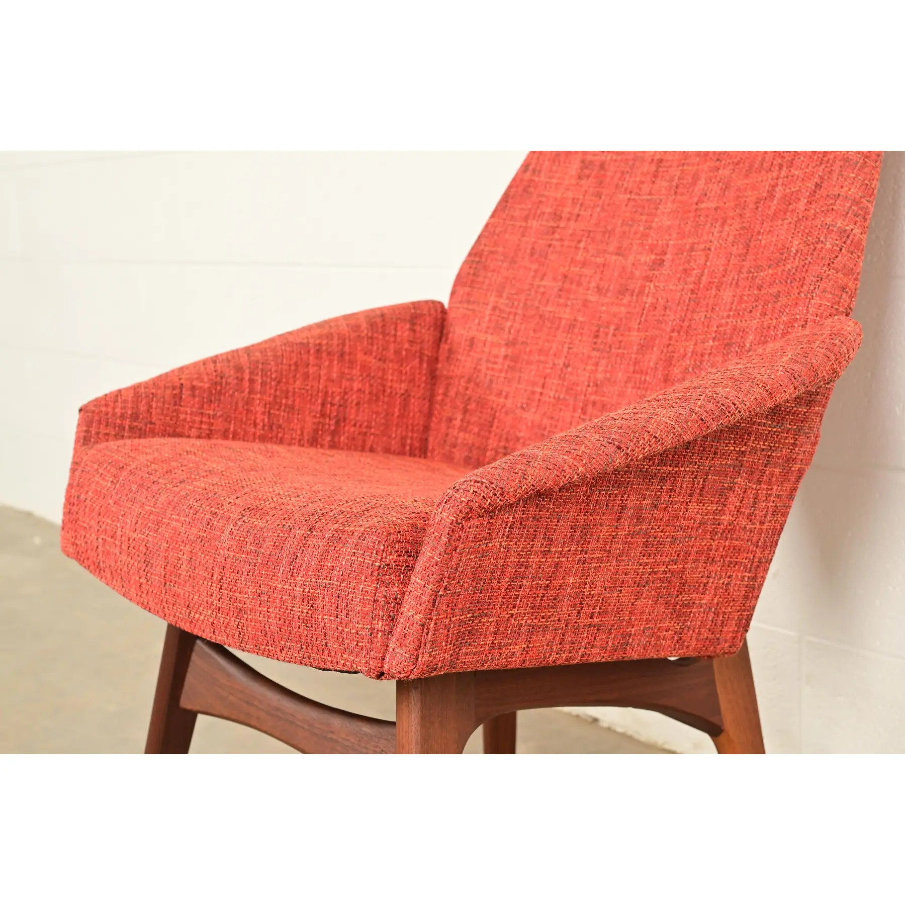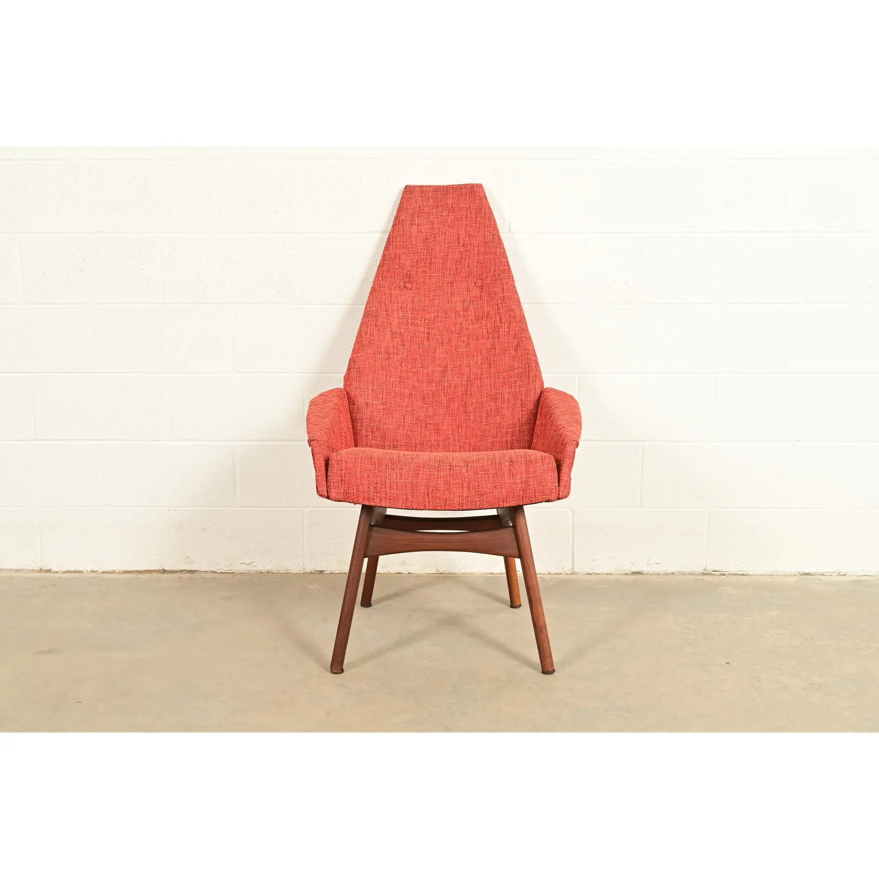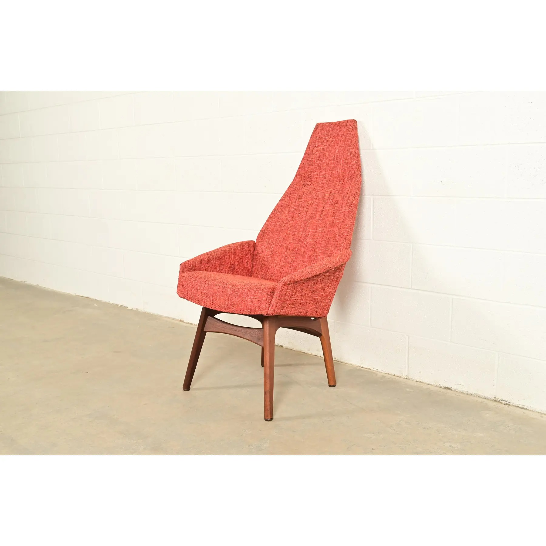 A rare and outstanding Mid-Century Modern high back lounge chair, club chair, or dining captain chair