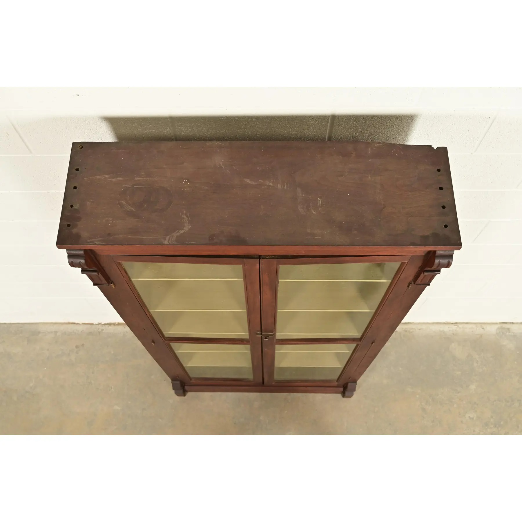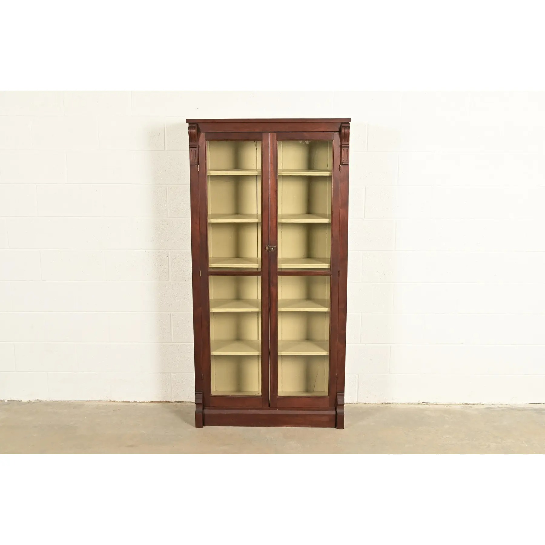 A gorgeous antique American Empire or Victorian style bookcase cabinet