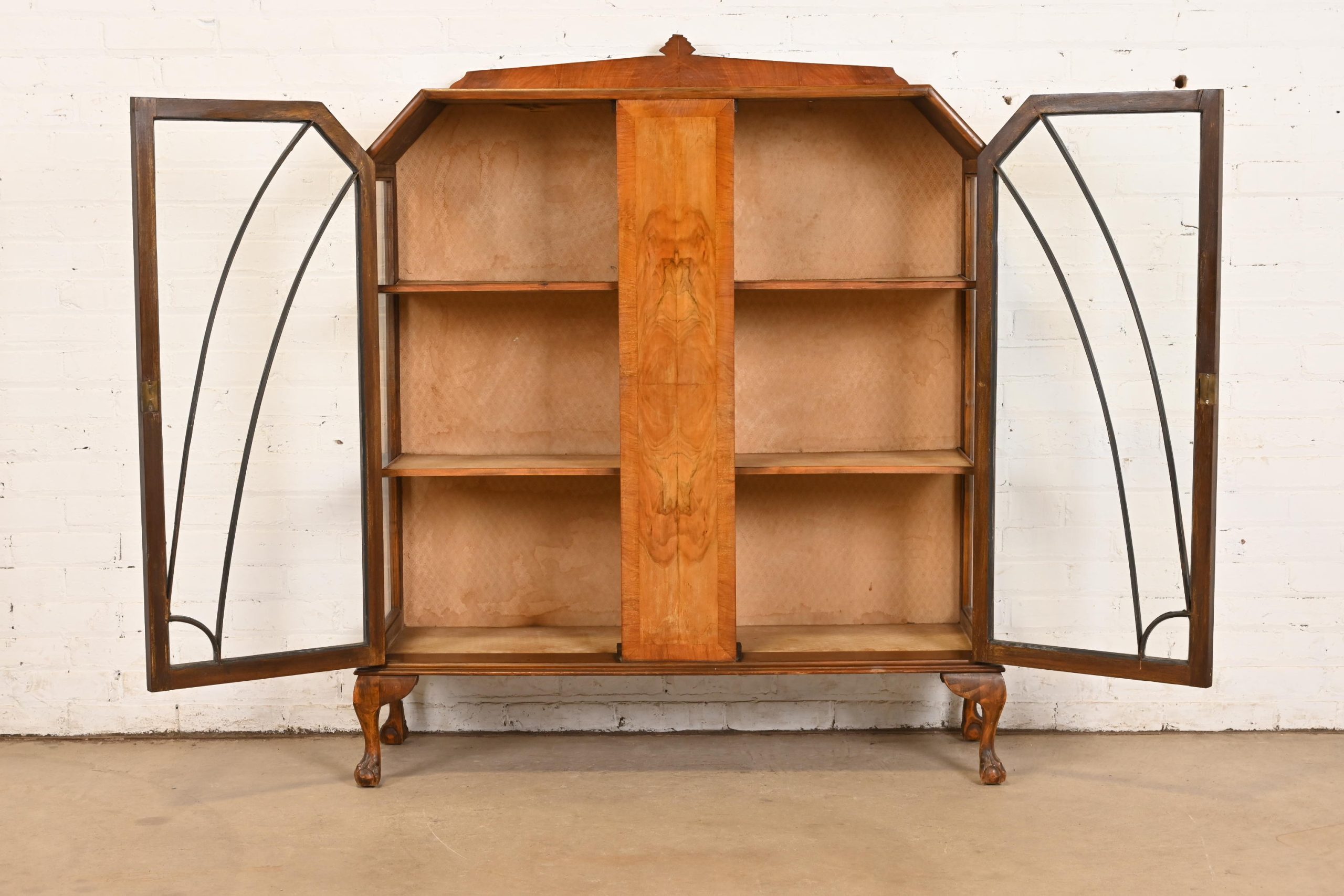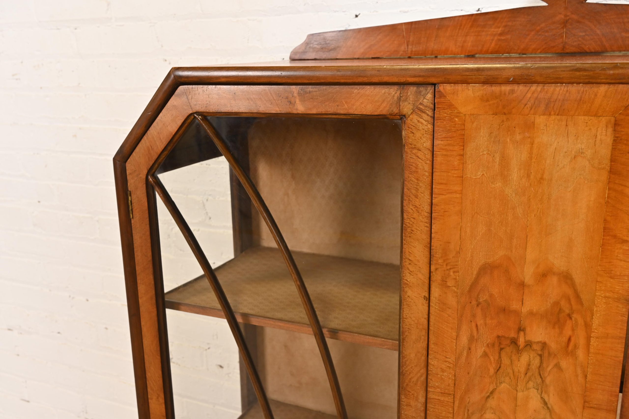 Antique Art Deco Burl Wood Bookcase or Display Cabinet, Circa 1920s