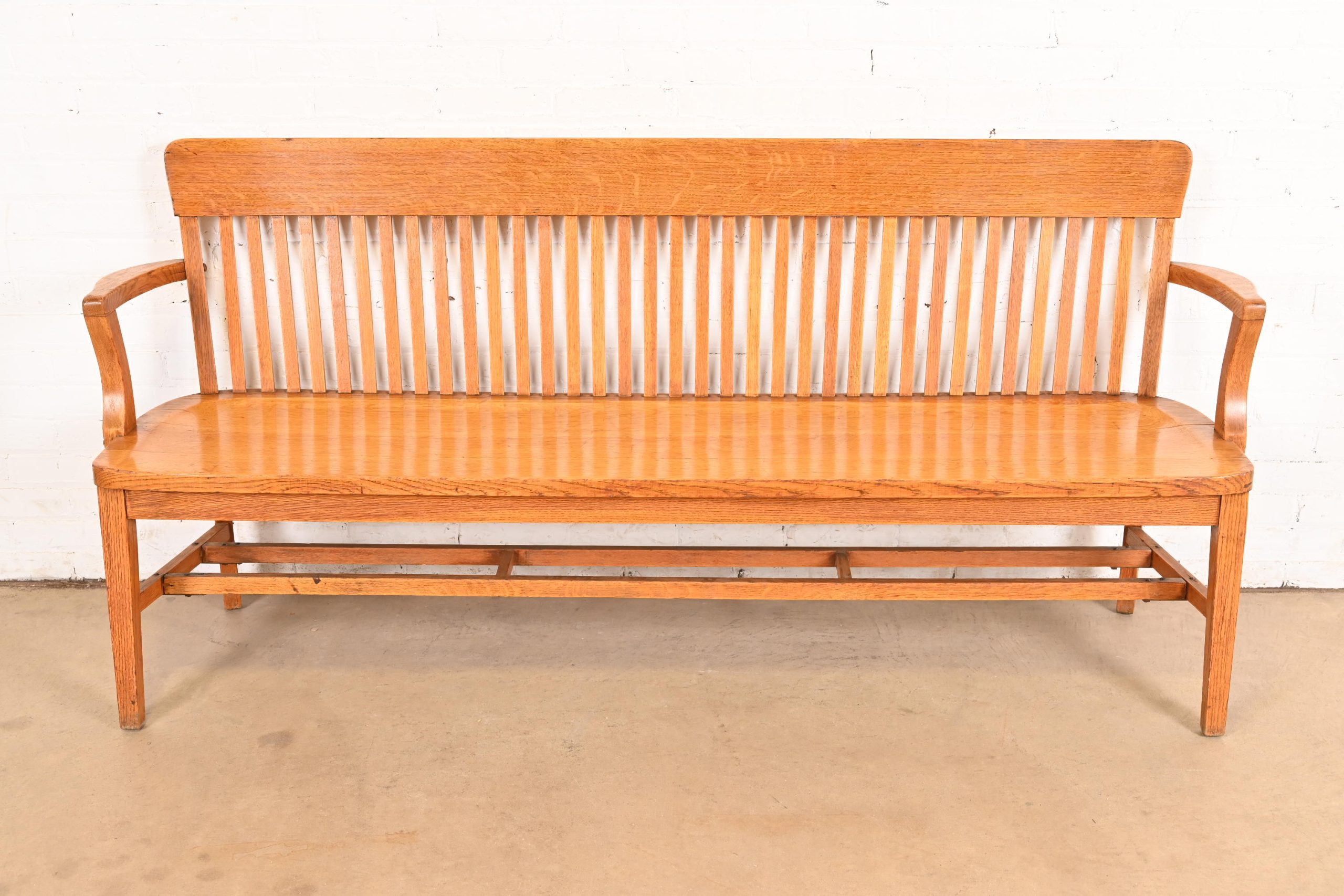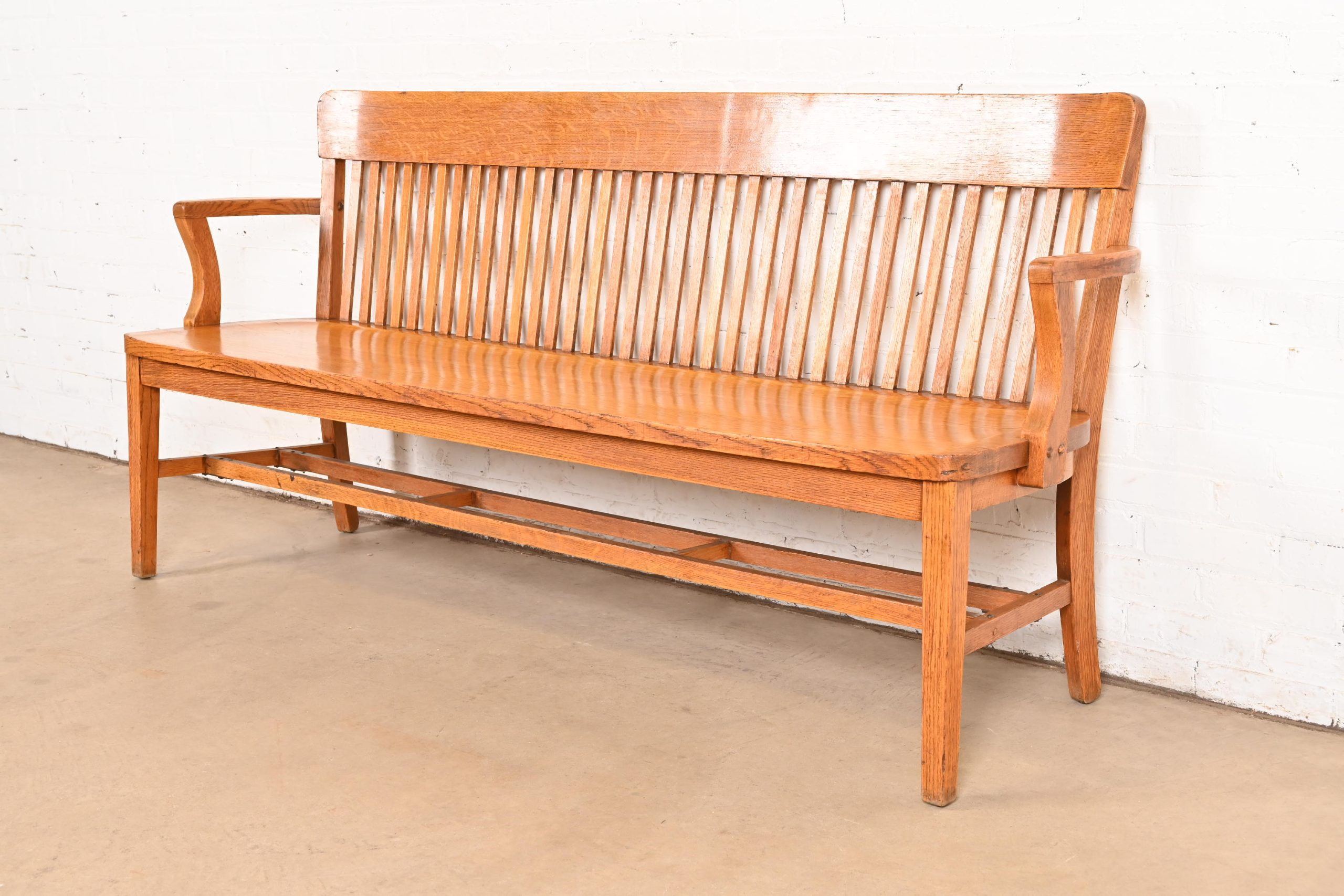 Antique Arts & Crafts Solid Oak Lawyer’s Bench