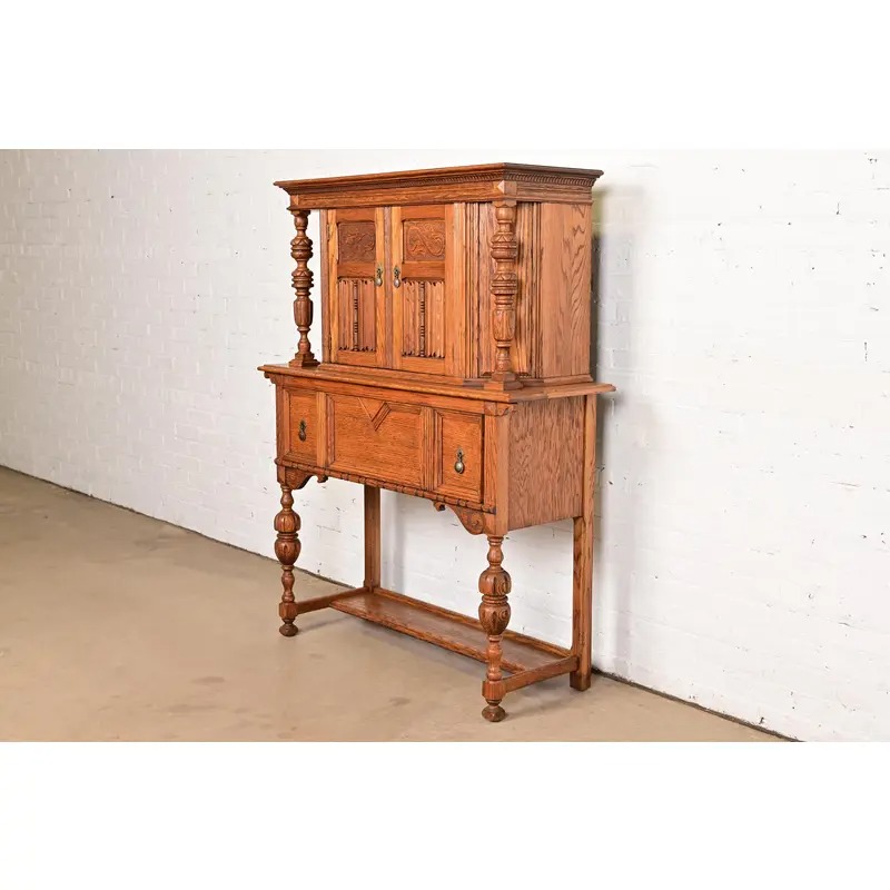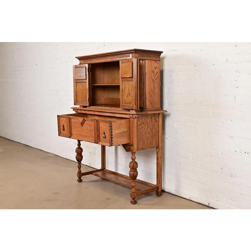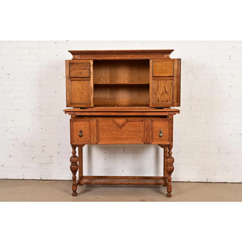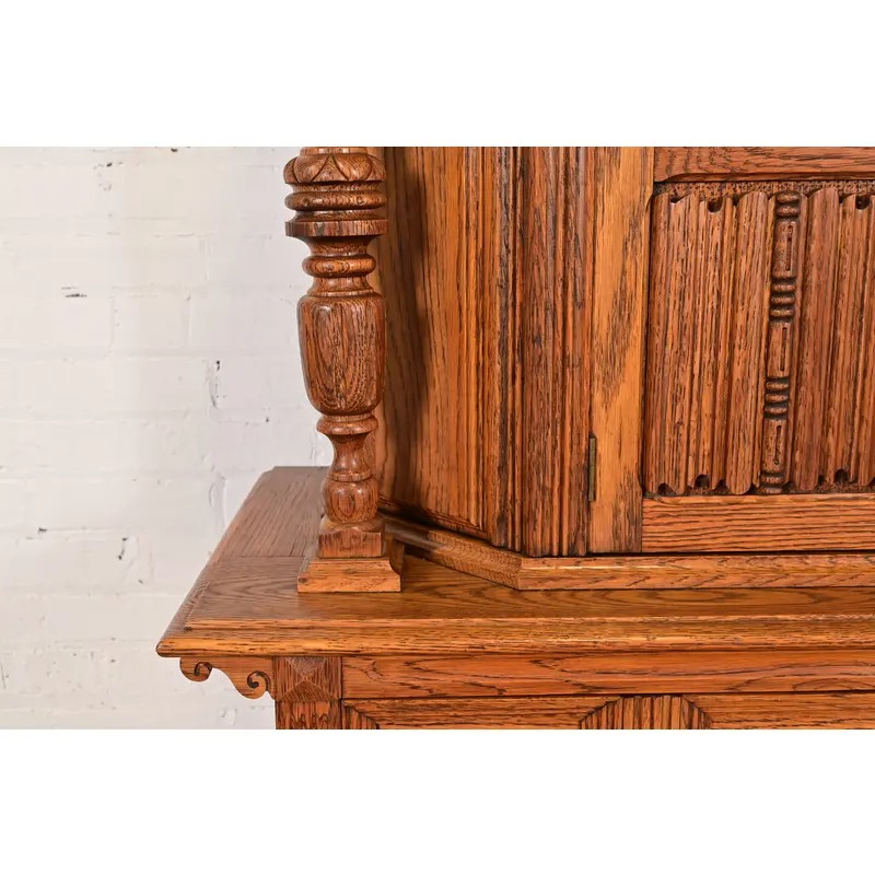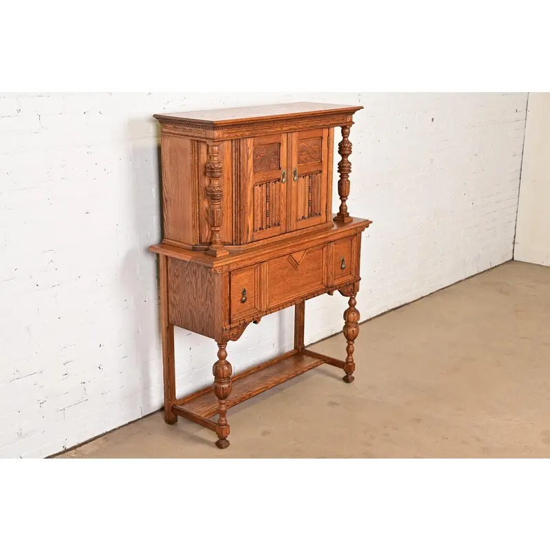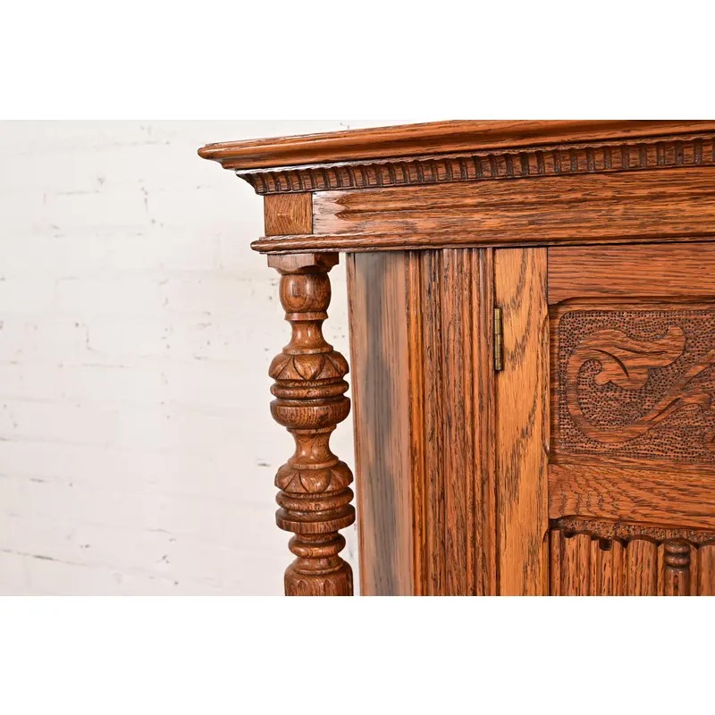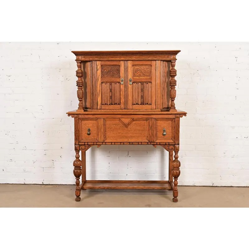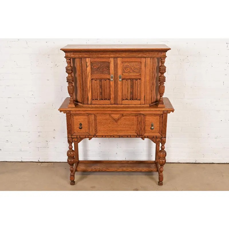 An exceptional antique English Jacobean, Victorian, or Renaissance Revival style bar cabinet