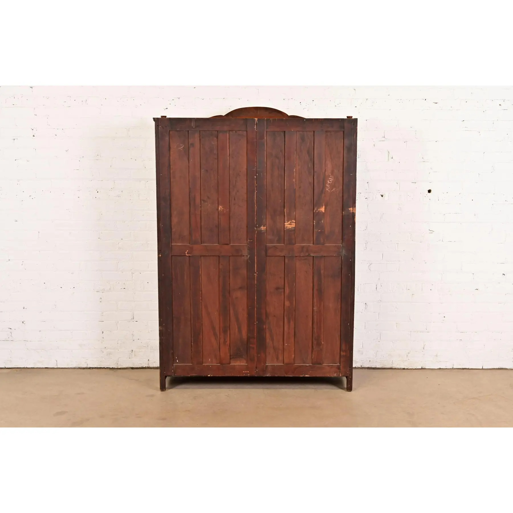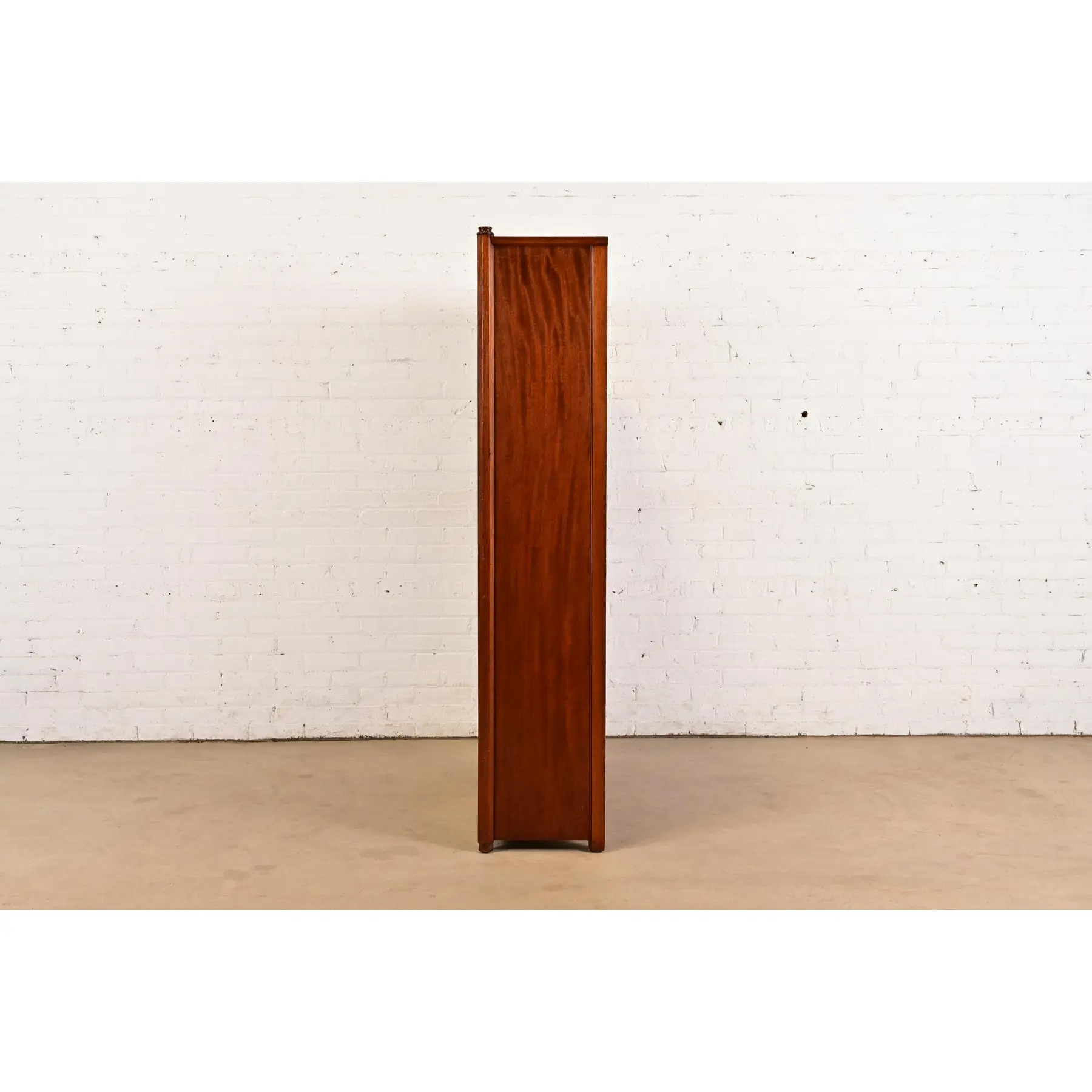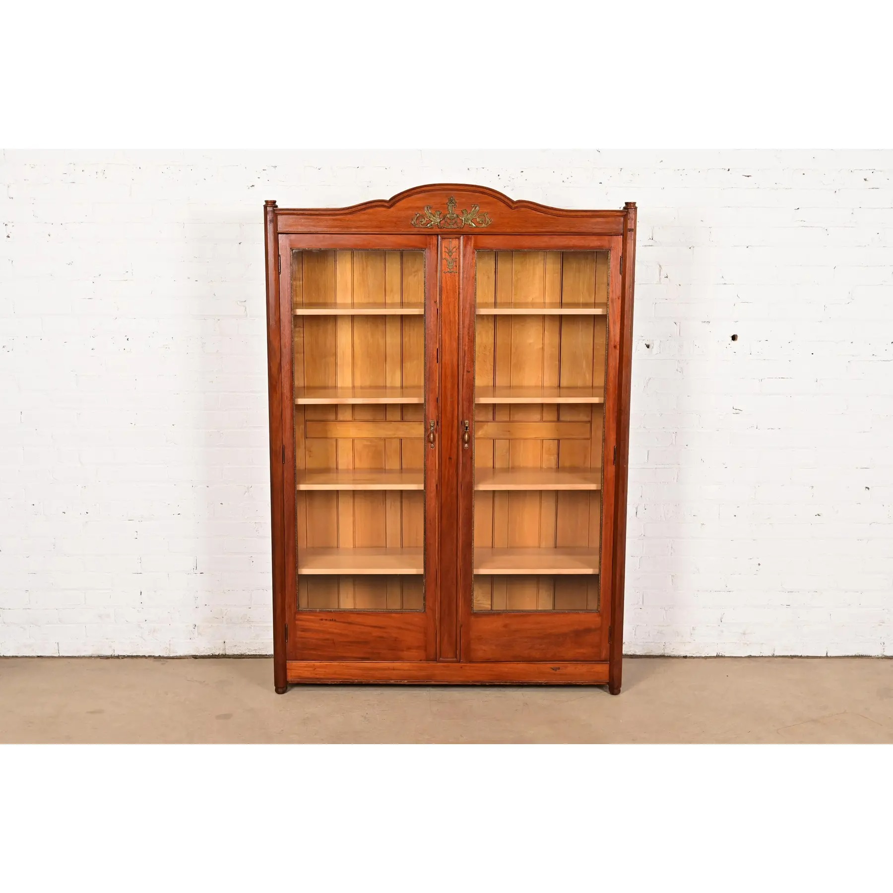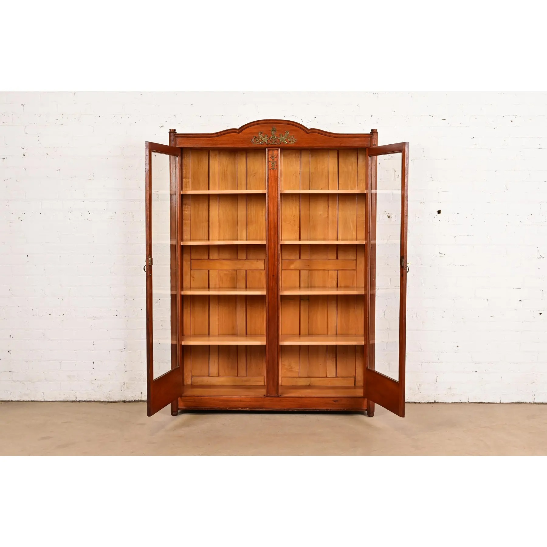 Carved mahogany, with glass front doors, mounted brass ormolu and hardware.