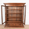 Ornate carved walnut with female busts, faces, and foliage. Original glass fronts. Shelves are adjustable.