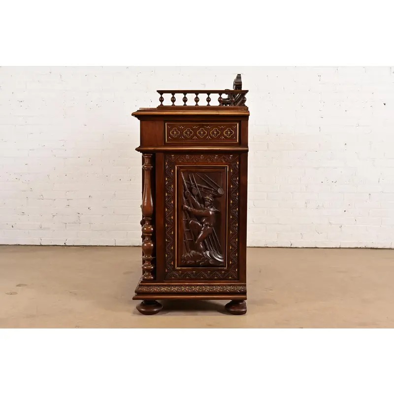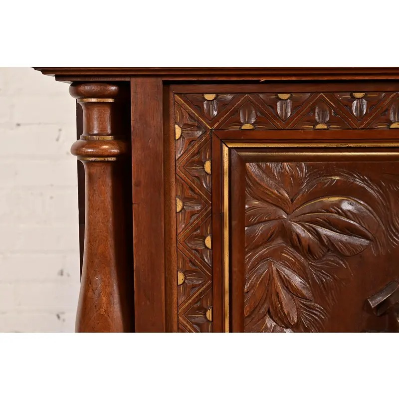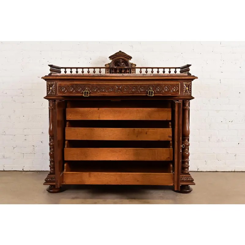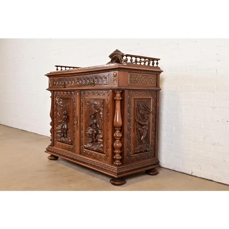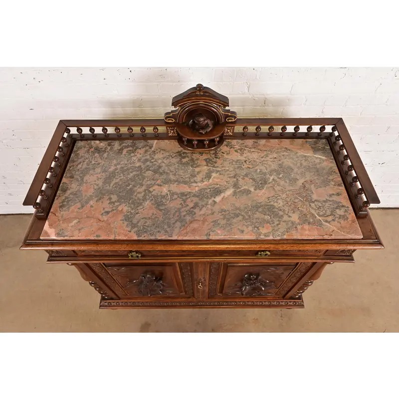 Antique Italian Renaissance Revial Carved Walnut and Marble Top Sideboard or Bar Cabinet, Circa 1890s