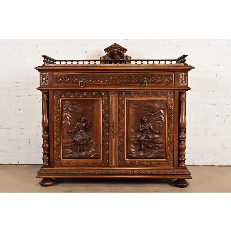A gorgeous antique Italian Renaissance Revival sideboard, buffet server, or bar cabinet