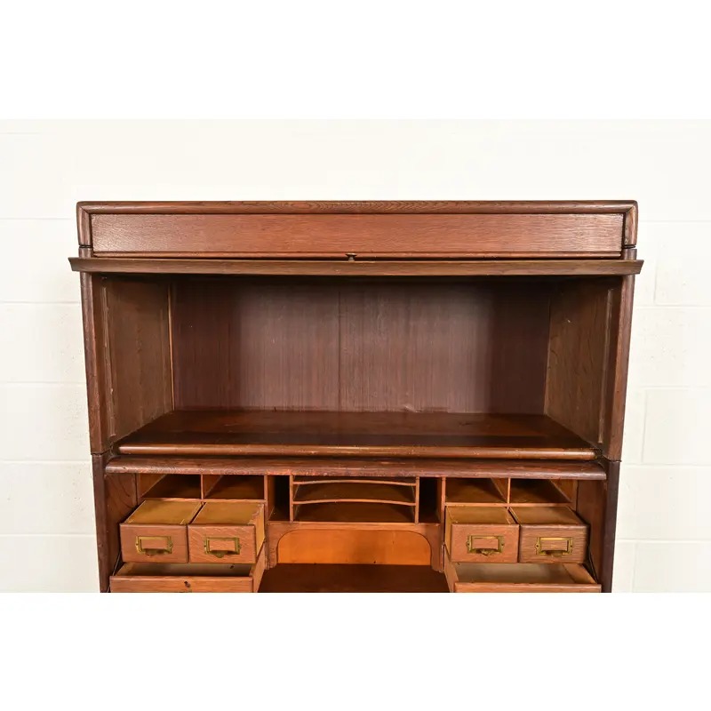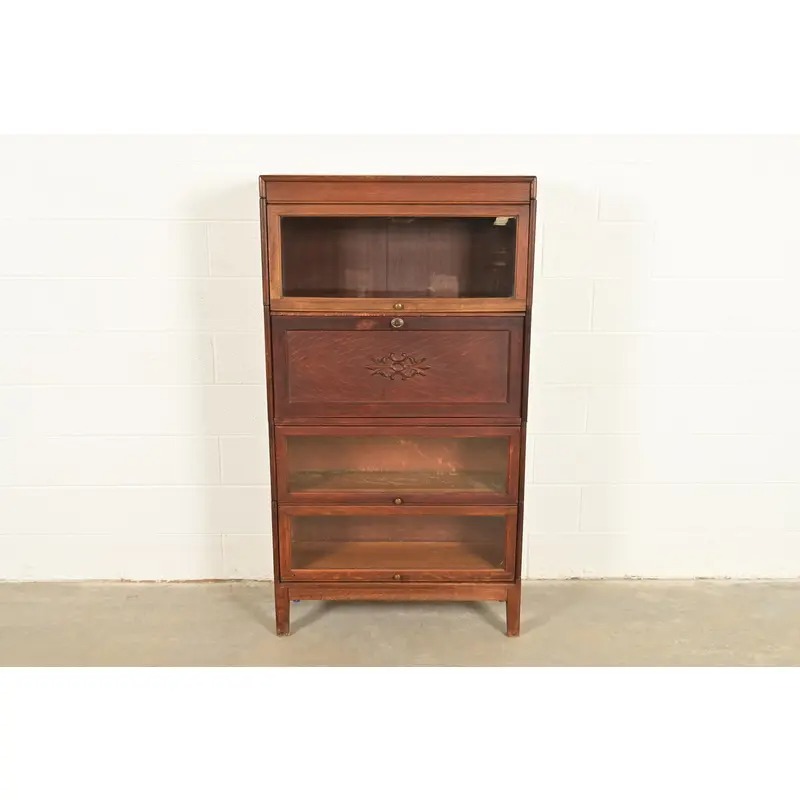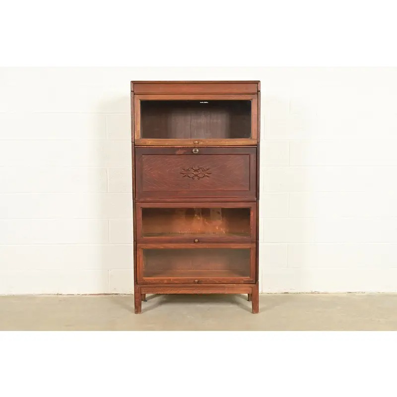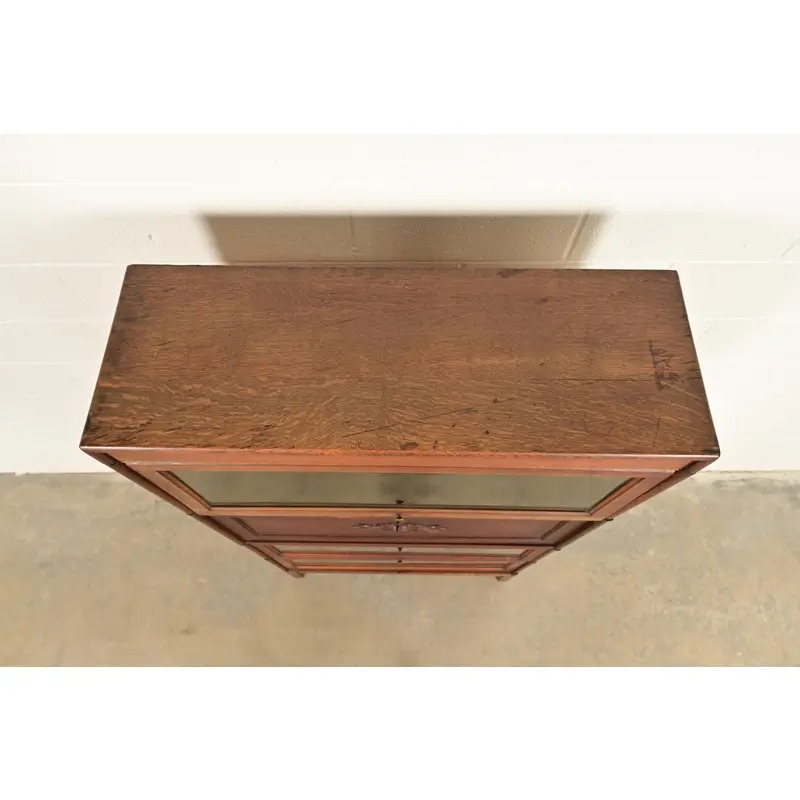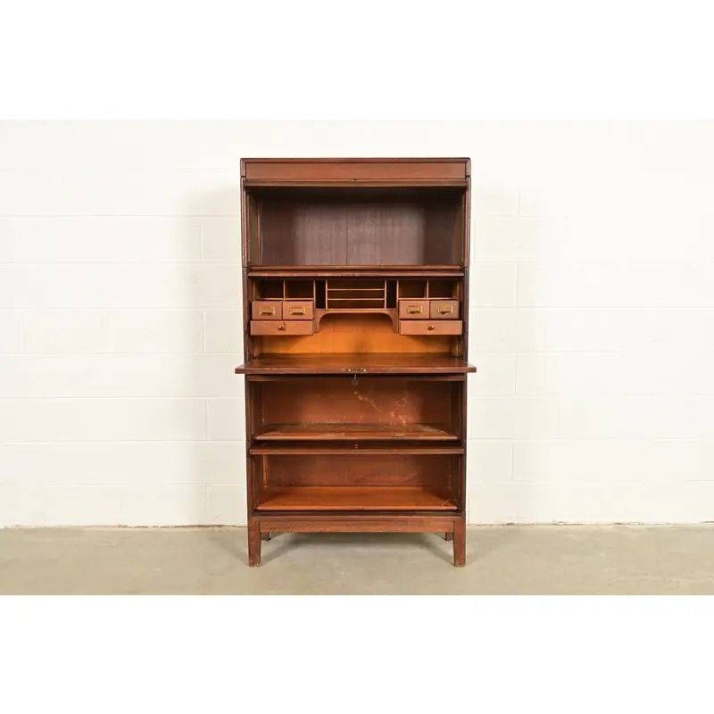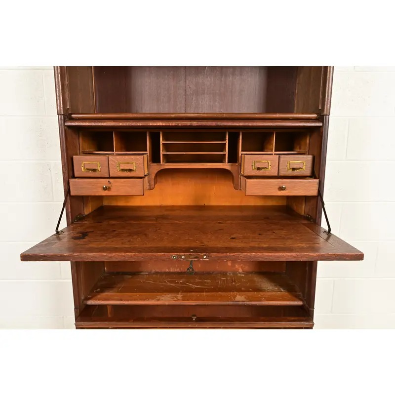 A beautiful antique Mission or Arts & Crafts period barrister bookcase with drop front secretary desk