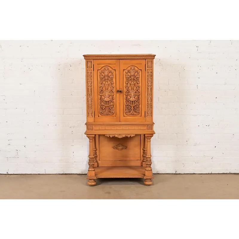 A gorgeous antique Renaissance Revival carved oak bookcase, cupboard, or bar cabinet