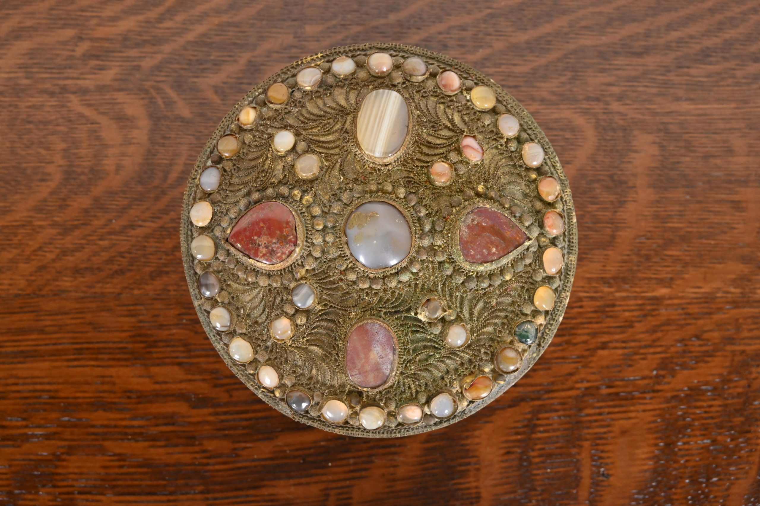 Antique Tibetan Bronze Filigree and Agate Ceremonial Wedding Box