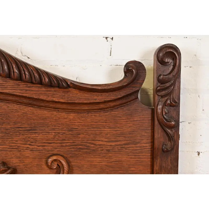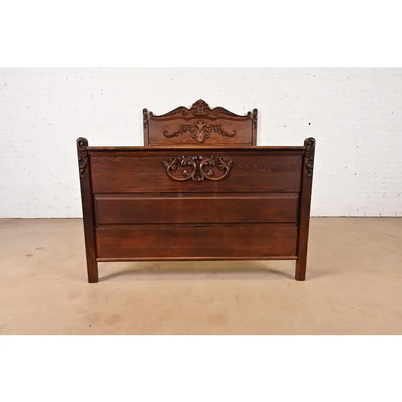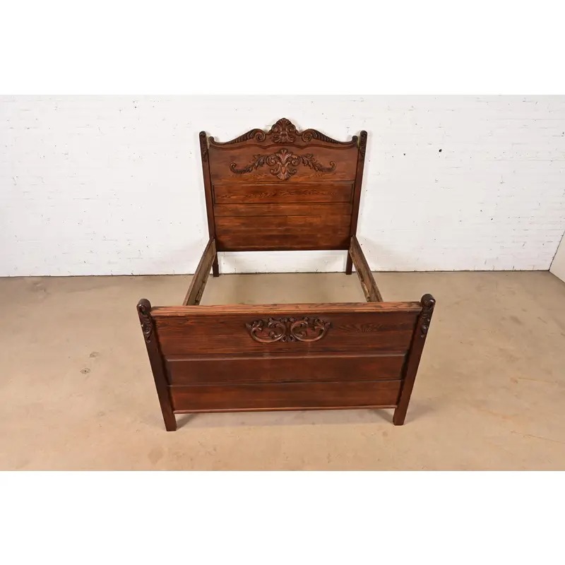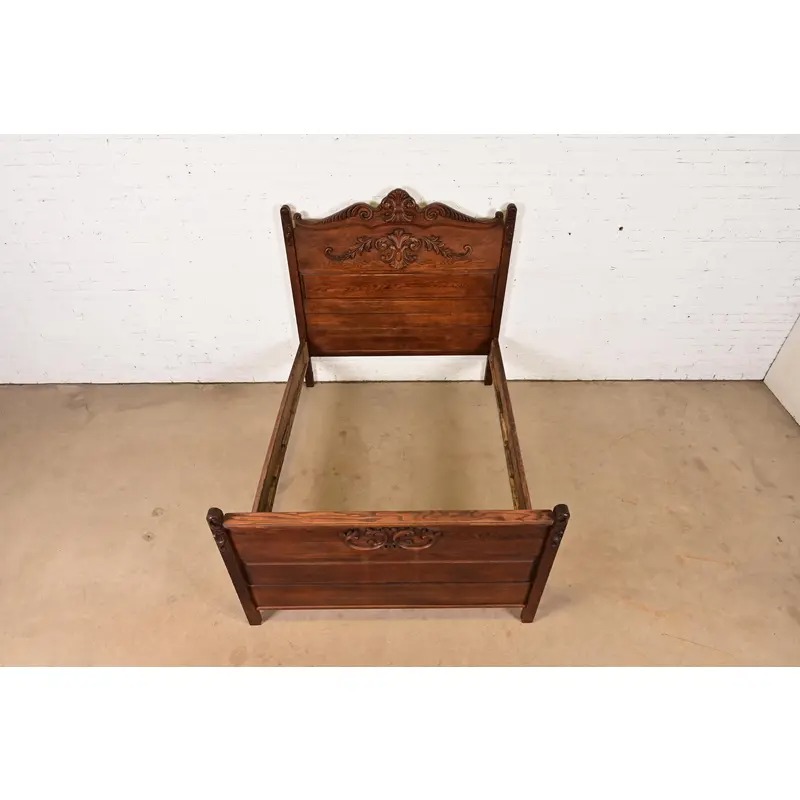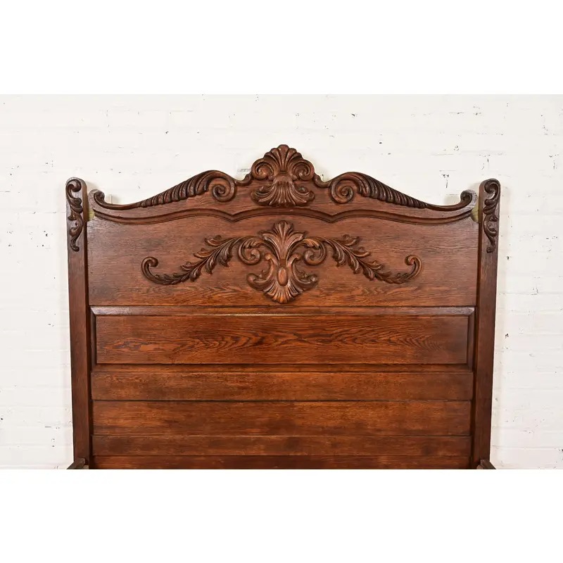 A gorgeous antique Victorian carved oak full size bed frame