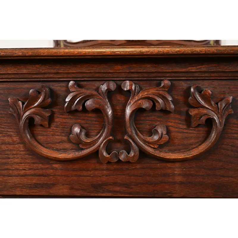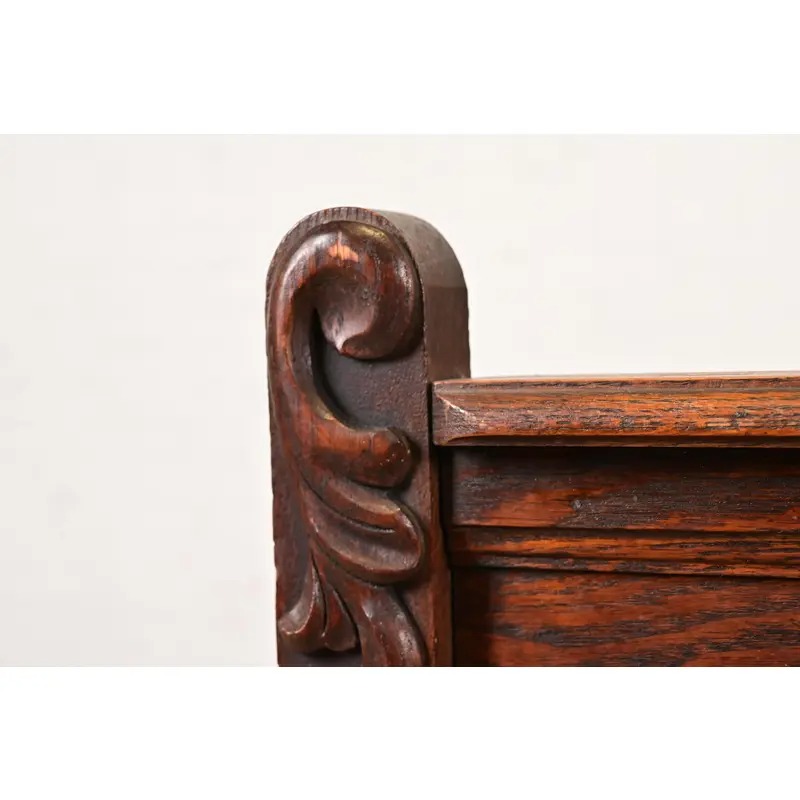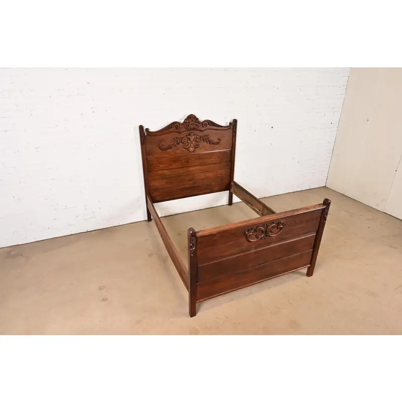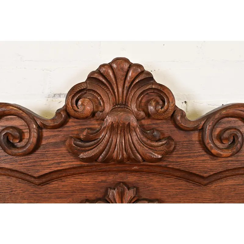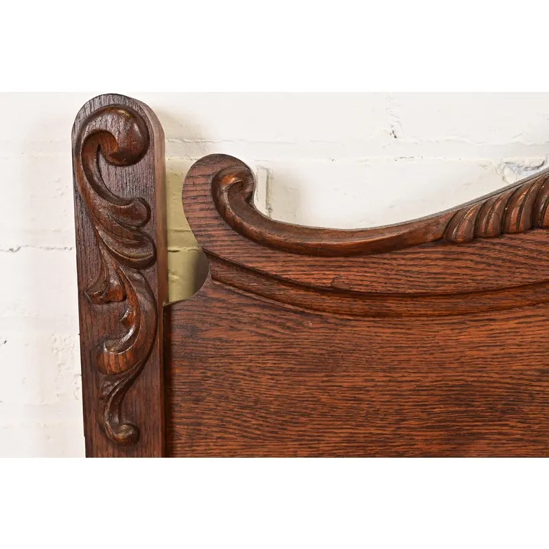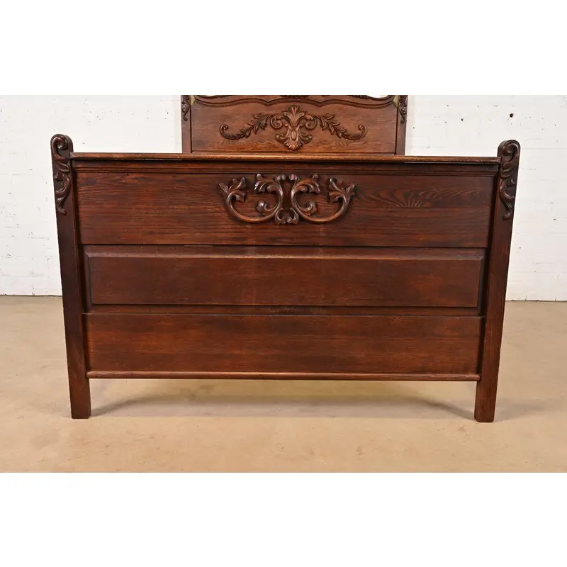 A gorgeous antique Victorian carved oak full size bed frame