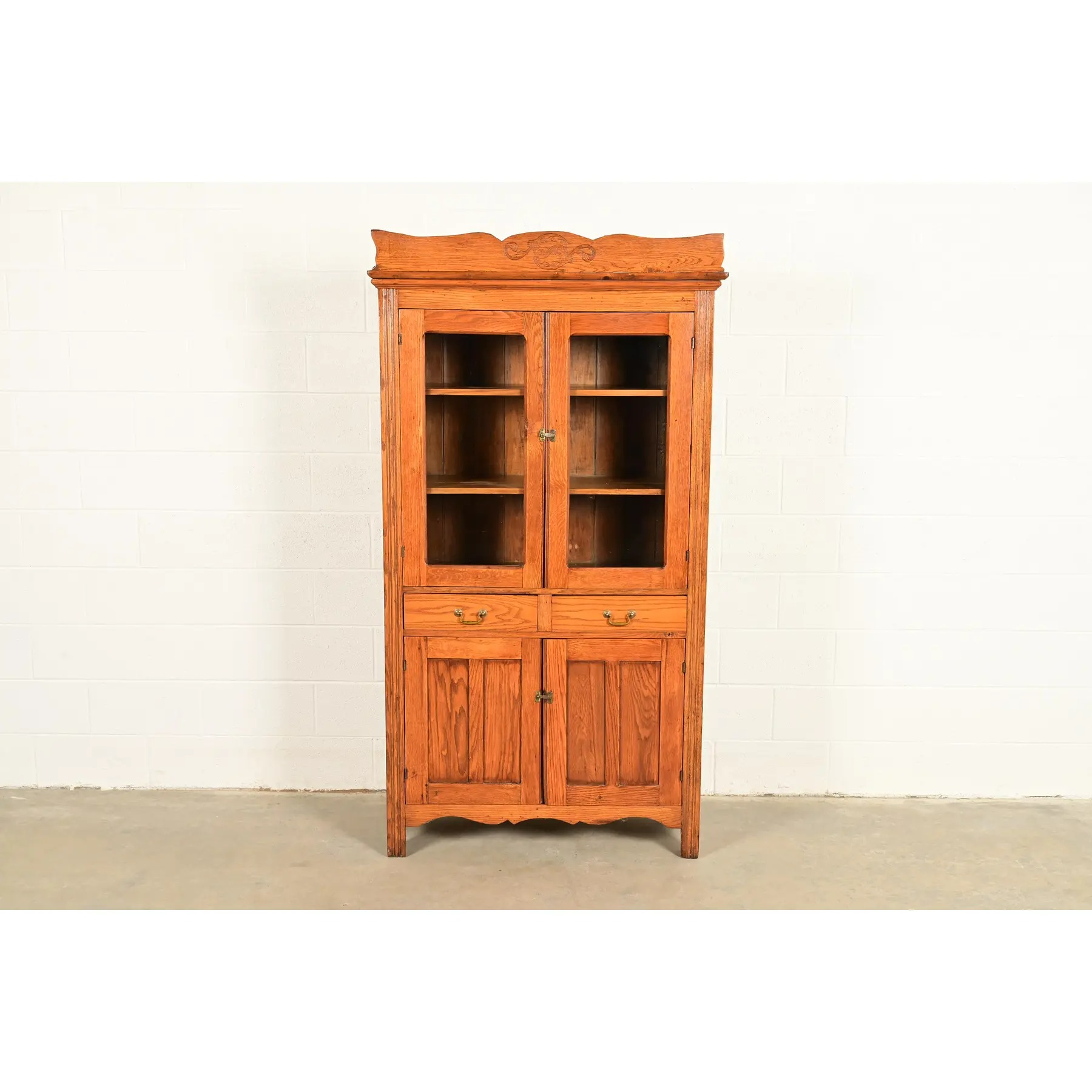 A gorgeous antique Late Victorian, Arts & Crafts, or Country Farmhouse bookcase, kitchen cupboard, pie safe, or dining cabinet