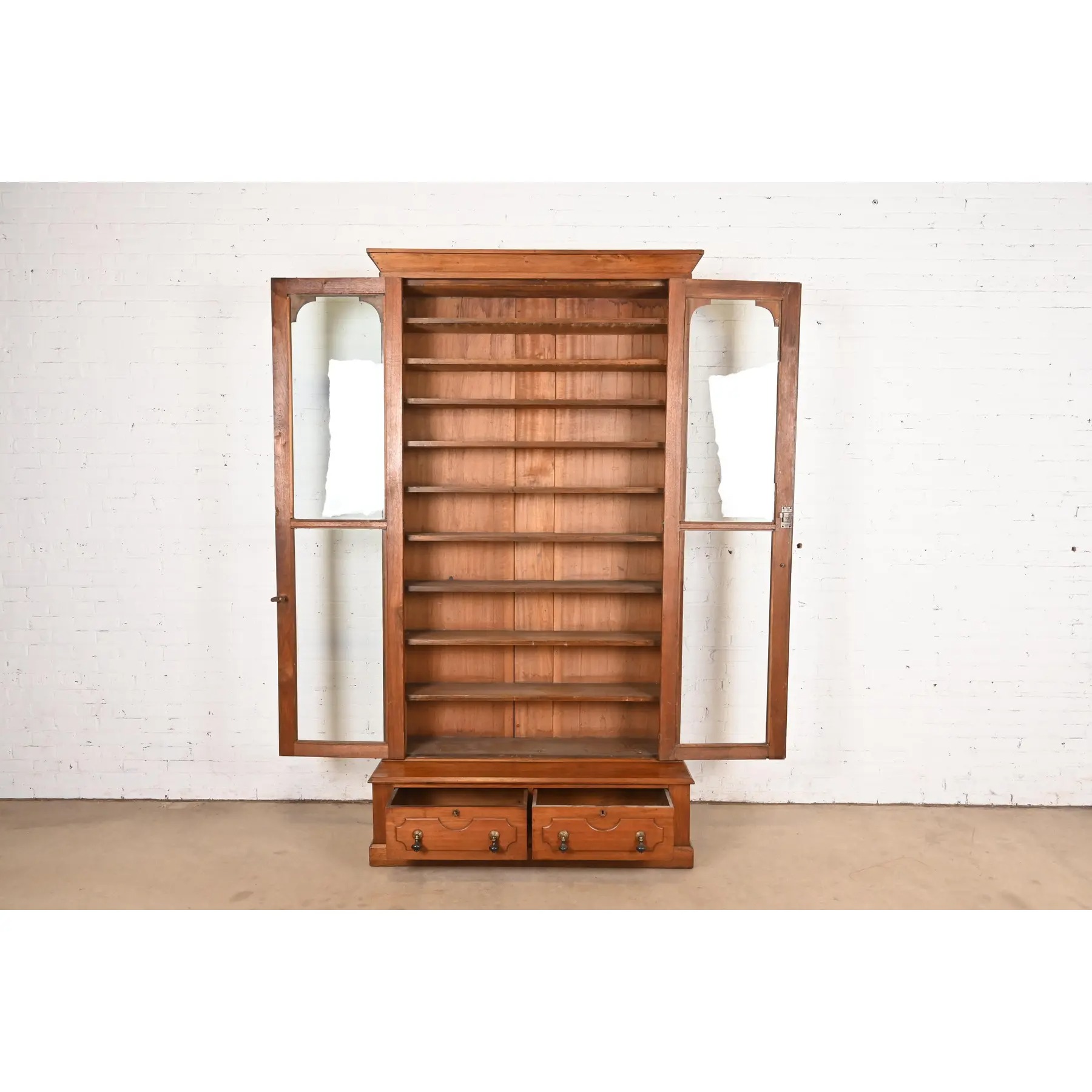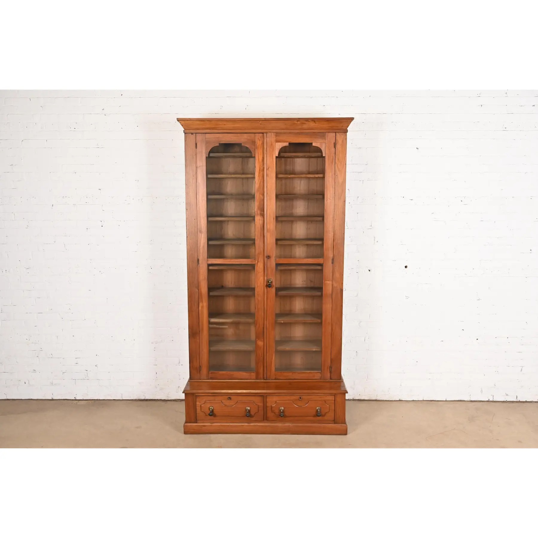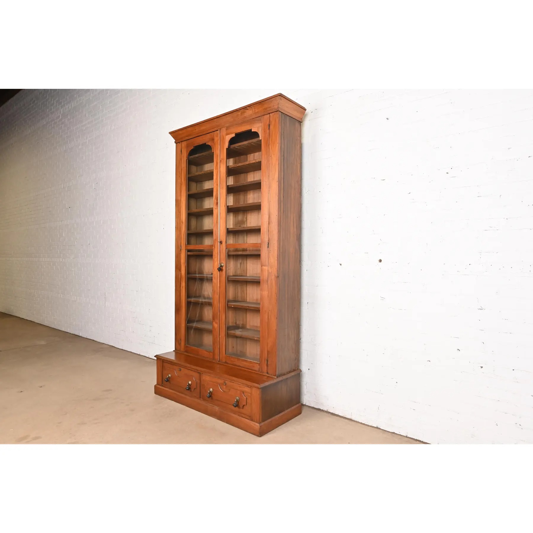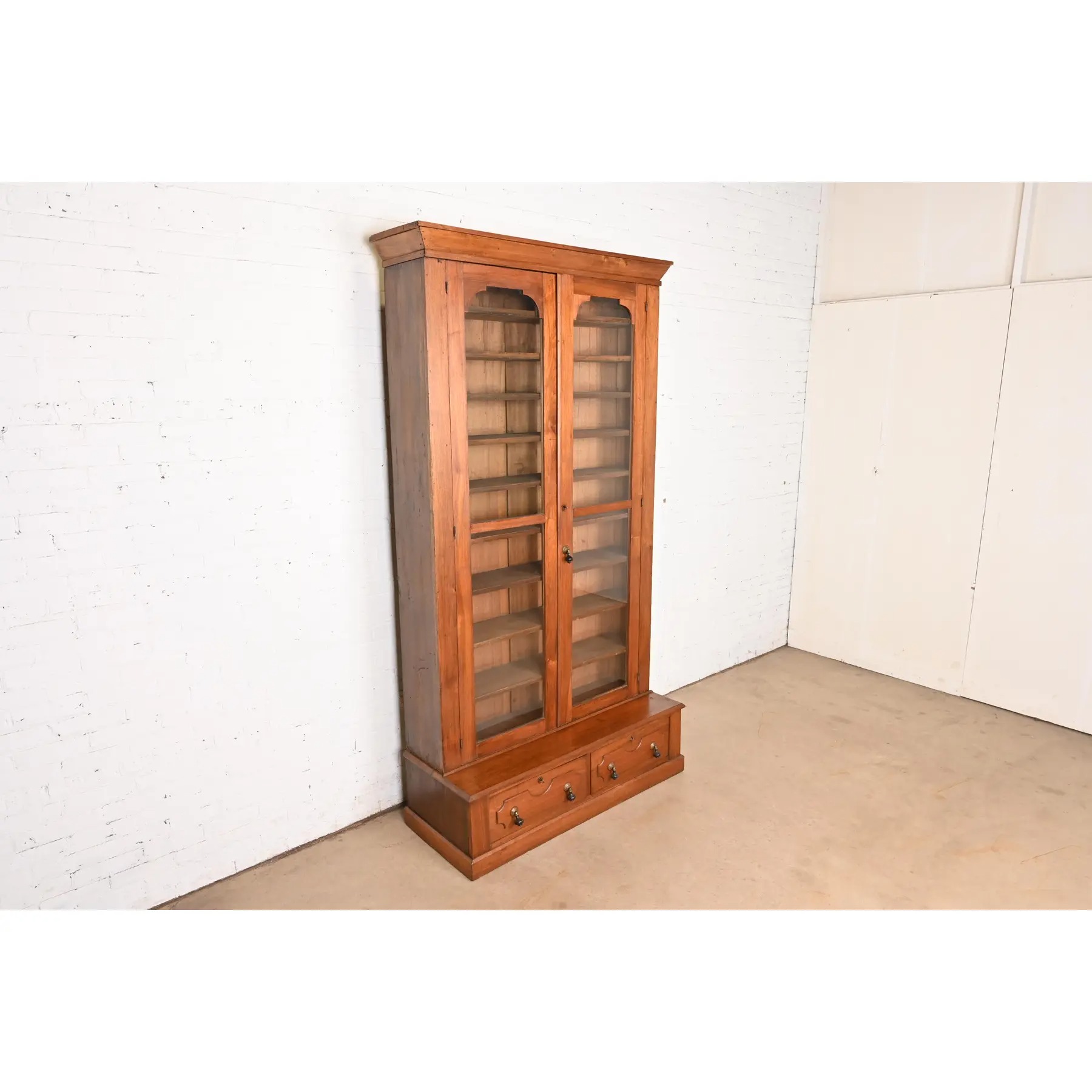 Antique Victorian Carved Walnut Glass Front Bookcase, Circa 1880s