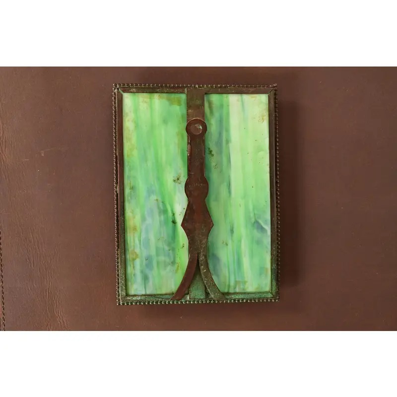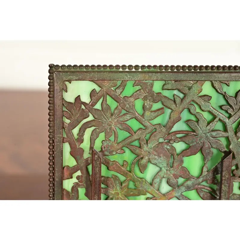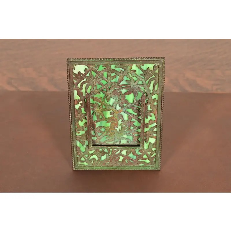 Apollo Studios New York Arts & Crafts Grapevine Pattern Bronze and Slag Glass Picture Frame