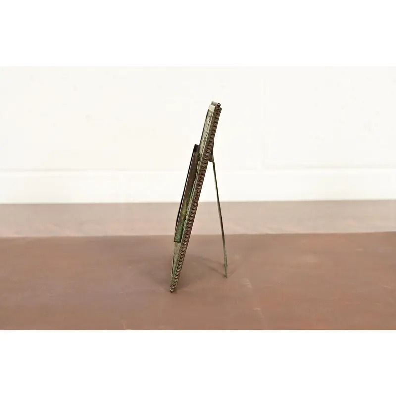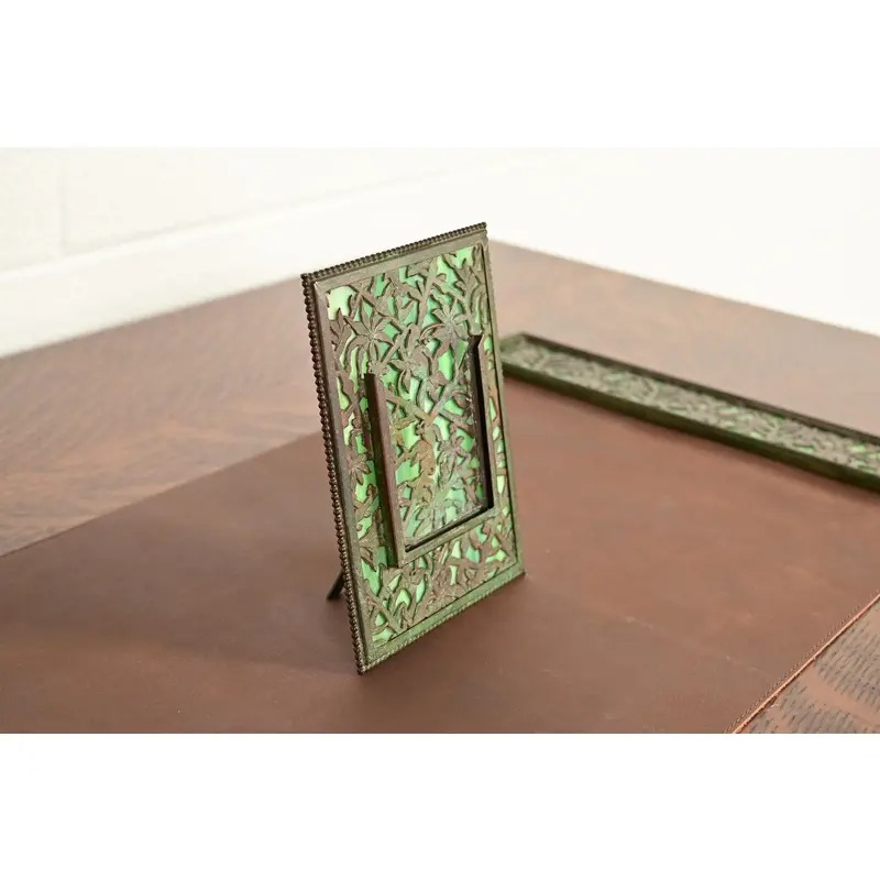 A beautiful Arts & Crafts or Art Nouveau period “Grapevine” pattern bronze and slag glass picture frame with verdigris green patina