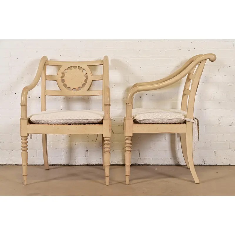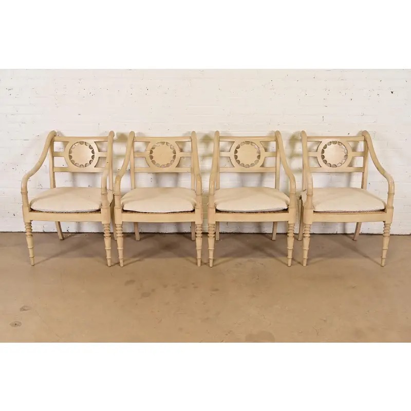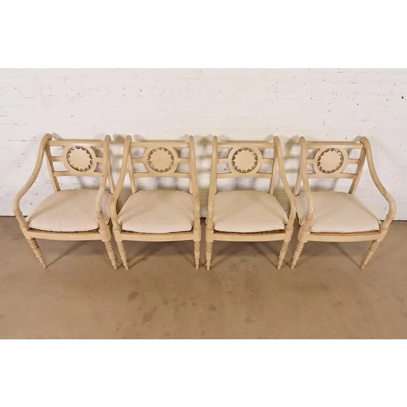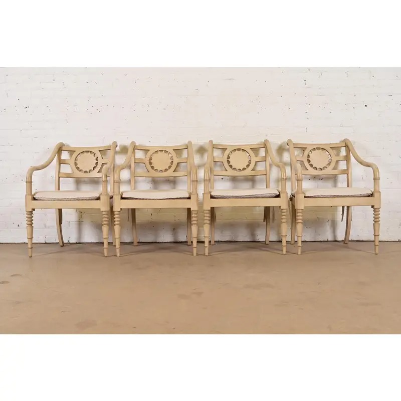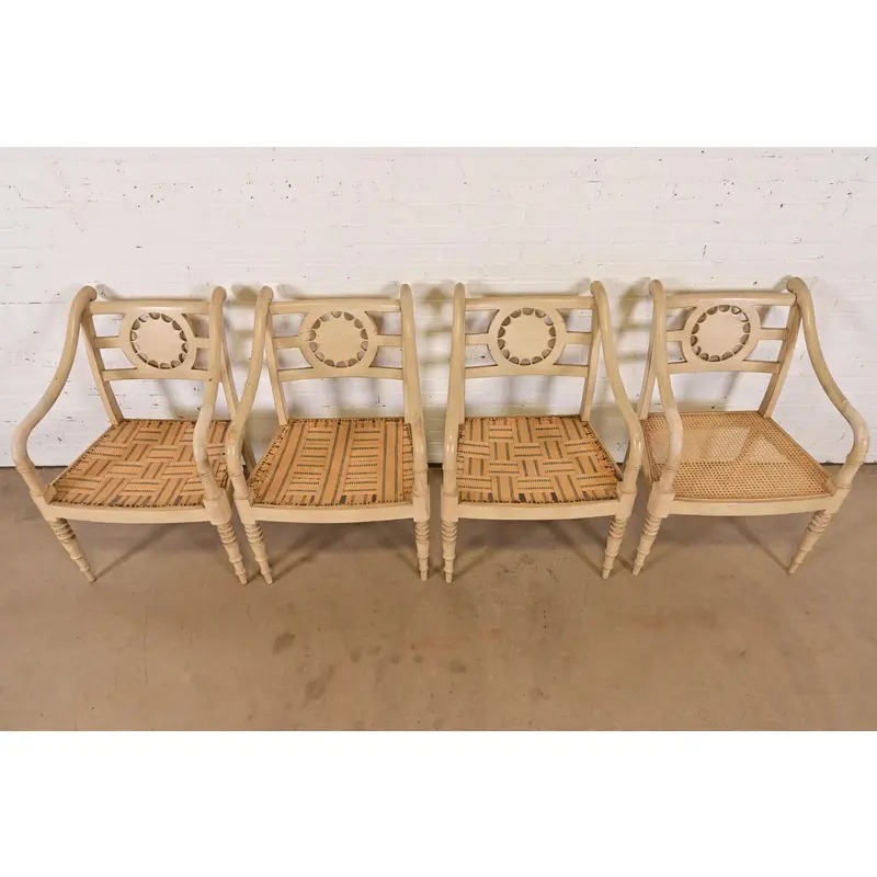 A beautiful set of four British Colonial, Early American, or Victorian style armchairs, club chairs, or dining captain chairs