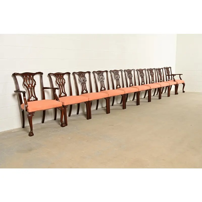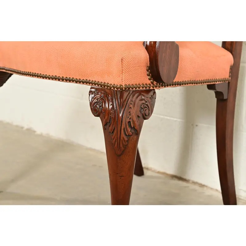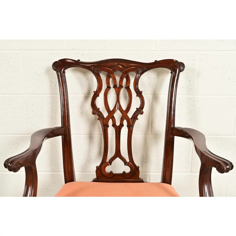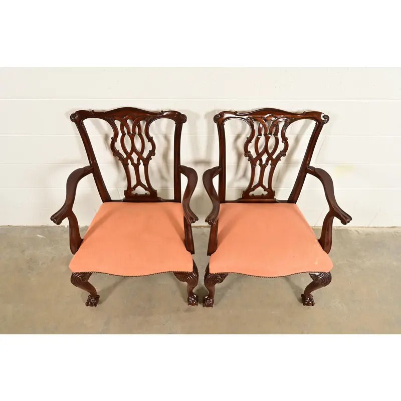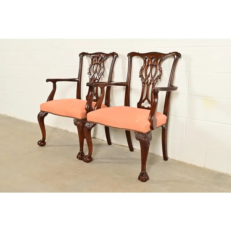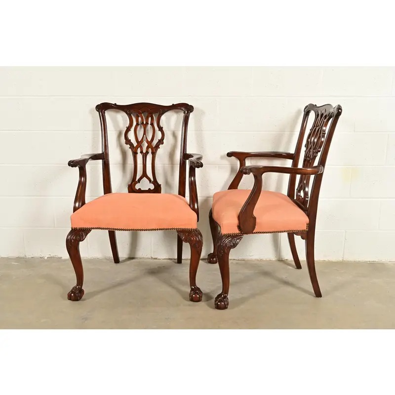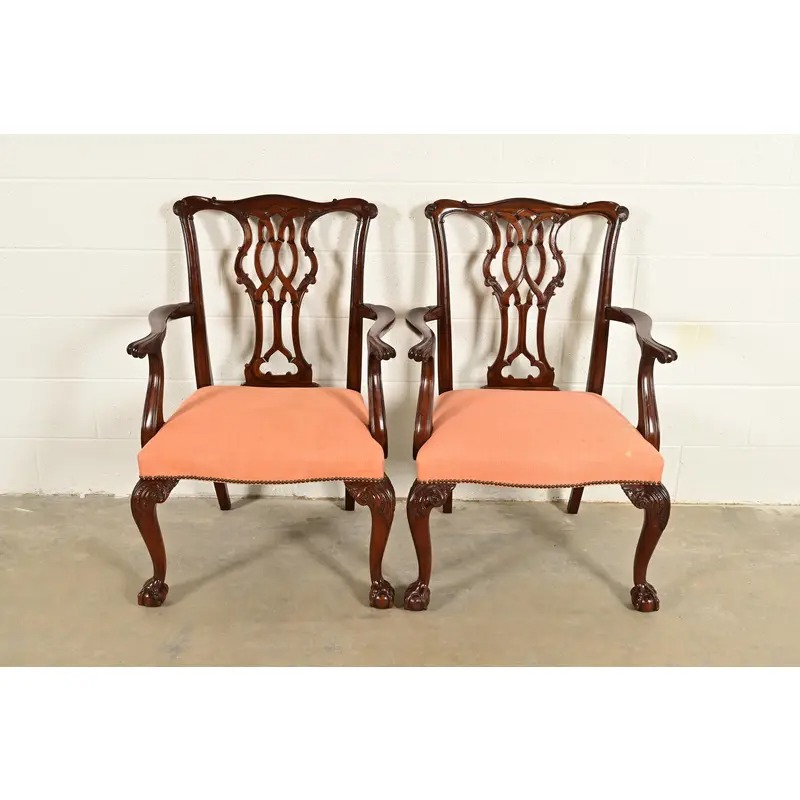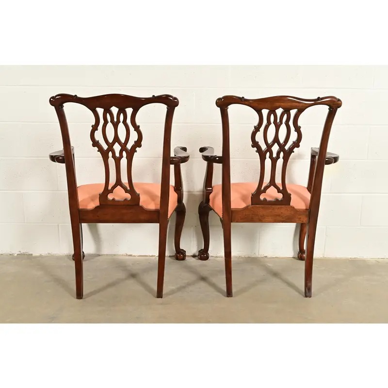 Baker Furniture Chippendale Carved Mahogany Armchairs, Pair