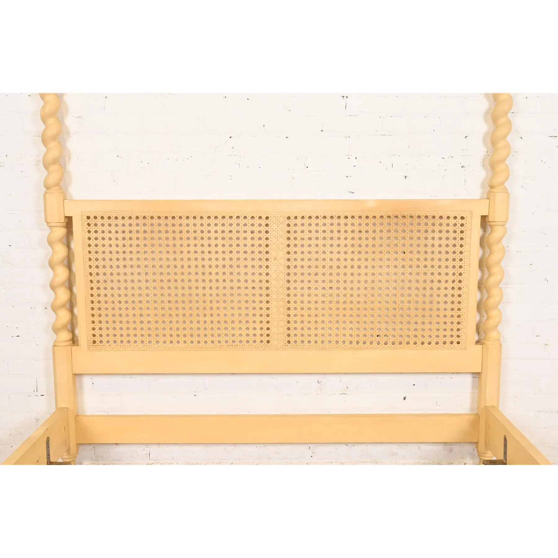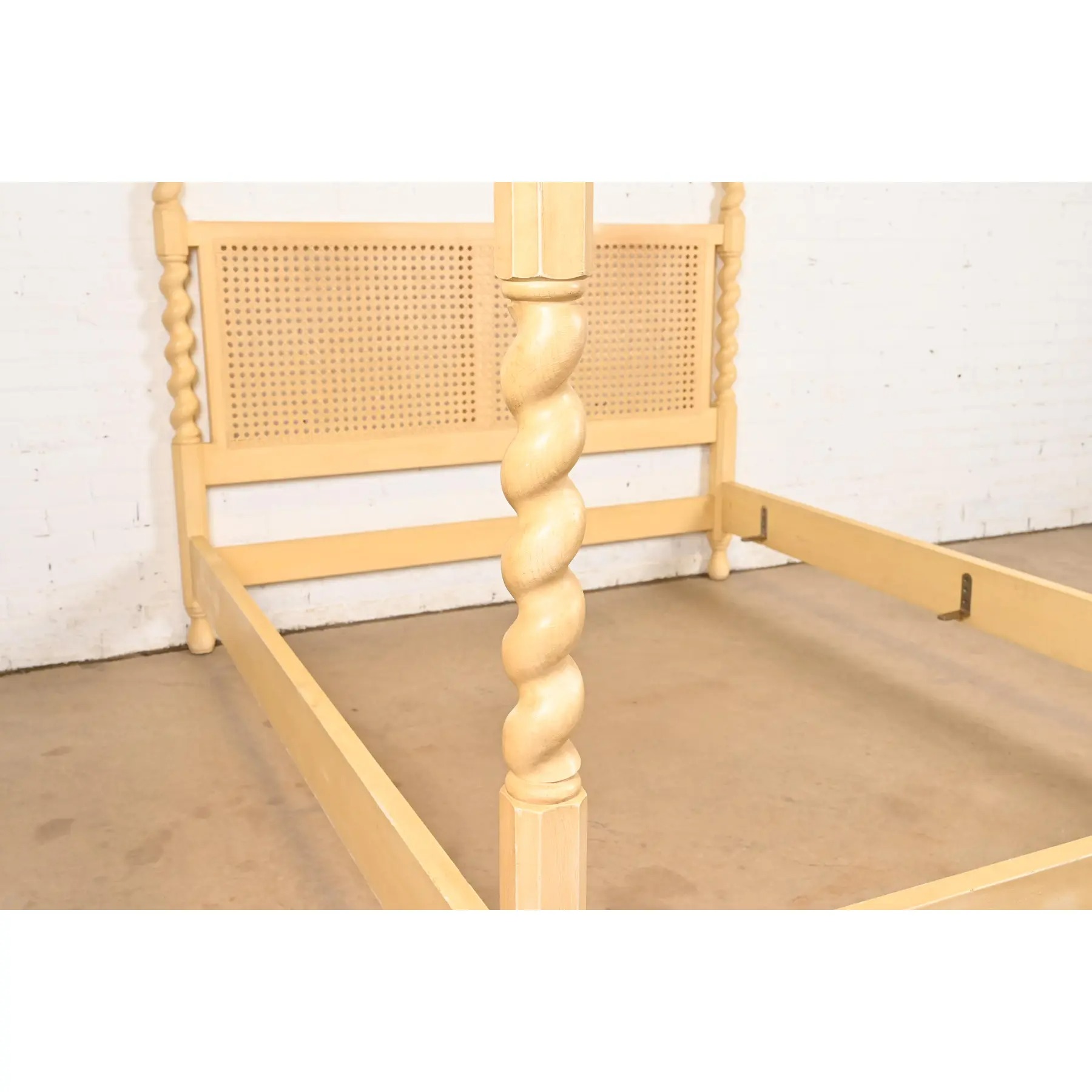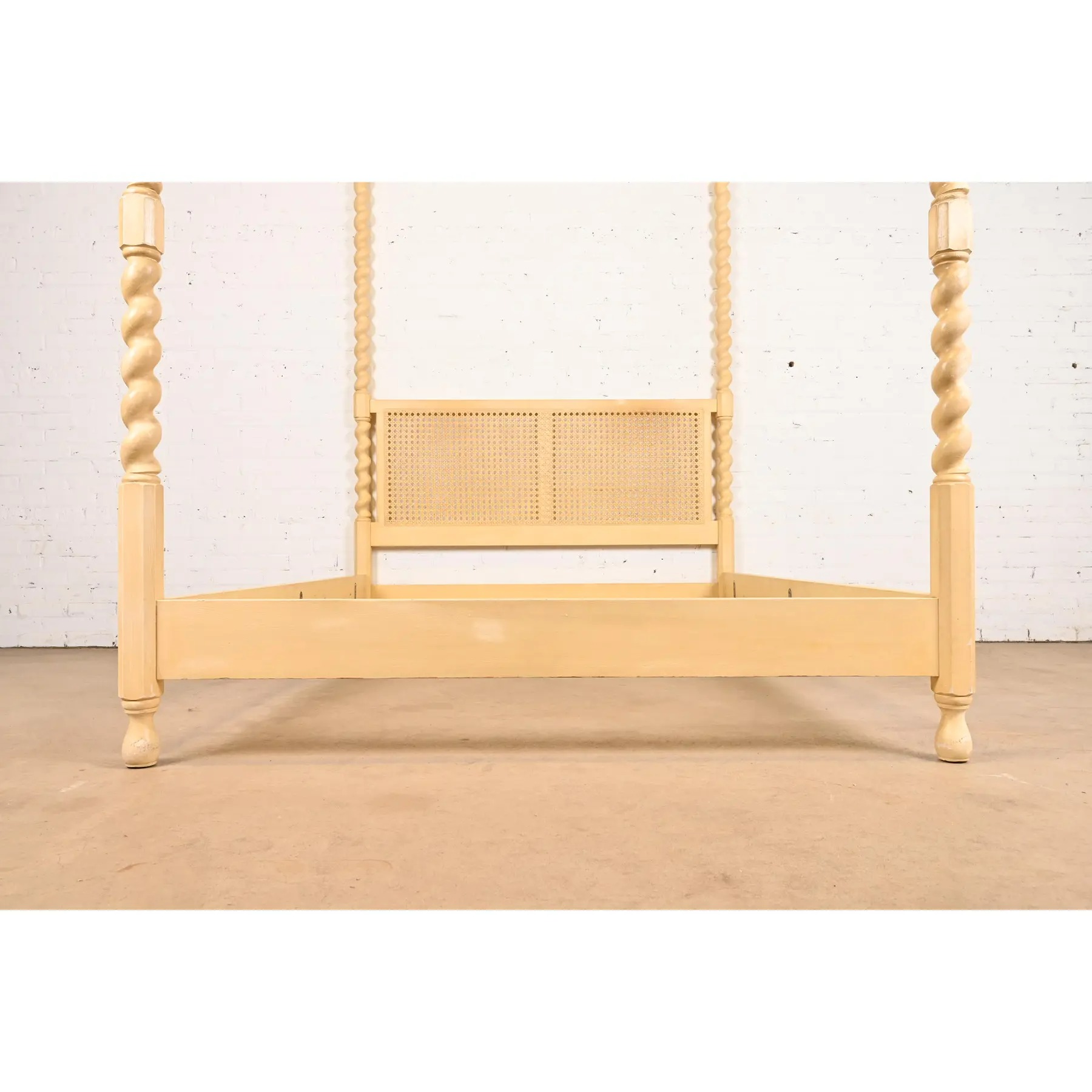 Baker Furniture English Country William & Mary Barley Twist and Cane Cream Lacquered Queen Size Poster Bed
