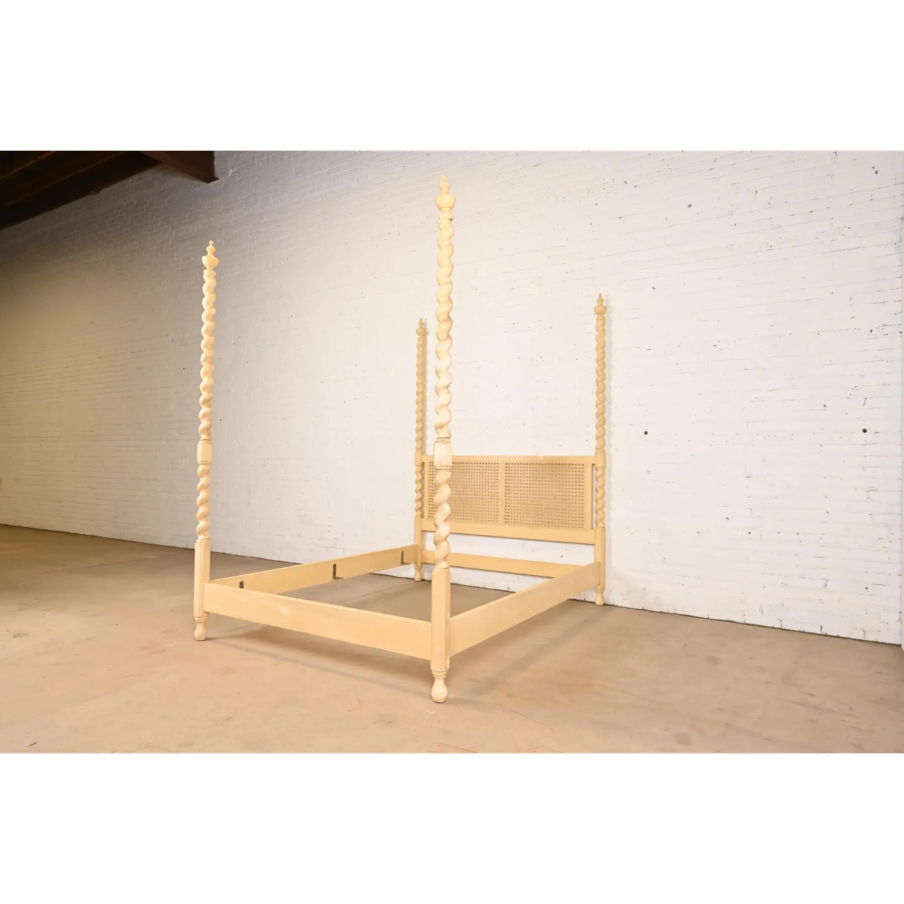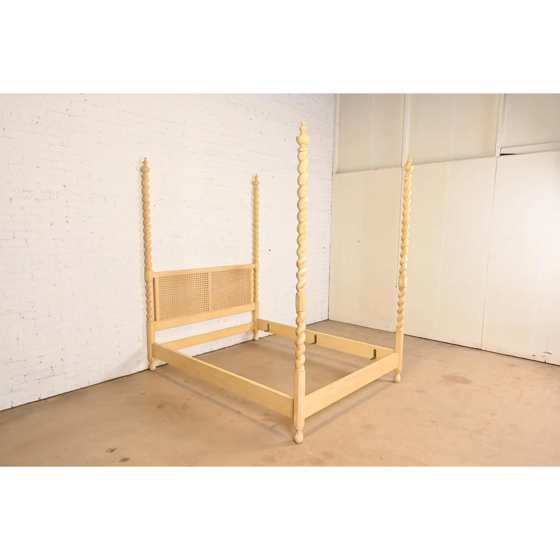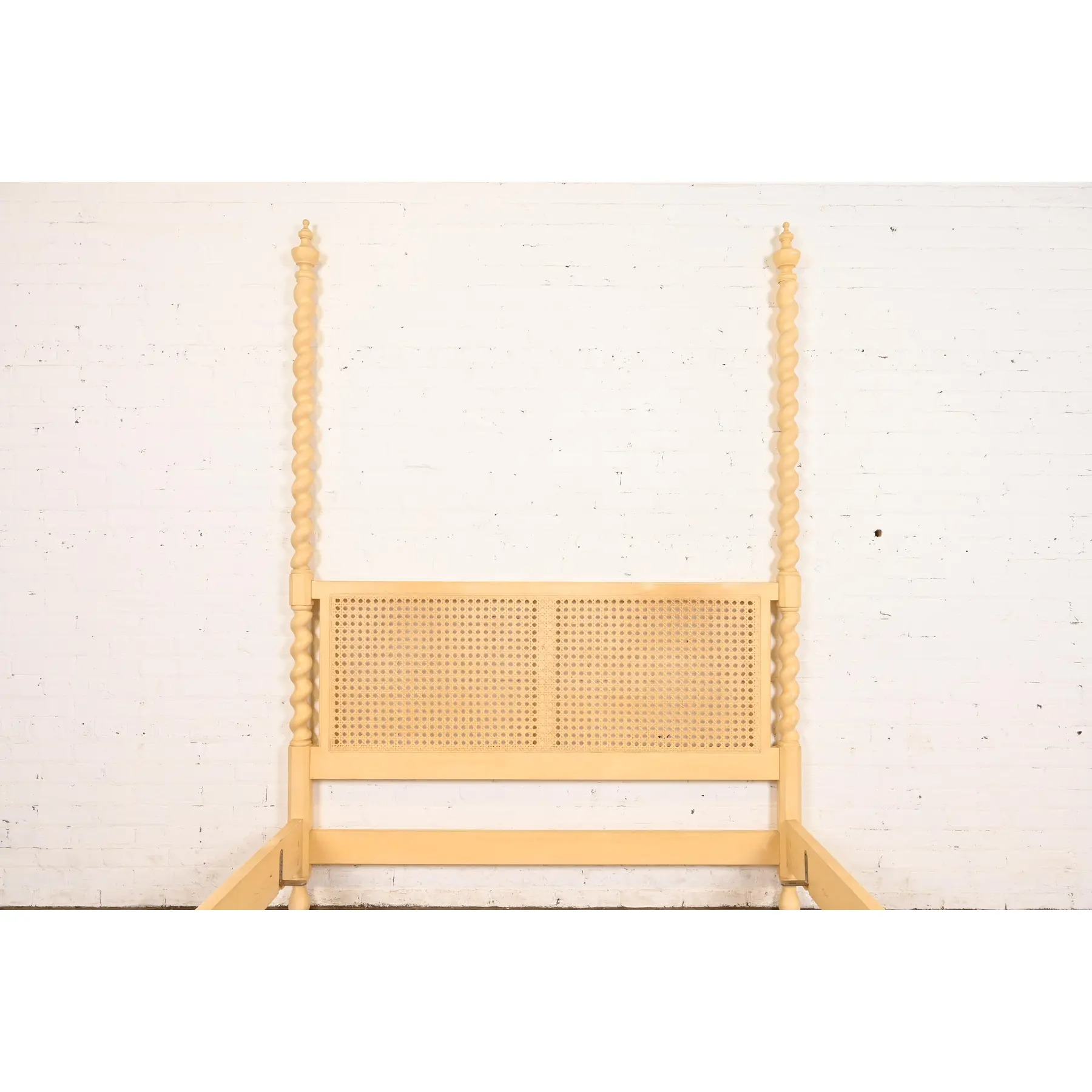 Baker Furniture English Country William & Mary Barley Twist and Cane Cream Lacquered Queen Size Poster Bed