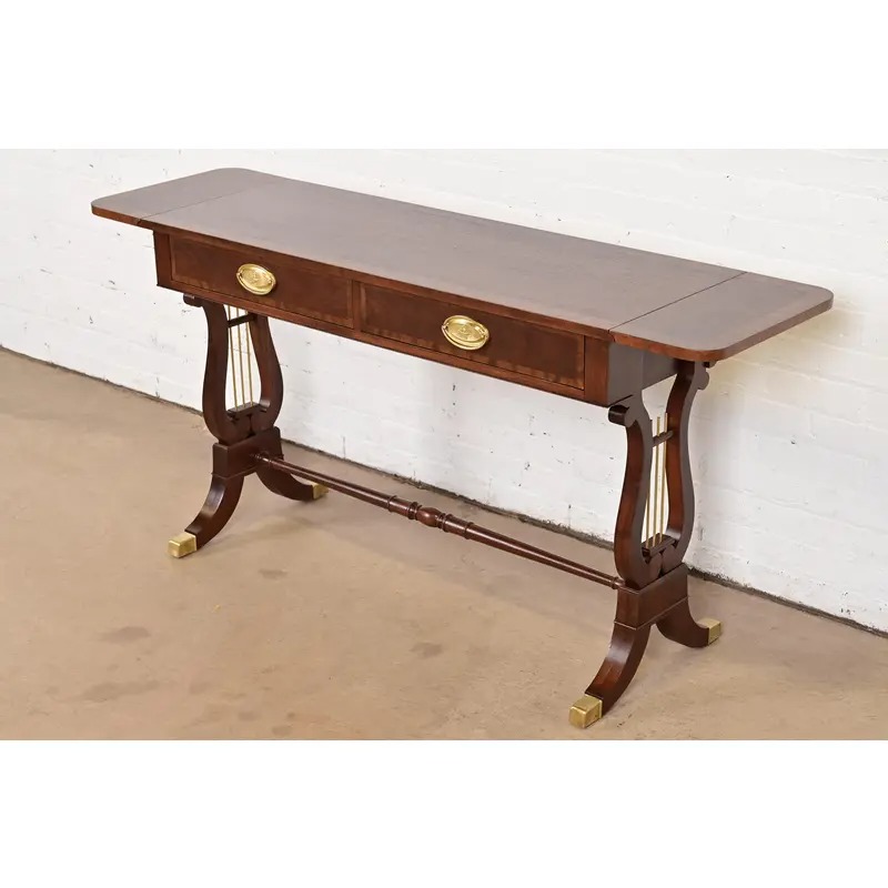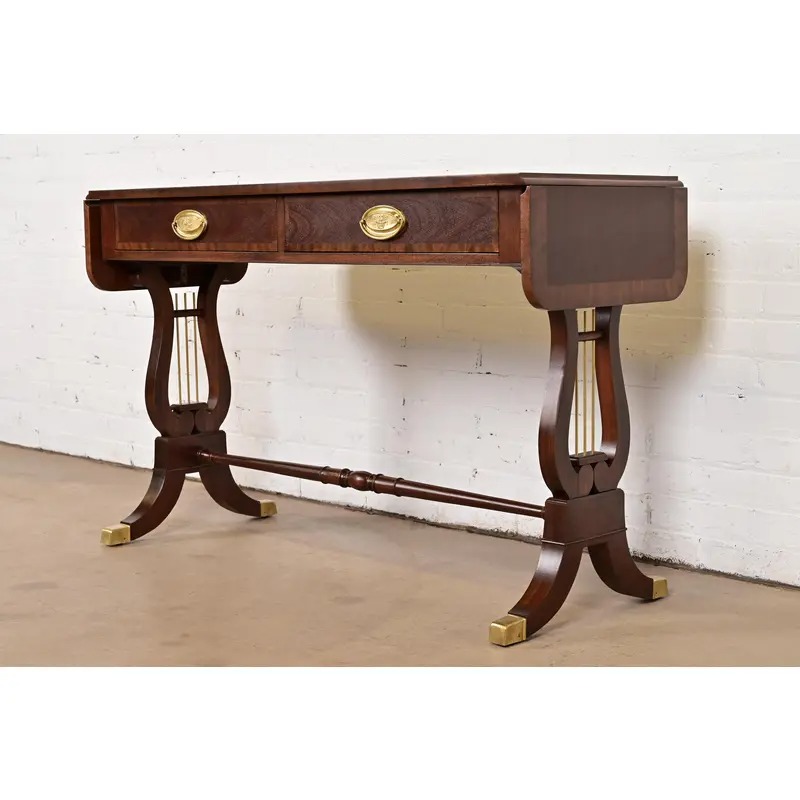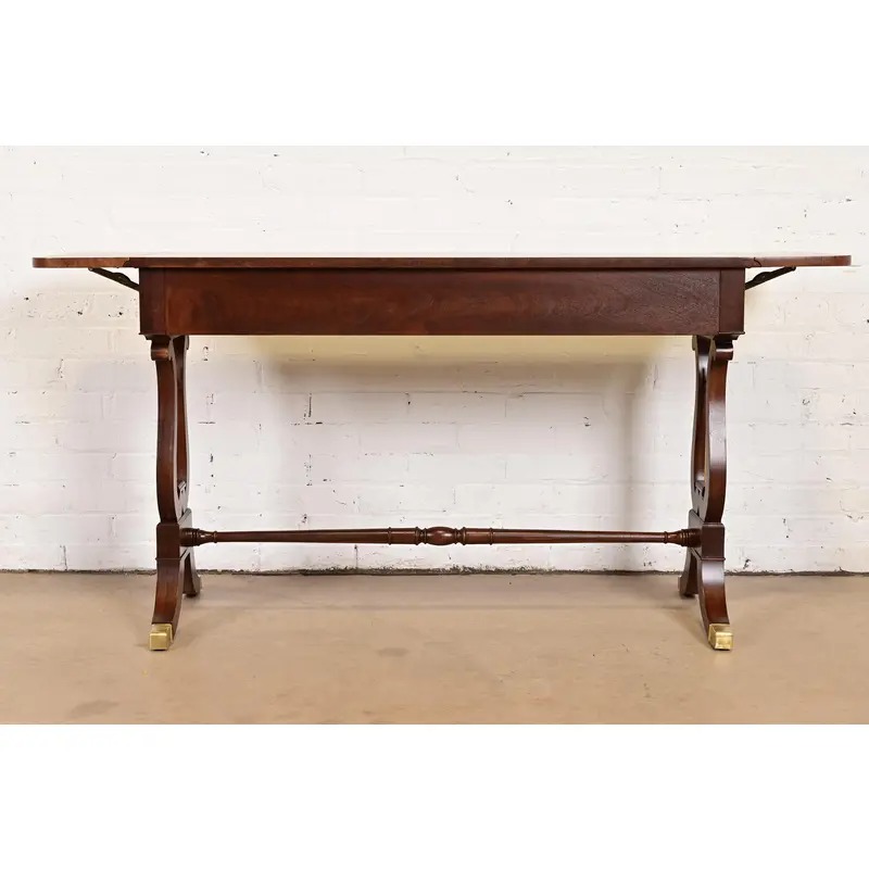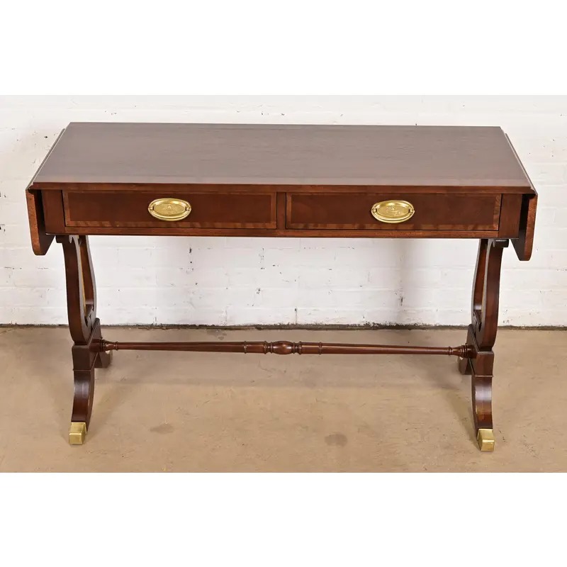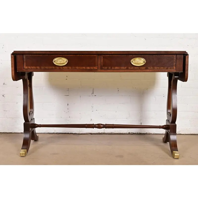 An exceptional English Regency or Georgian style drop leaf writing desk, console table, or sofa table