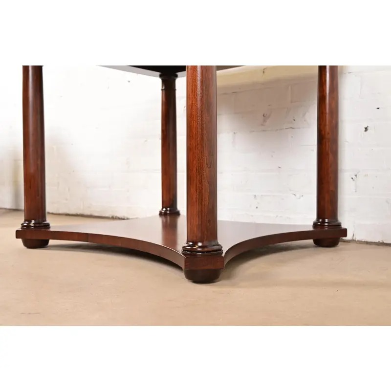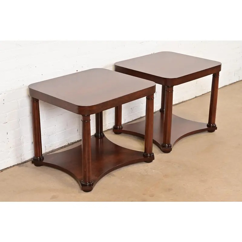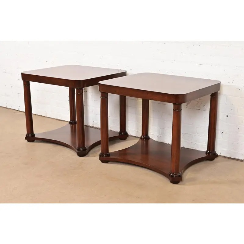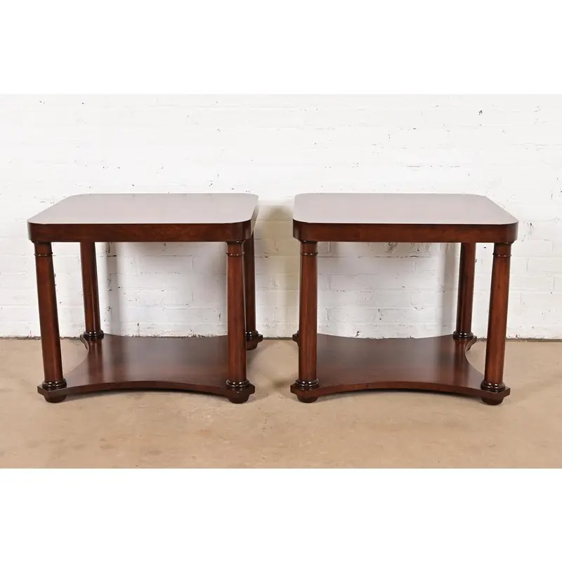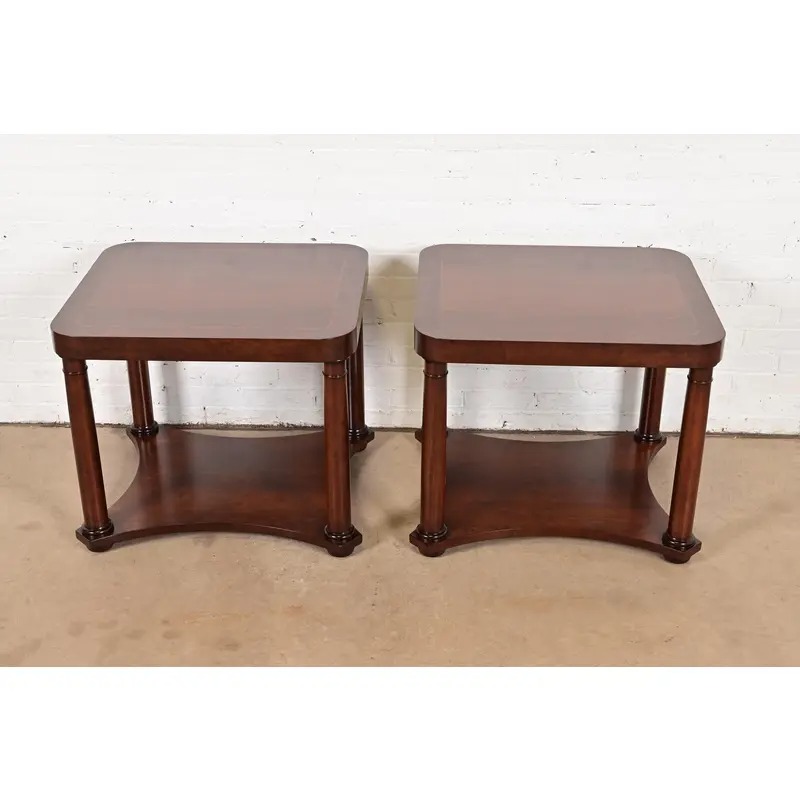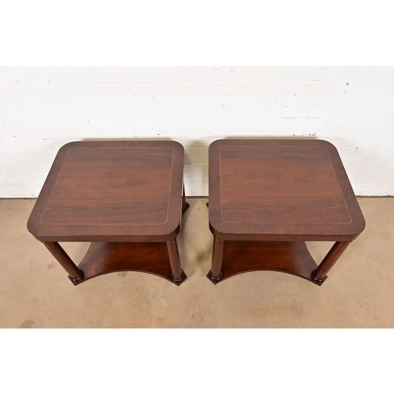 A gorgeous pair of French Empire or Neoclassical style two-tier end tables or nightstands