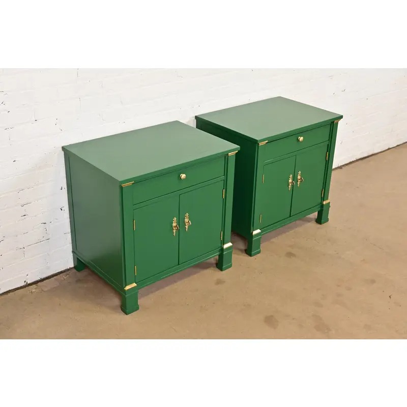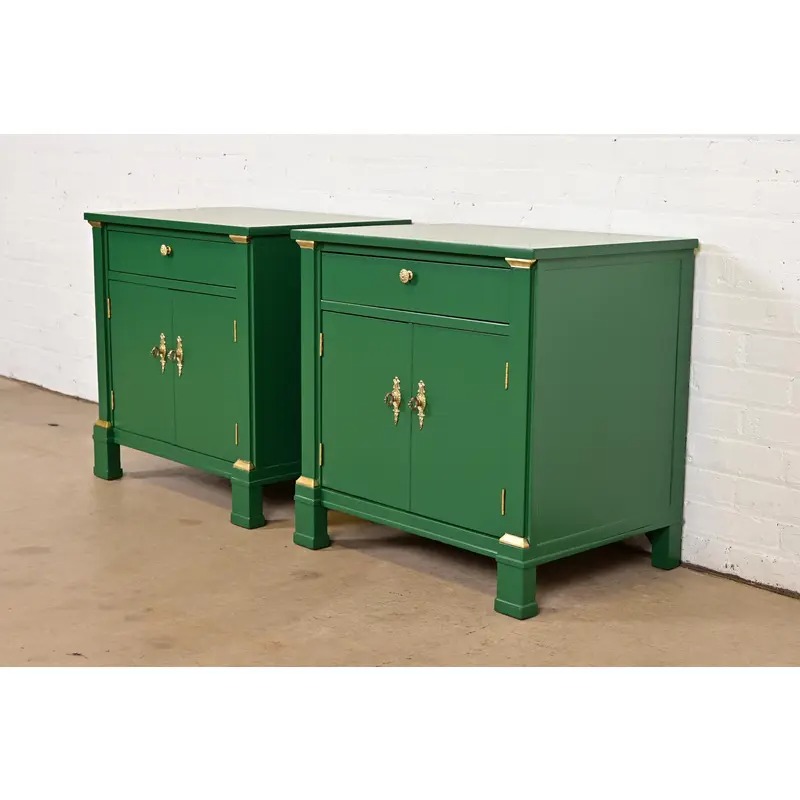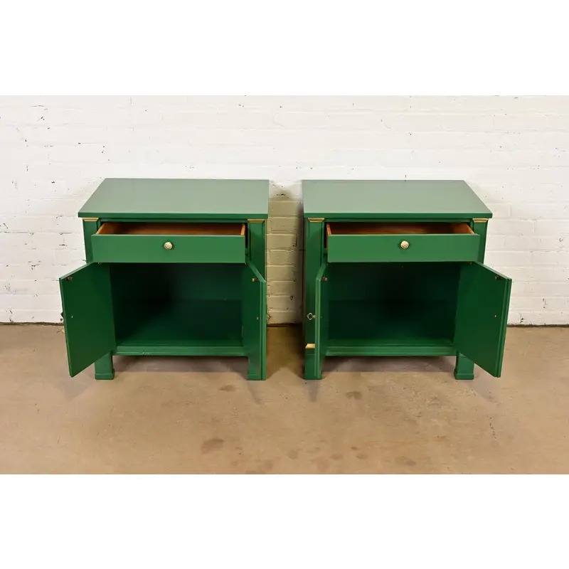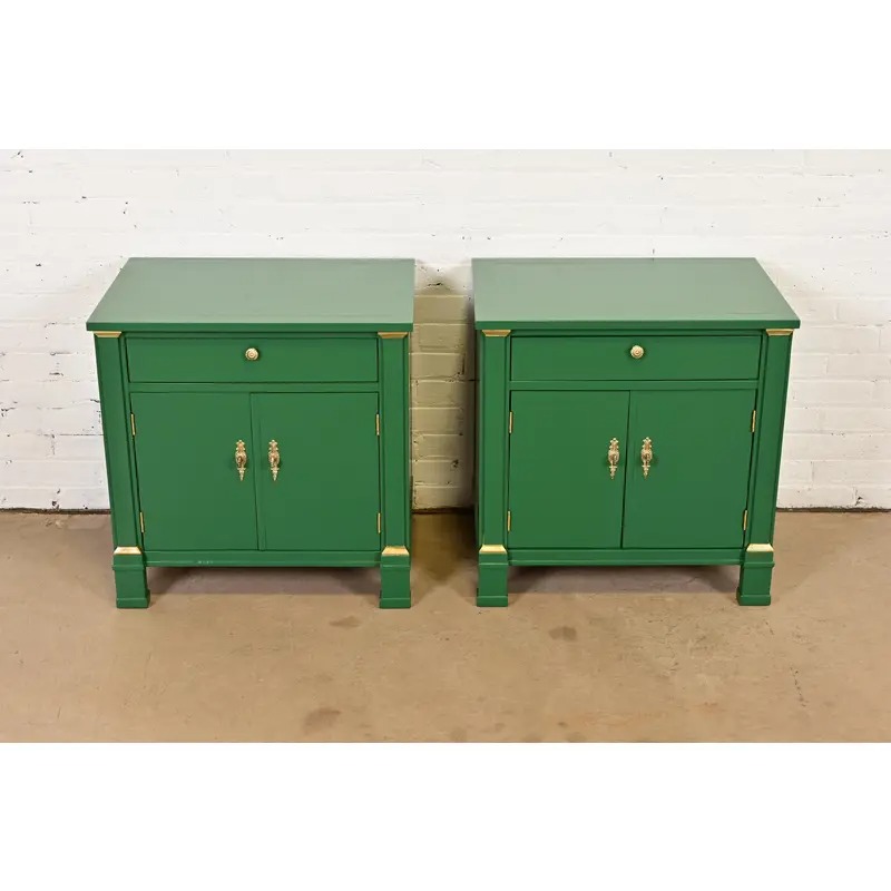 A gorgeous pair of French Empire style nightstands or end tables