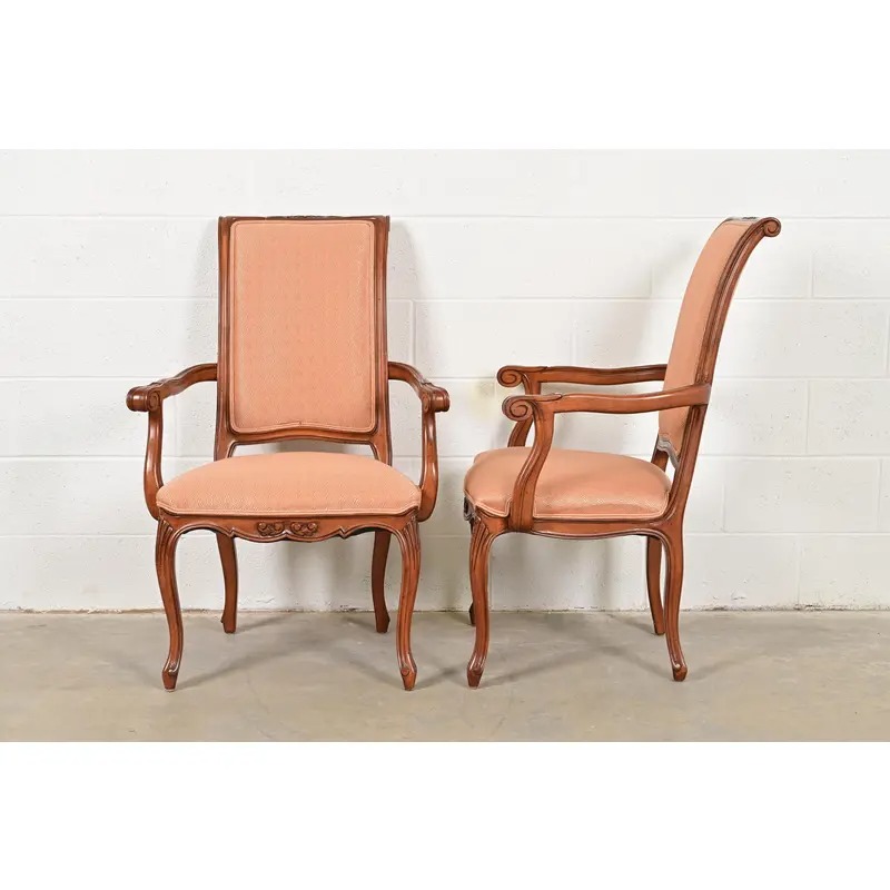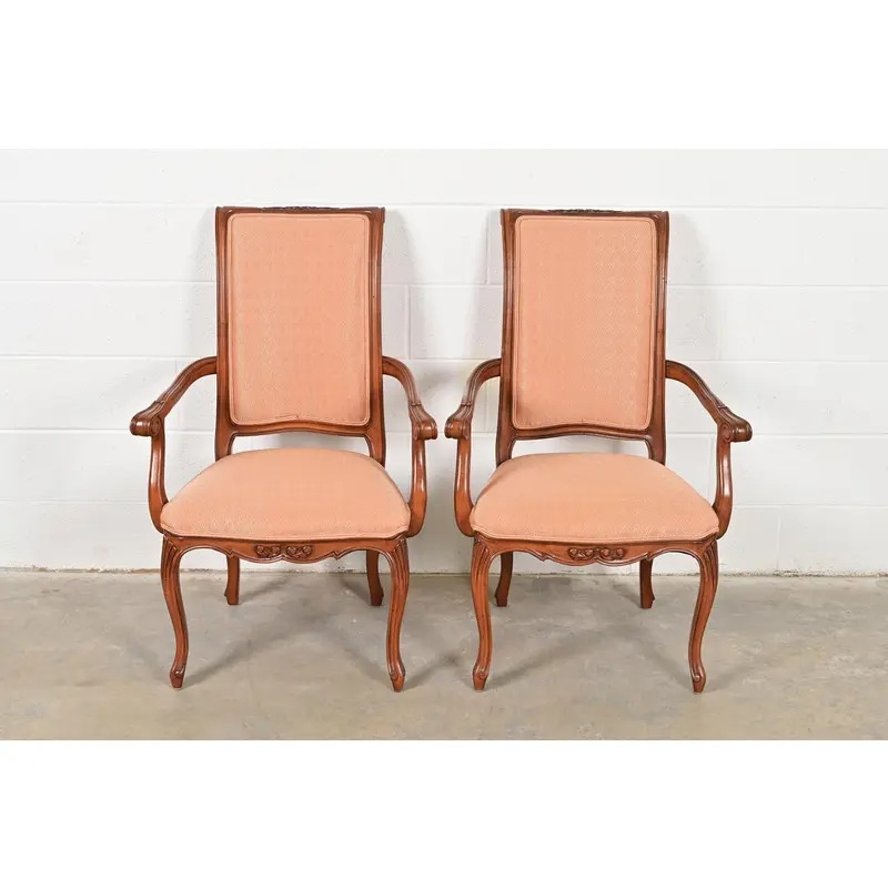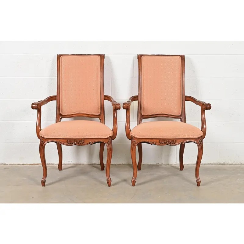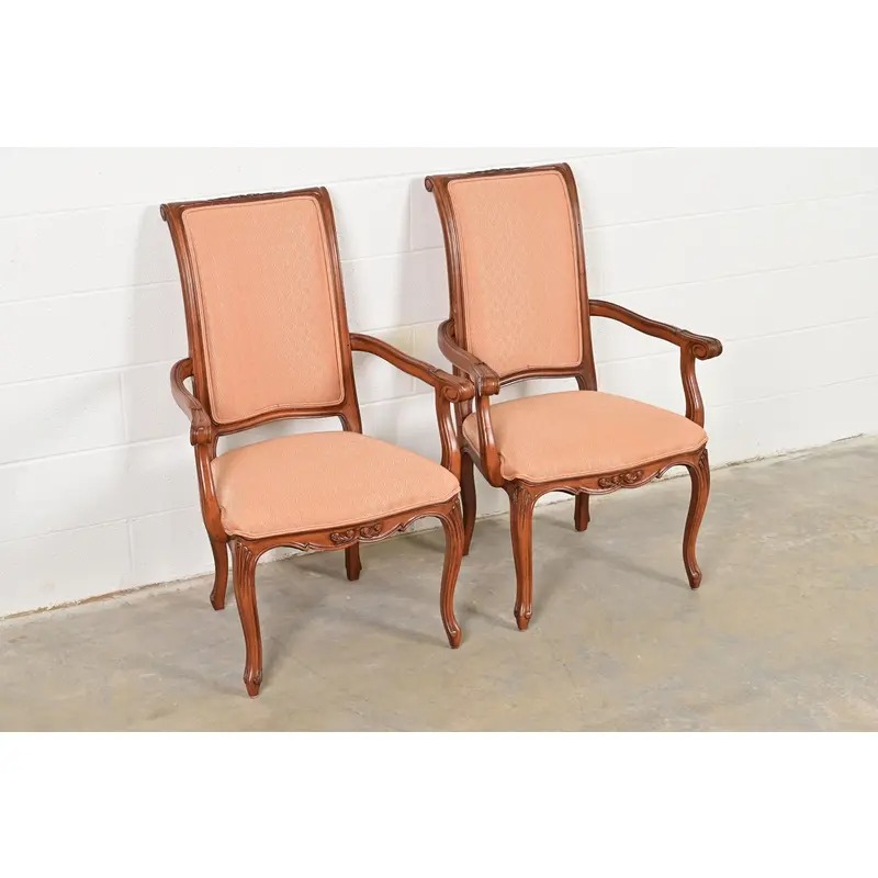 An outstanding pair of French Rococo or French Provincial Louis XV style armchairs or dining captain chairs
