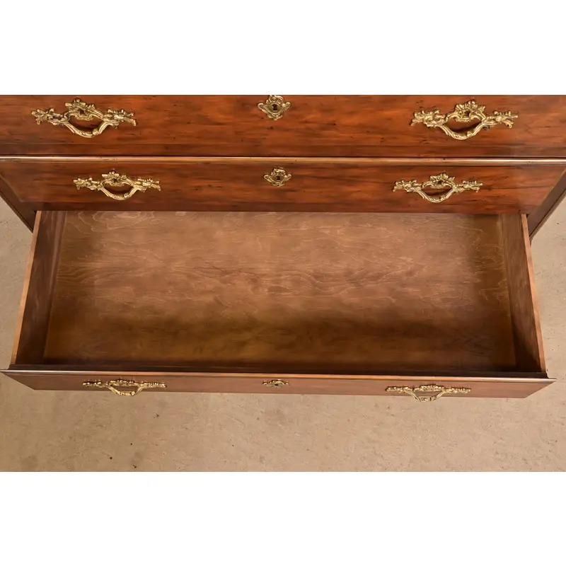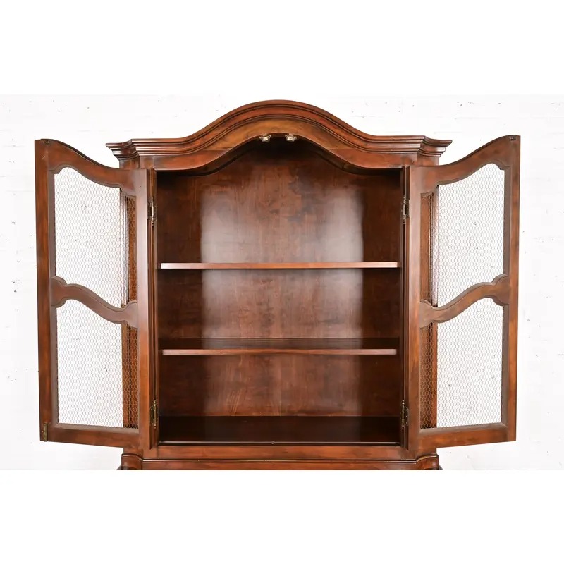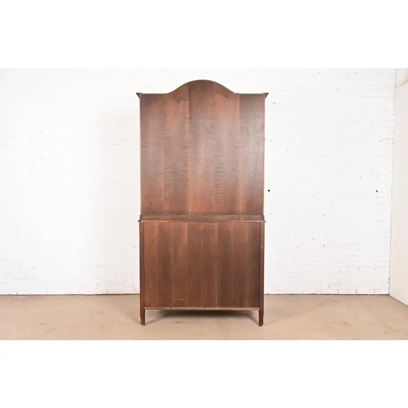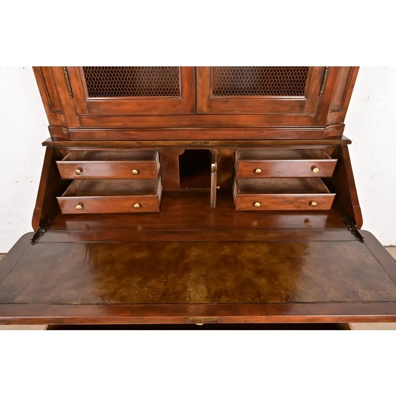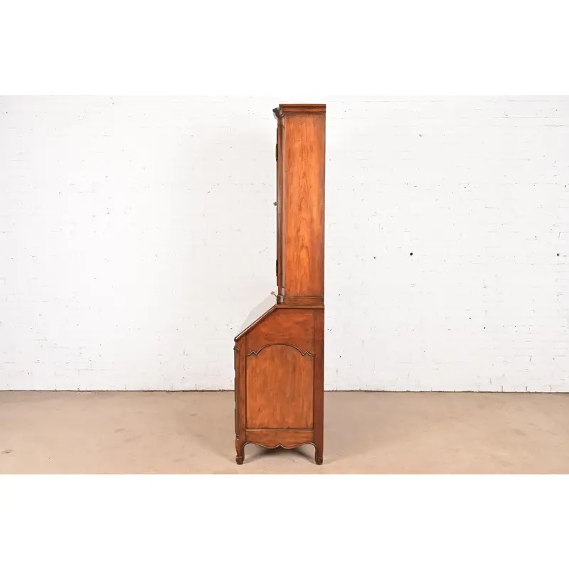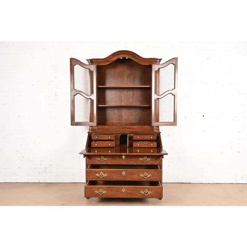 Baker Furniture French Provincial Louis XV Carved Walnut Drop Front Secretary Desk With Bookcase Hutch