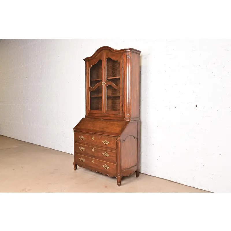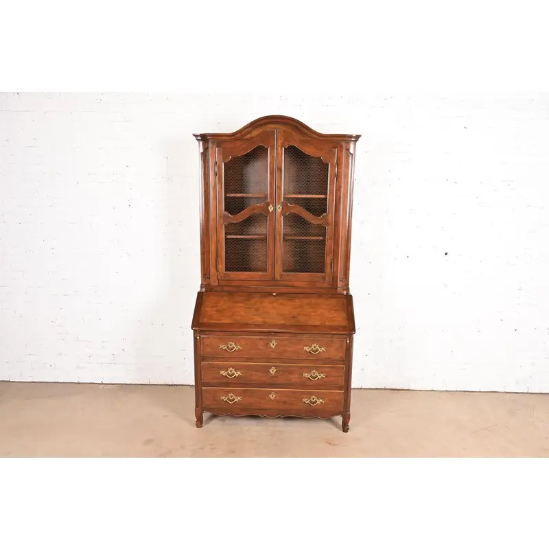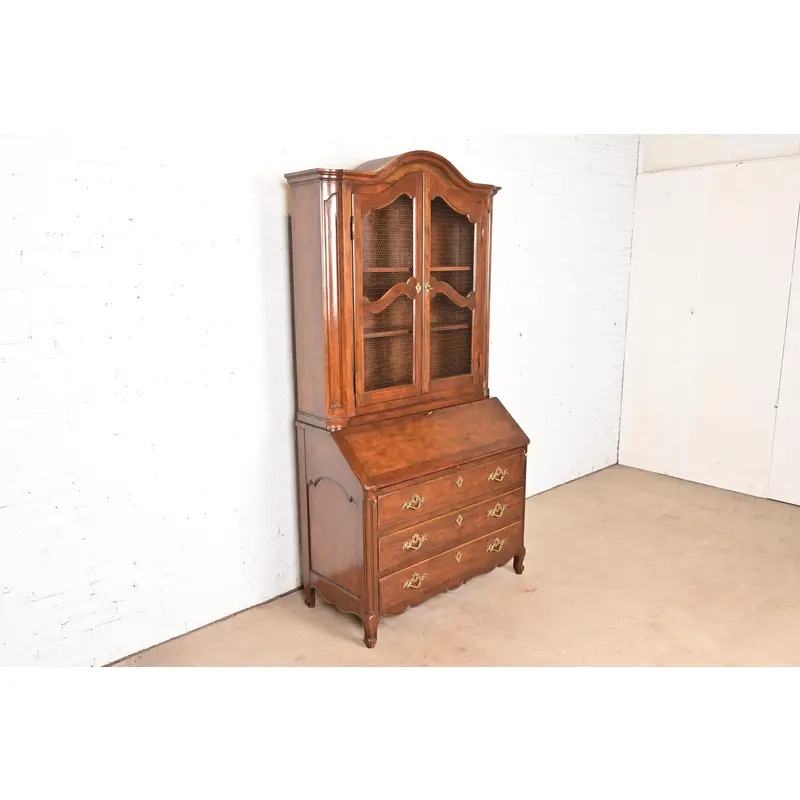 A gorgeous French Provincial Louis XV style bureau with drop front secretary desk and bookcase hutch top