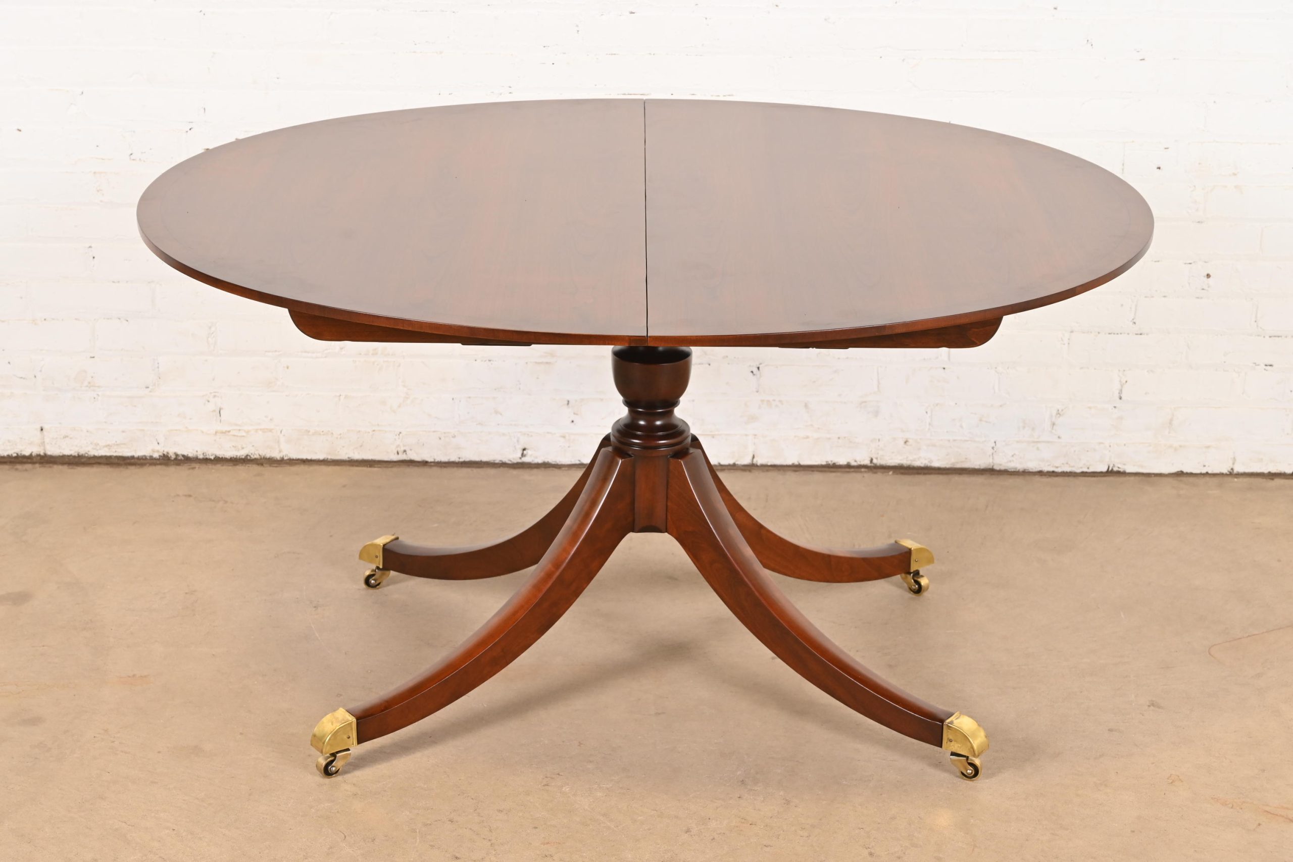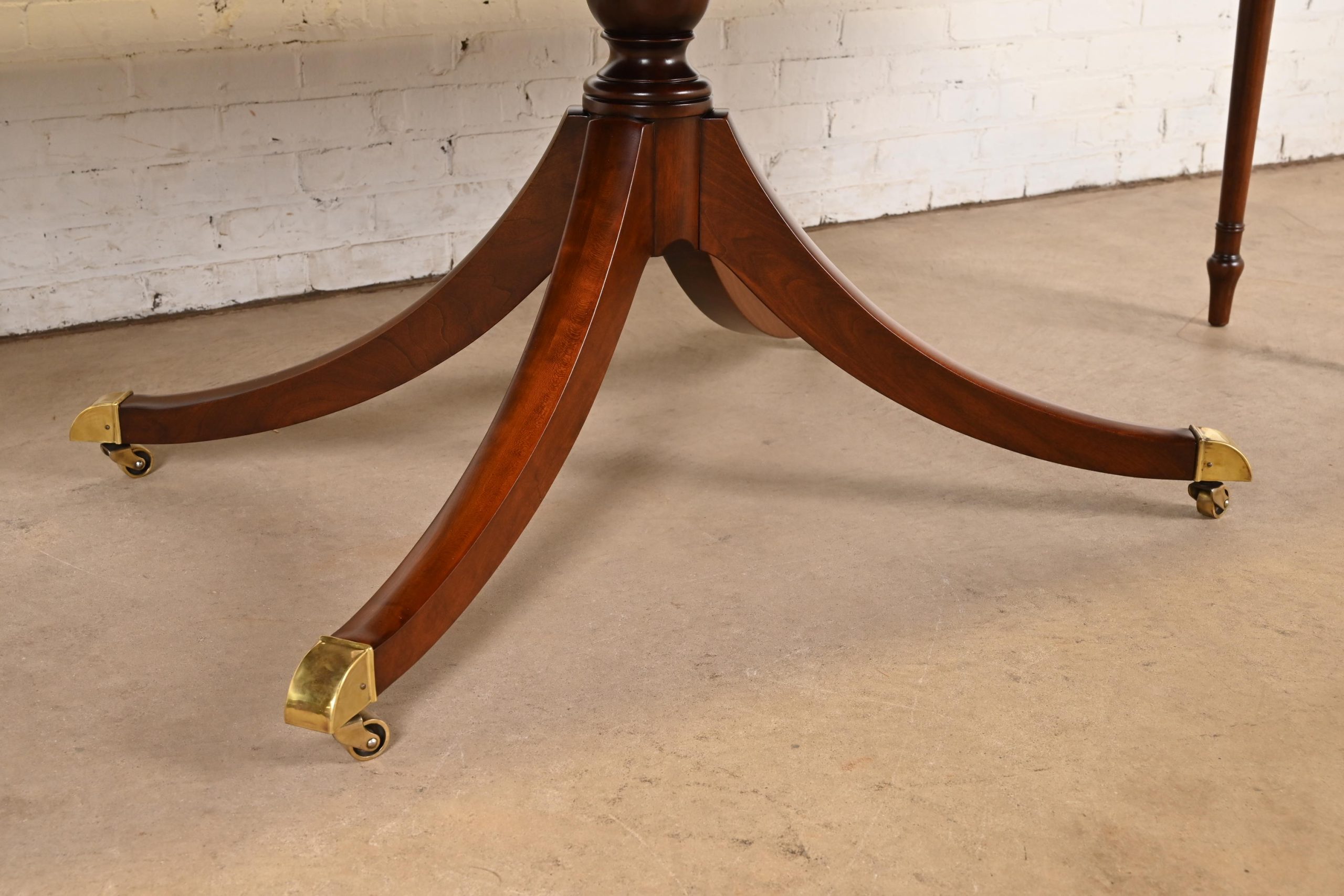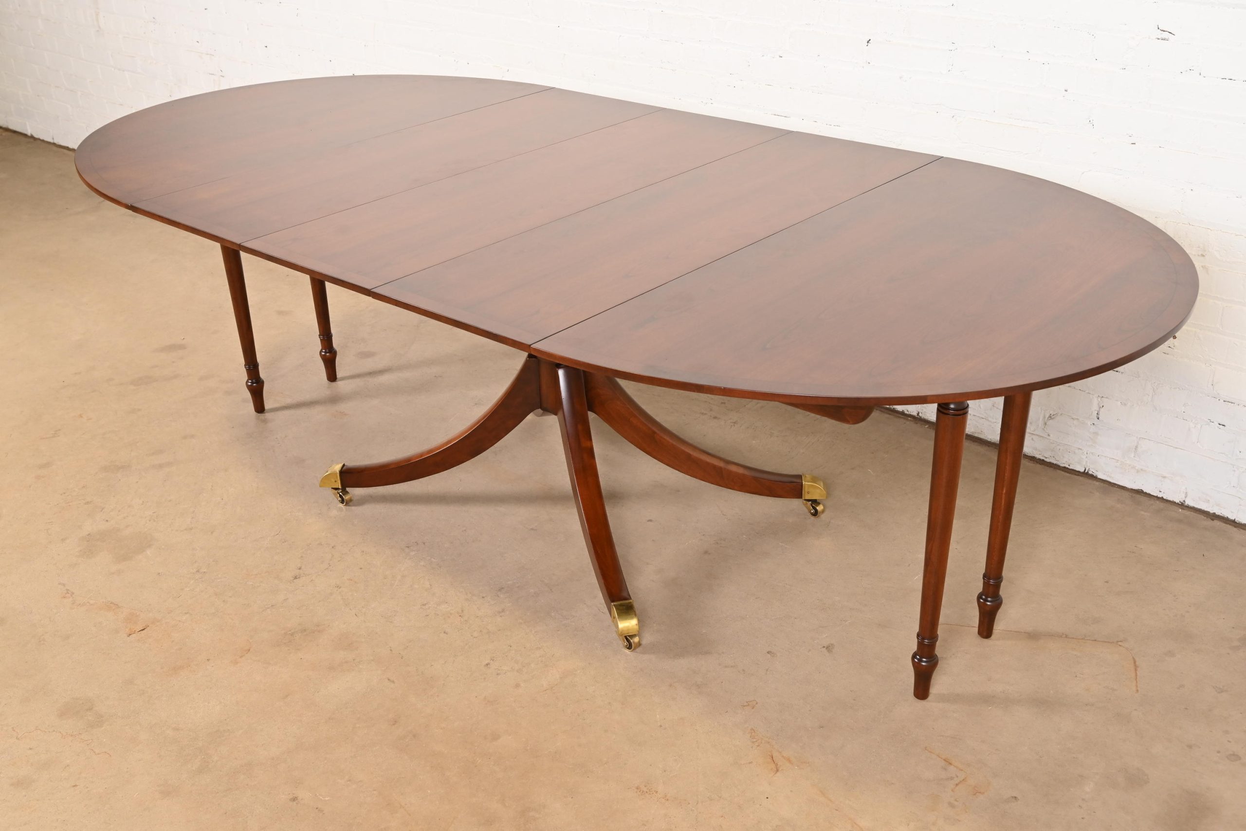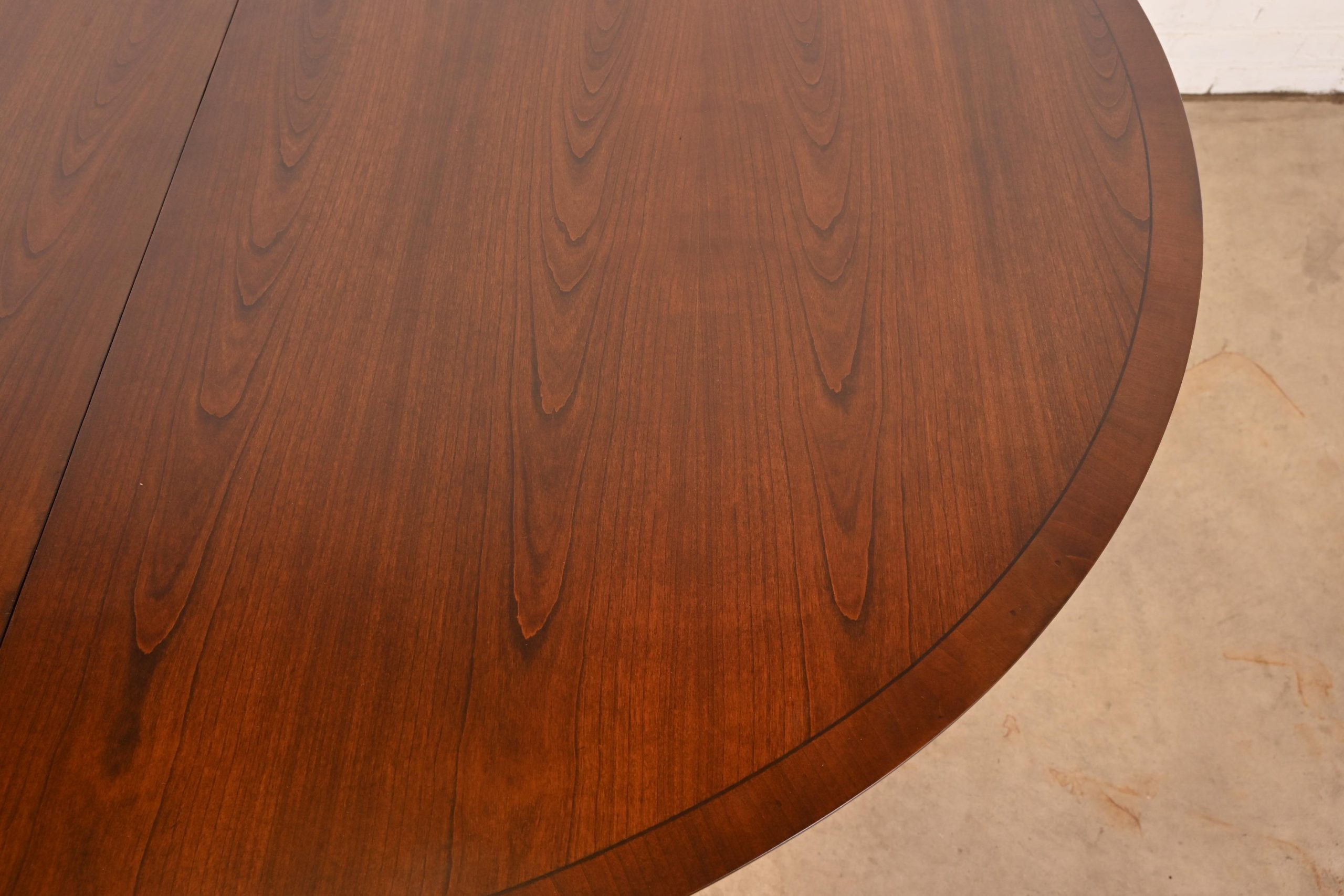 Baker Furniture Georgian Banded Cherry Wood Pedestal Extension Dining Table, Newly Refinished