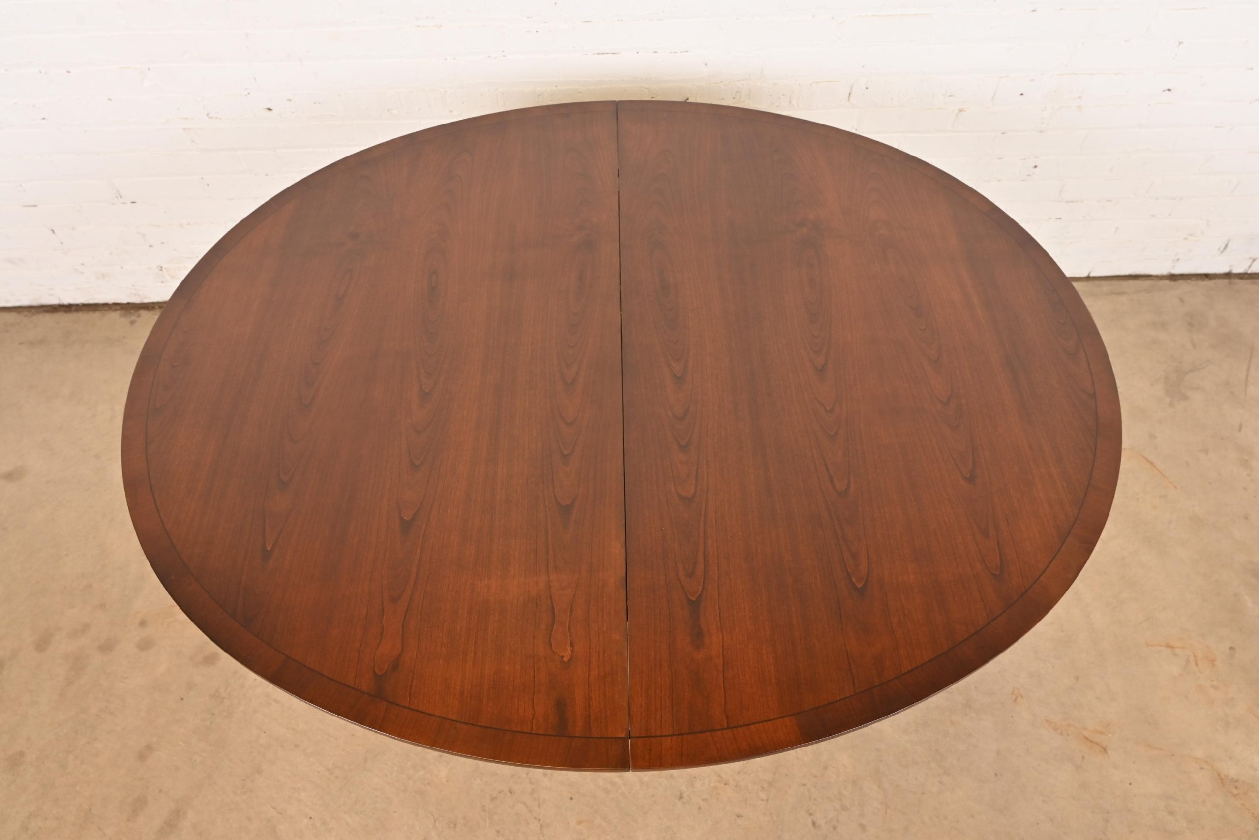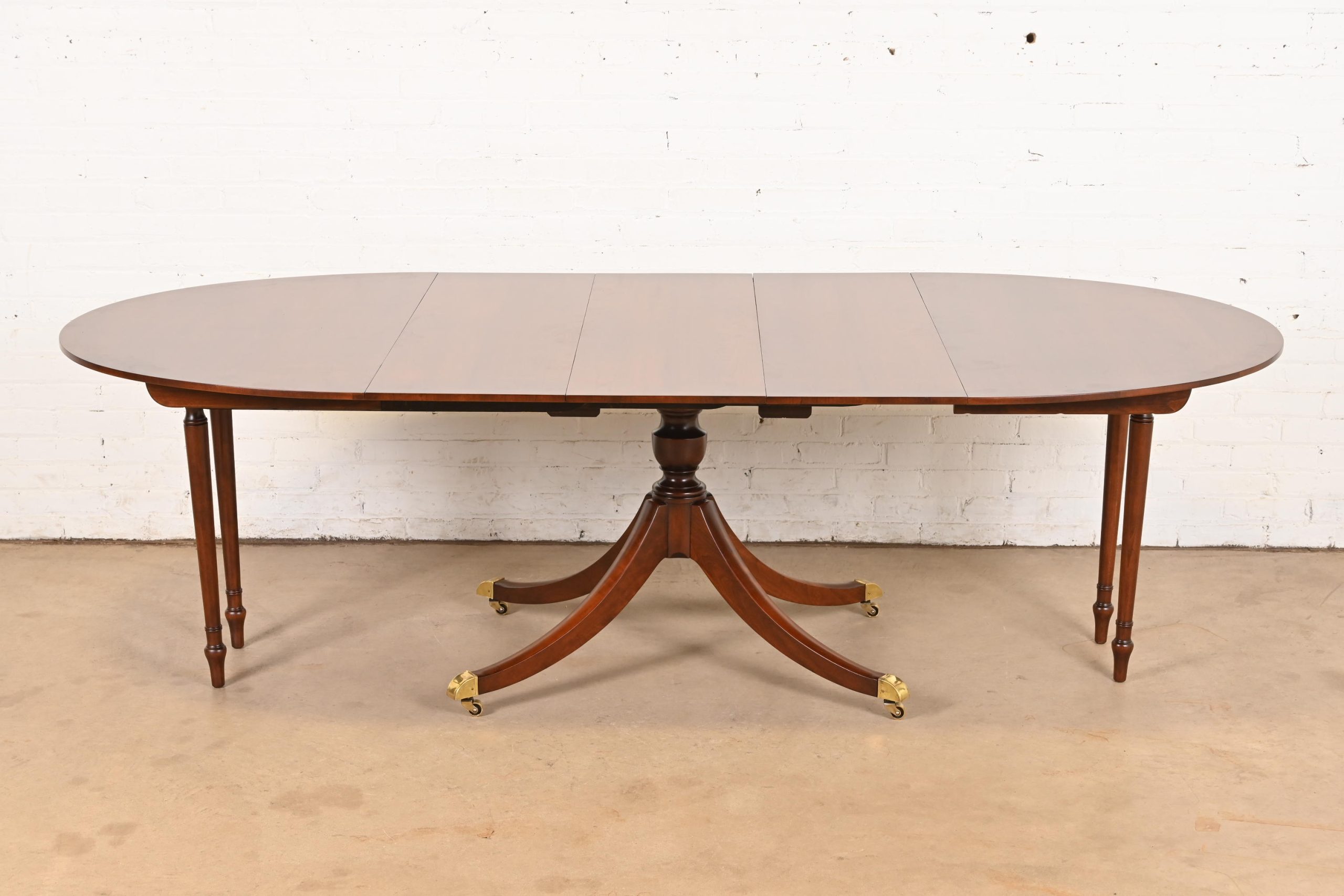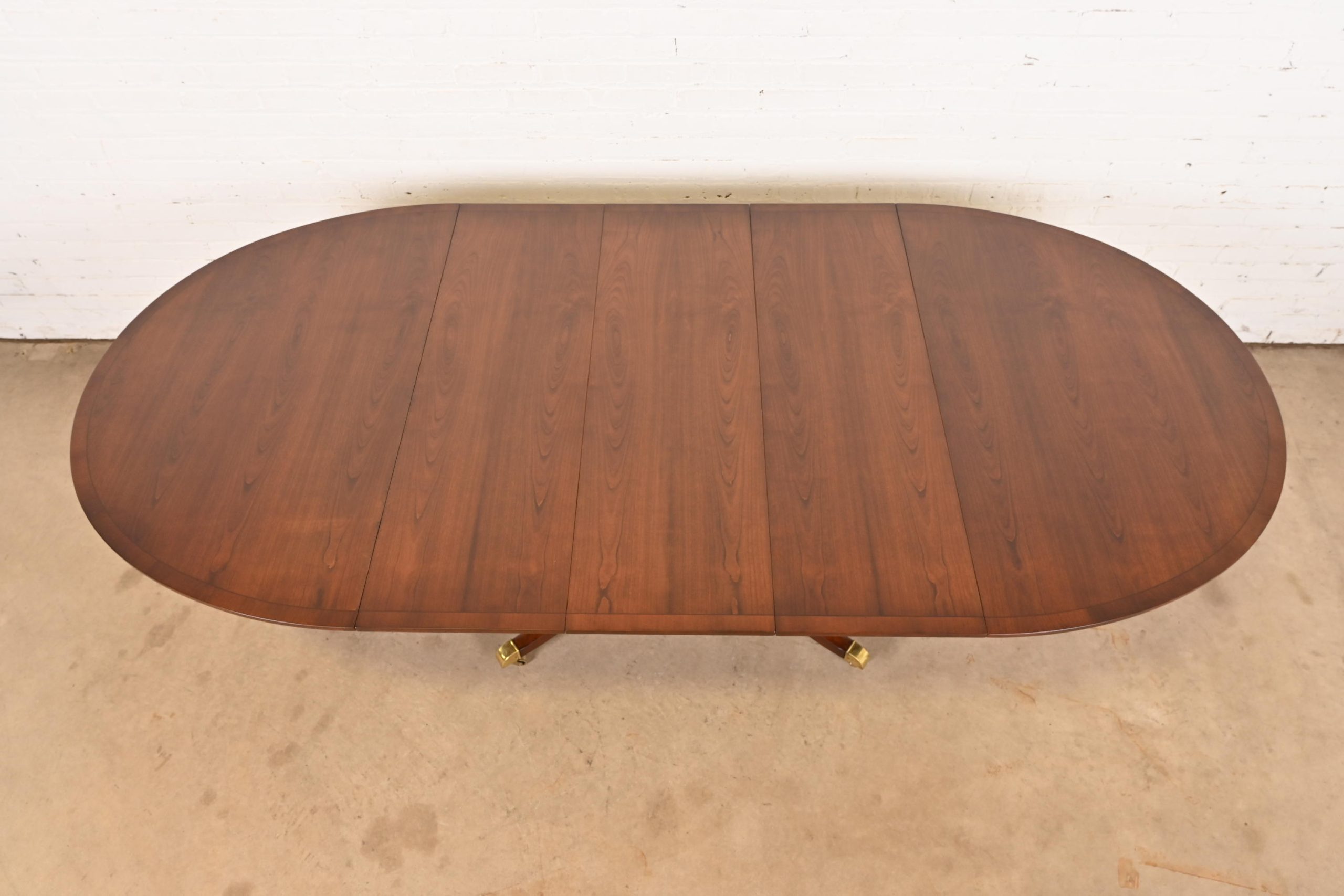Baker Furniture Georgian Banded Cherry Wood Pedestal Extension Dining Table, Newly Refinished