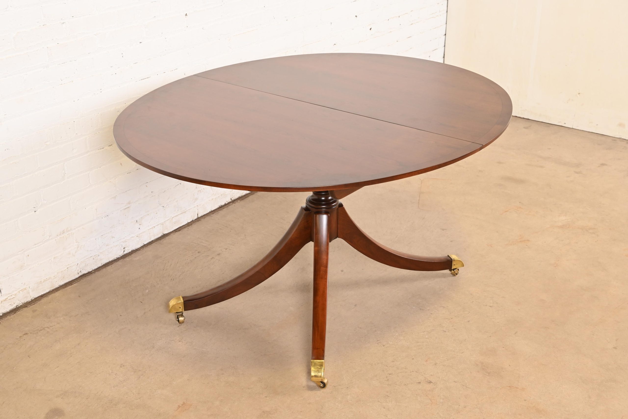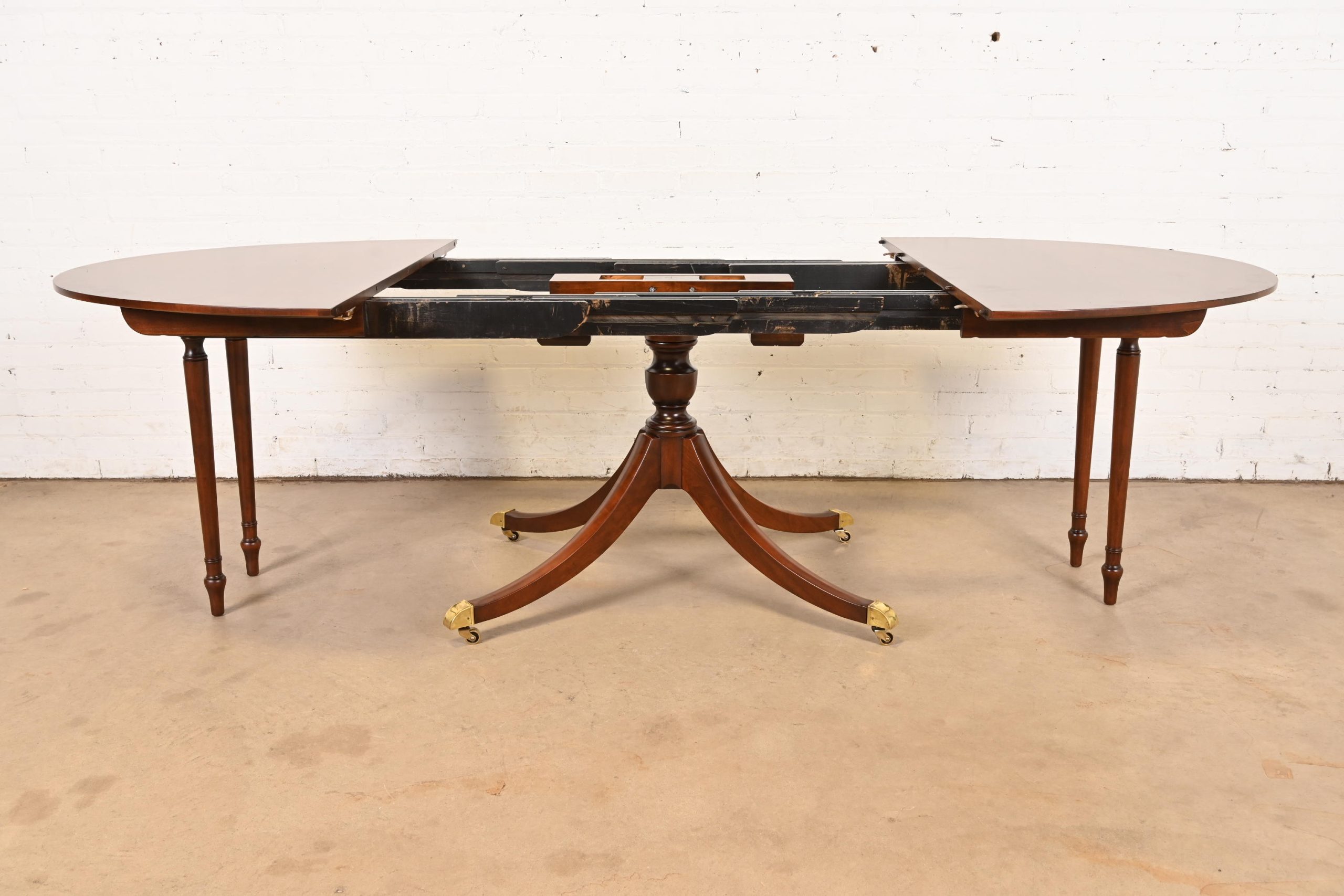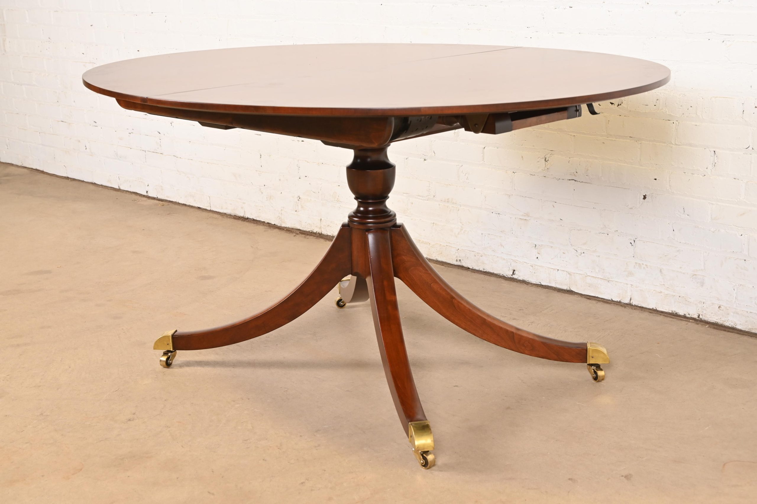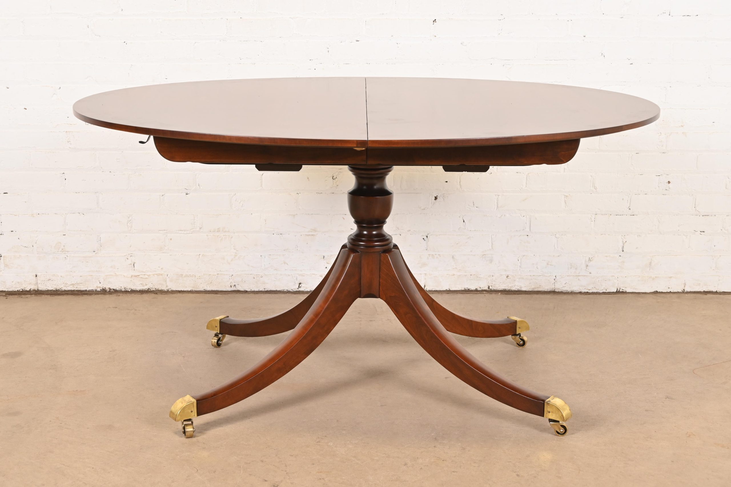Baker Furniture Georgian Banded Cherry Wood Pedestal Extension Dining Table, Newly Refinished