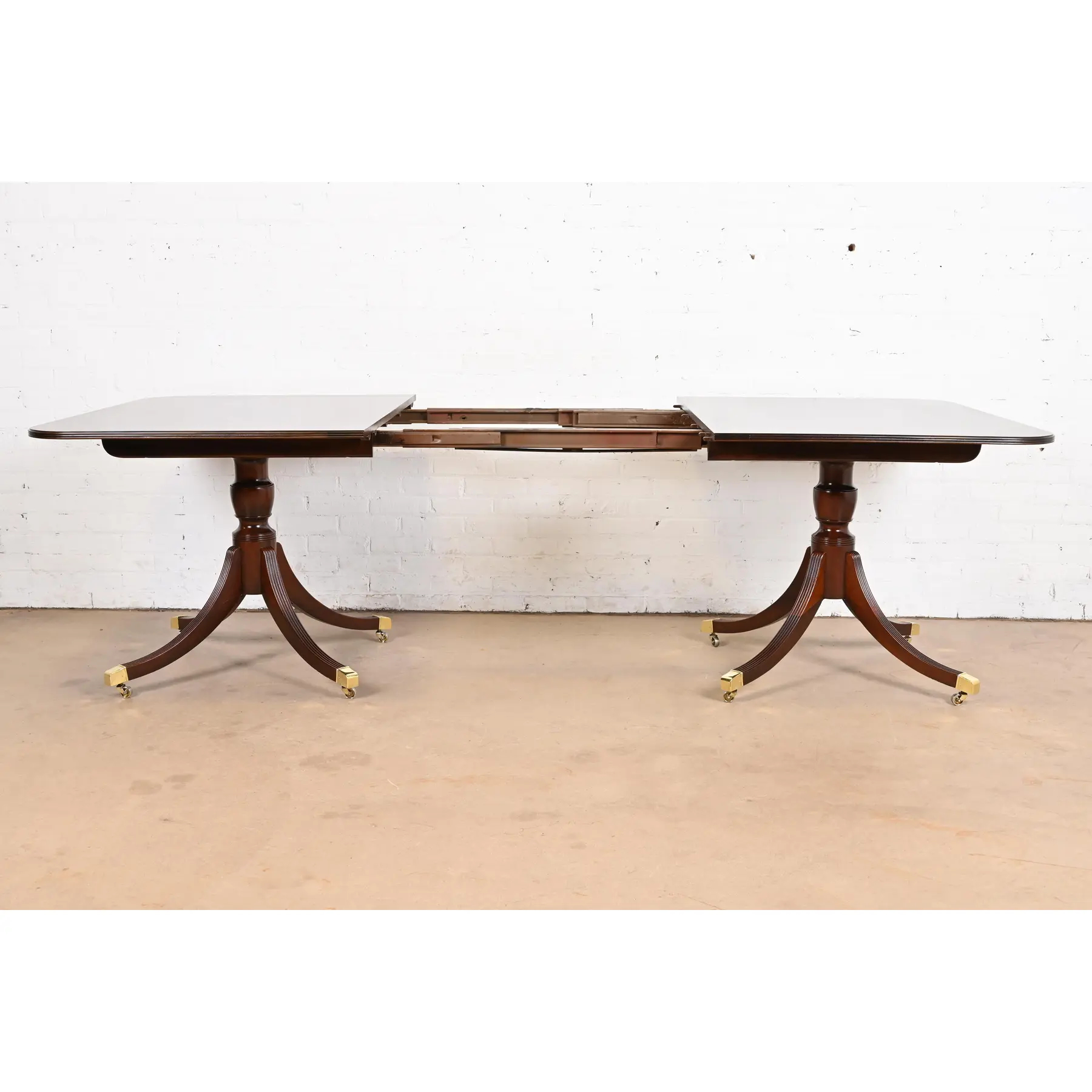 An exceptional Georgian or Regency style double pedestal extension dining table