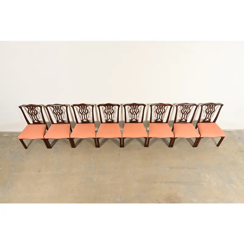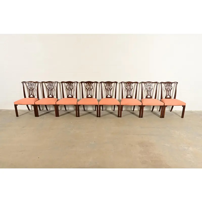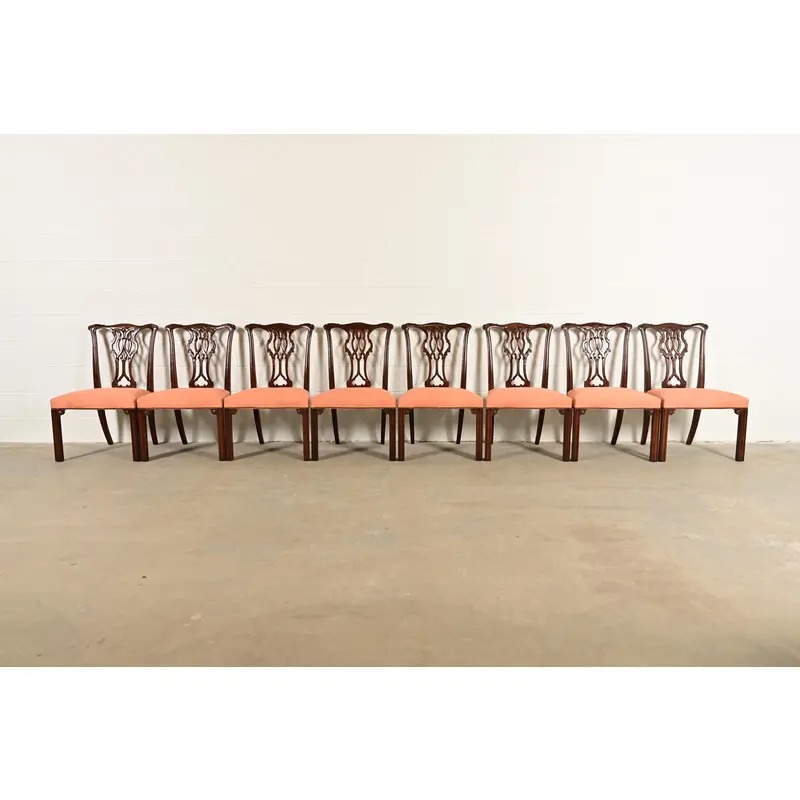 Baker Furniture Georgian Carved Mahogany Dining Chairs, Set of Eight