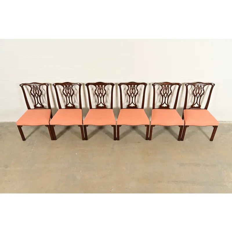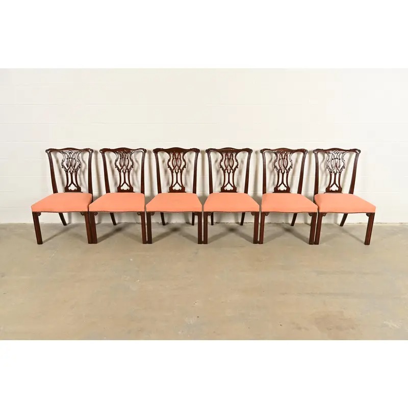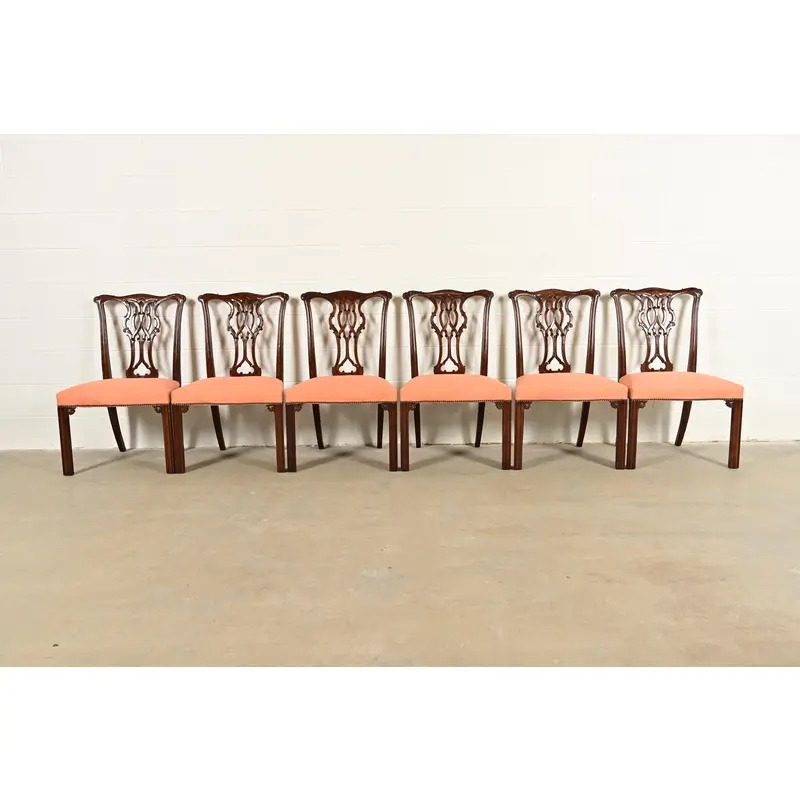 An outstanding set of six Georgian or Chippendale style dining chairs