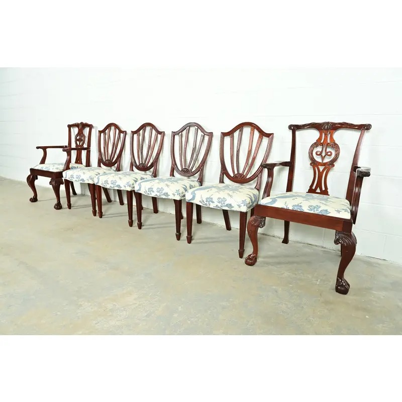 Baker Furniture Historic Charleston Carved Mahogany Dining Chairs, Set of Six