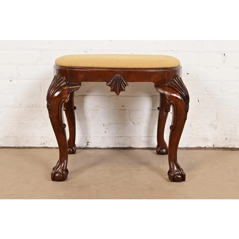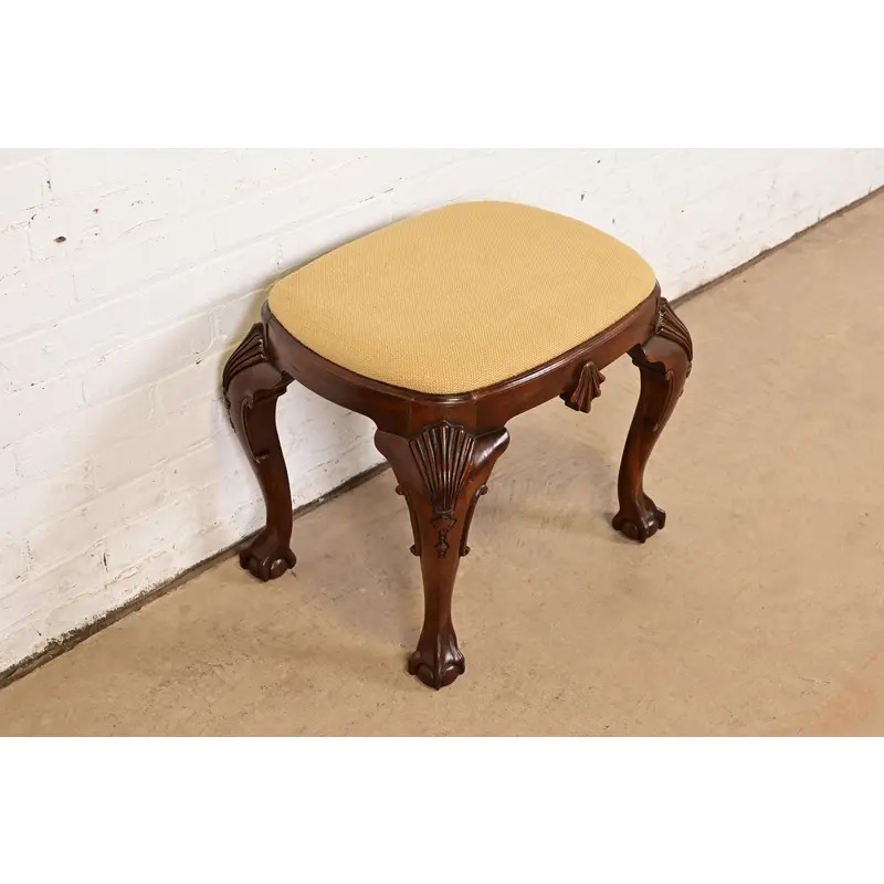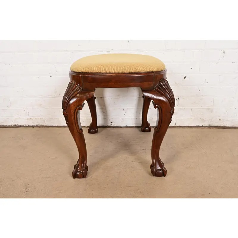 Baker Furniture Historic Charleston Chippendale Carved Mahogany Stool or Ottoman