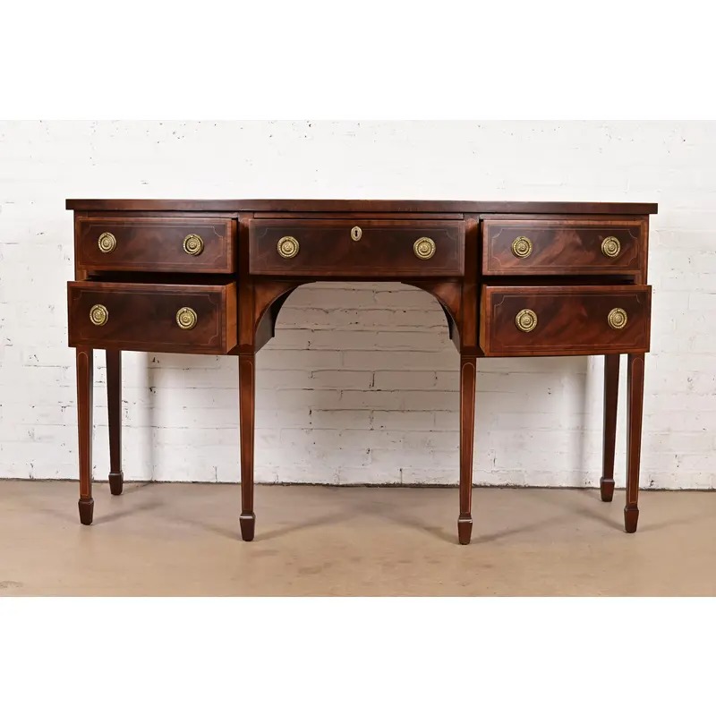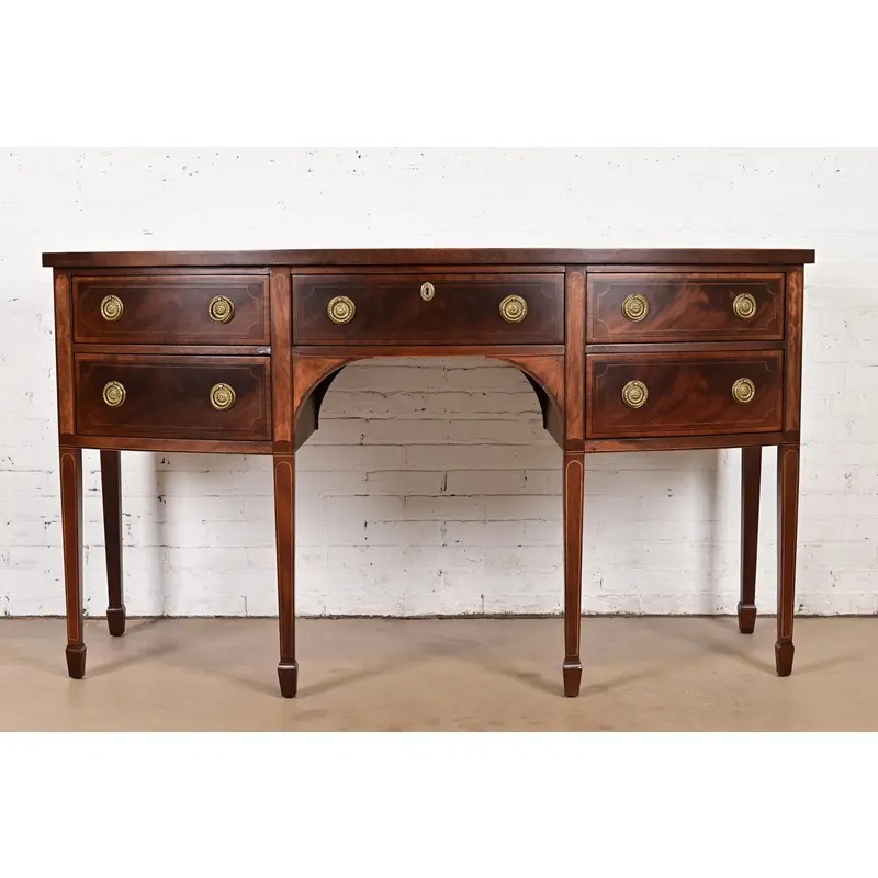 Baker Furniture Historic Charleston Federal Inlaid Flame Mahogany Sideboard Credenza, Newly Refinished