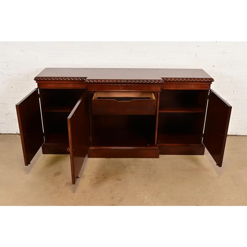 A gorgeous Georgian or Chippendale style breakfront sideboard buffet, credenza, or bar cabinet