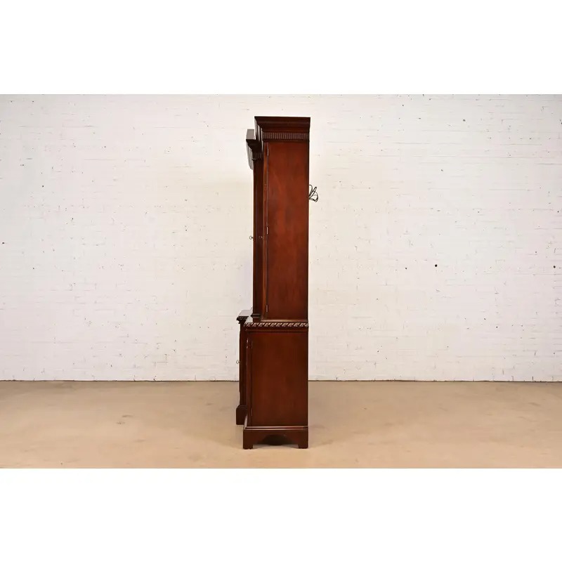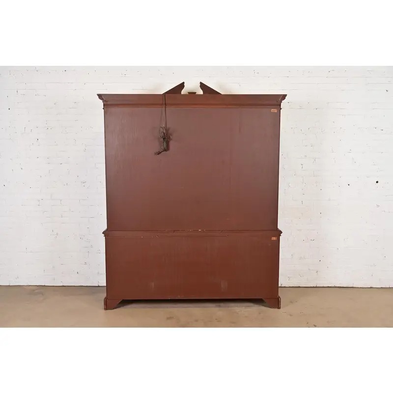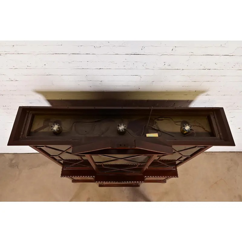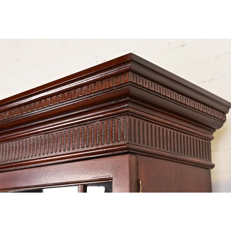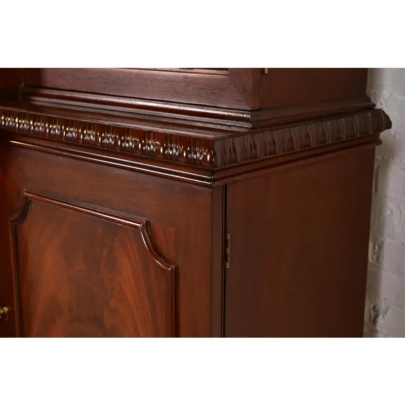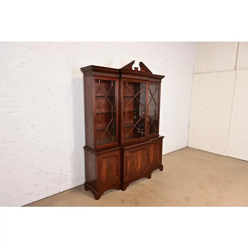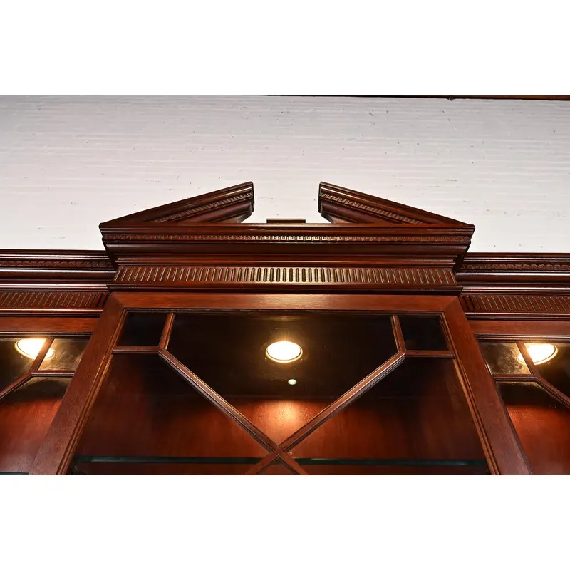 Baker Furniture Historic Charleston Georgian Flame Mahogany Lighted Breakfront Bookcase Cabinet
