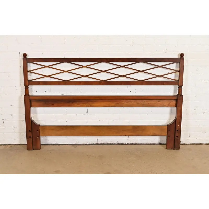 A gorgeous mid-century French Regency carved cherry wood queen size headboard