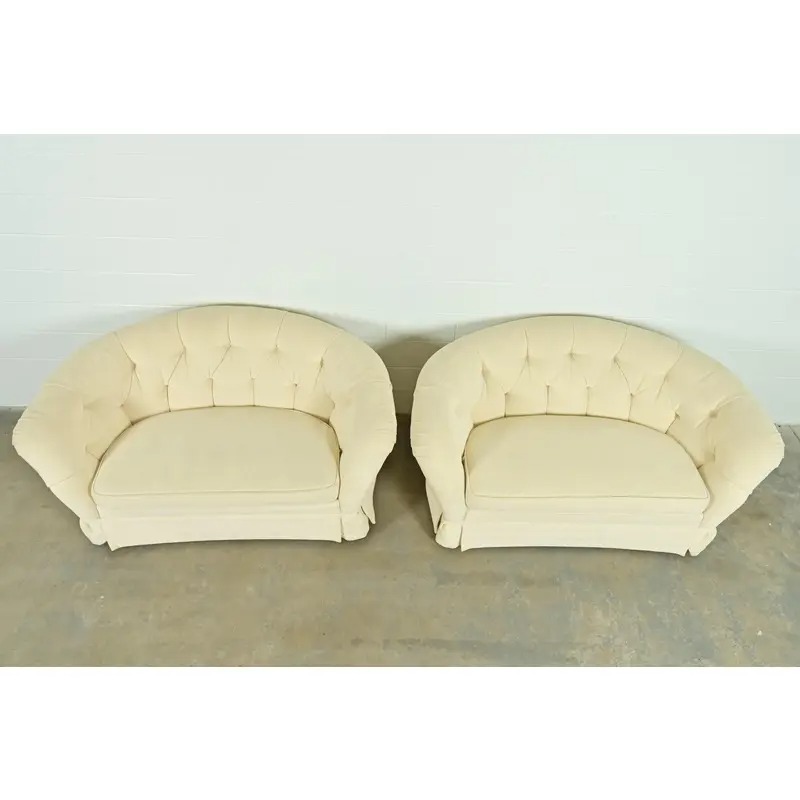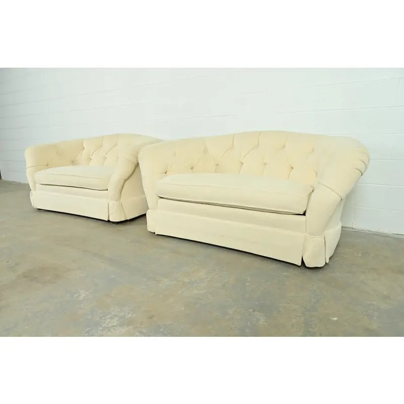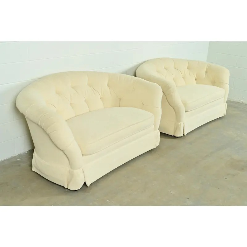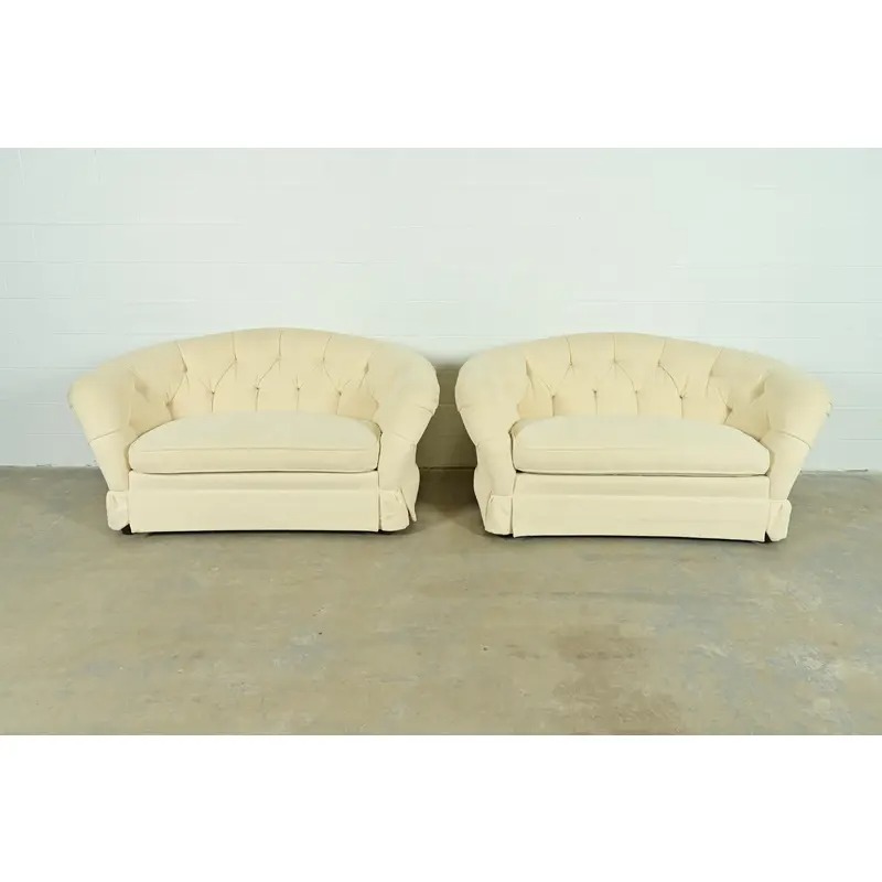 A pair of gorgeous and very comfortable Mid-Century Hollywood Regency tufted sofas or loveseats