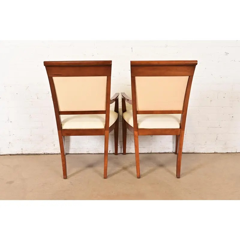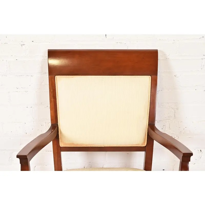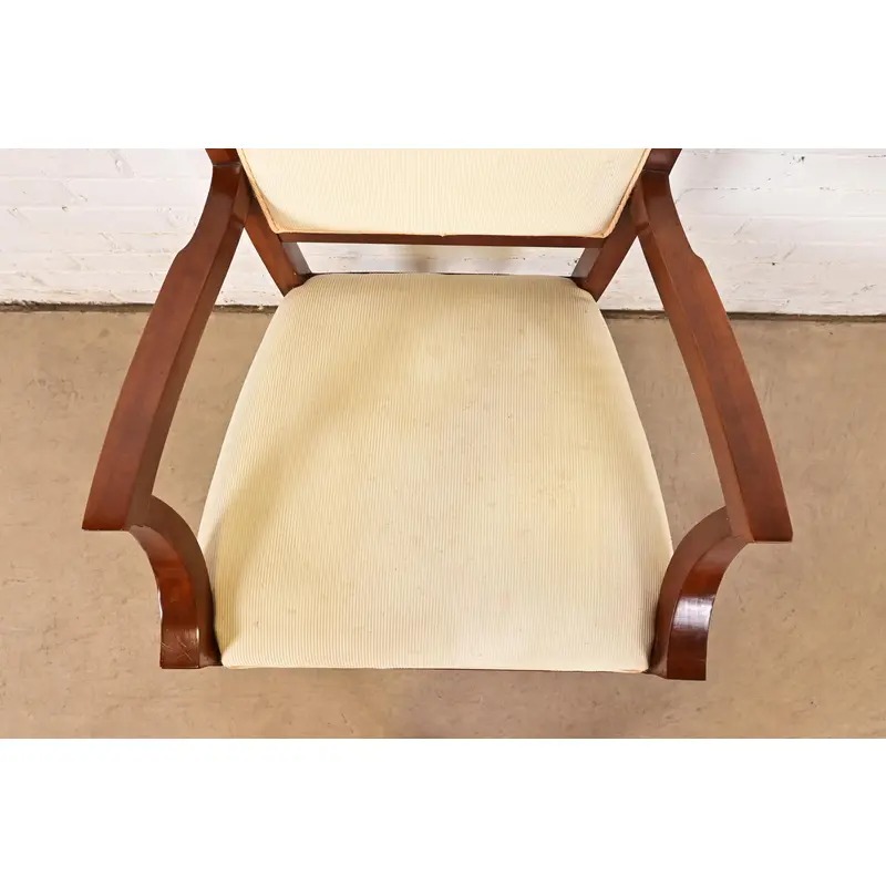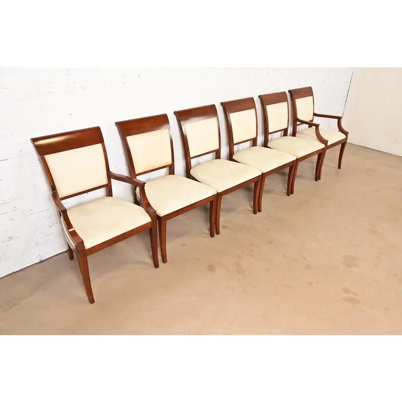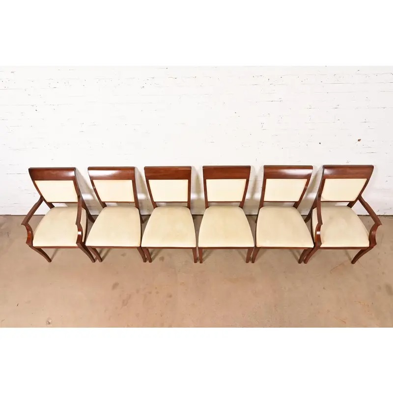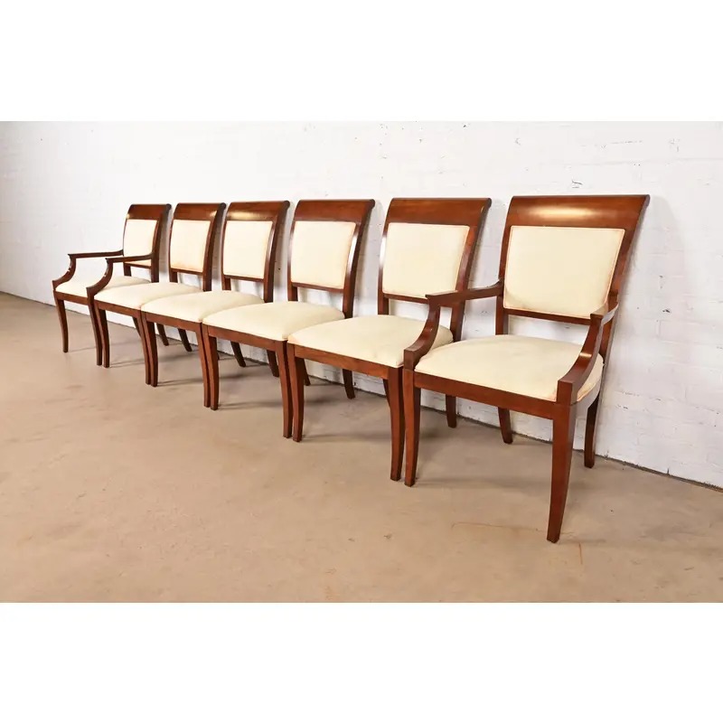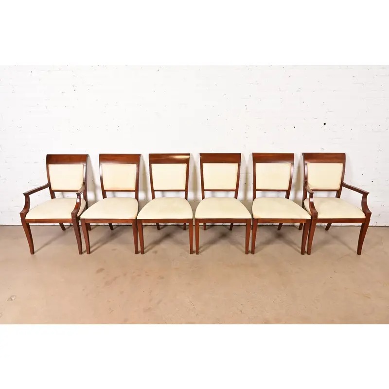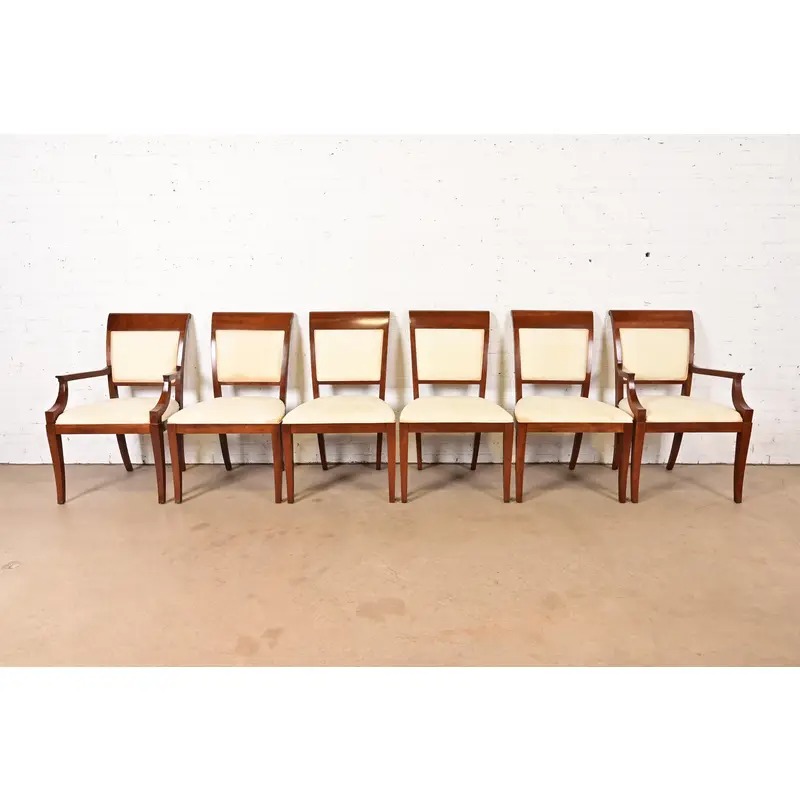 Baker Furniture Modern Regency Cherry Wood Upholstered Dining Chairs, Set of Six