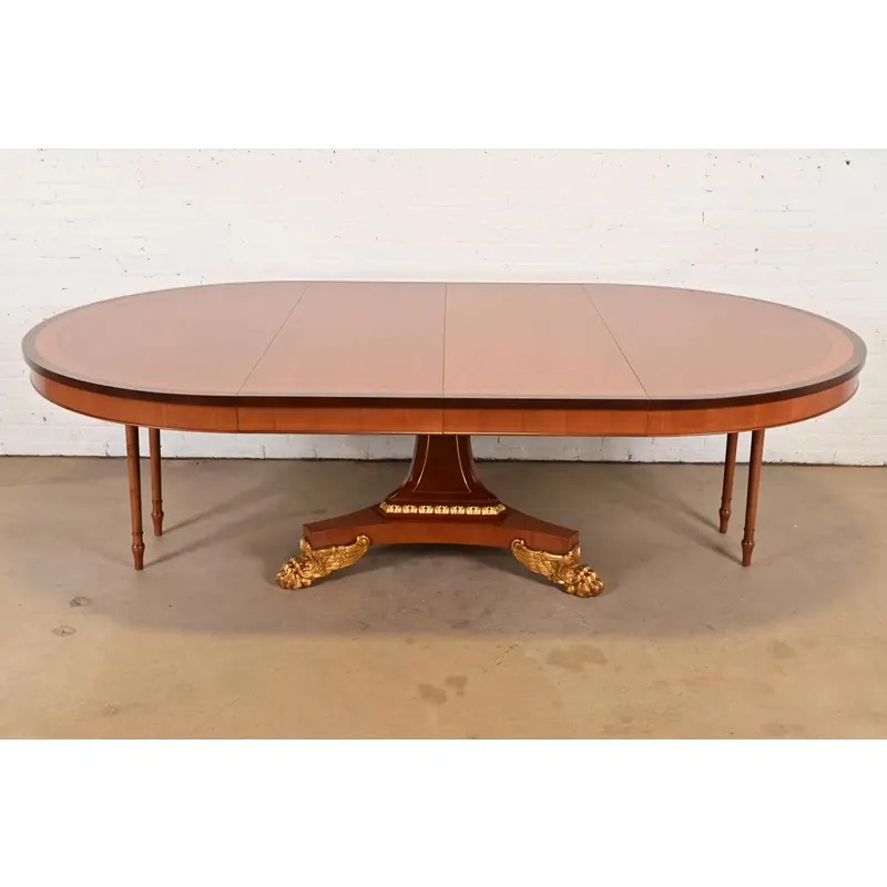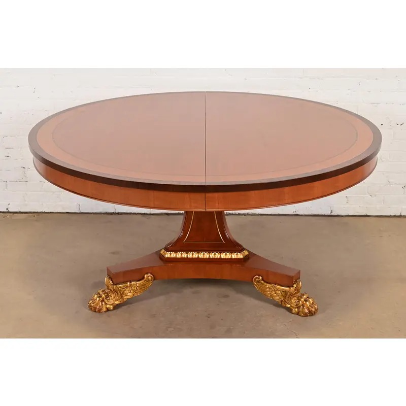 An exceptional Empire, Regency, or Neoclassical style pedestal extension dining table