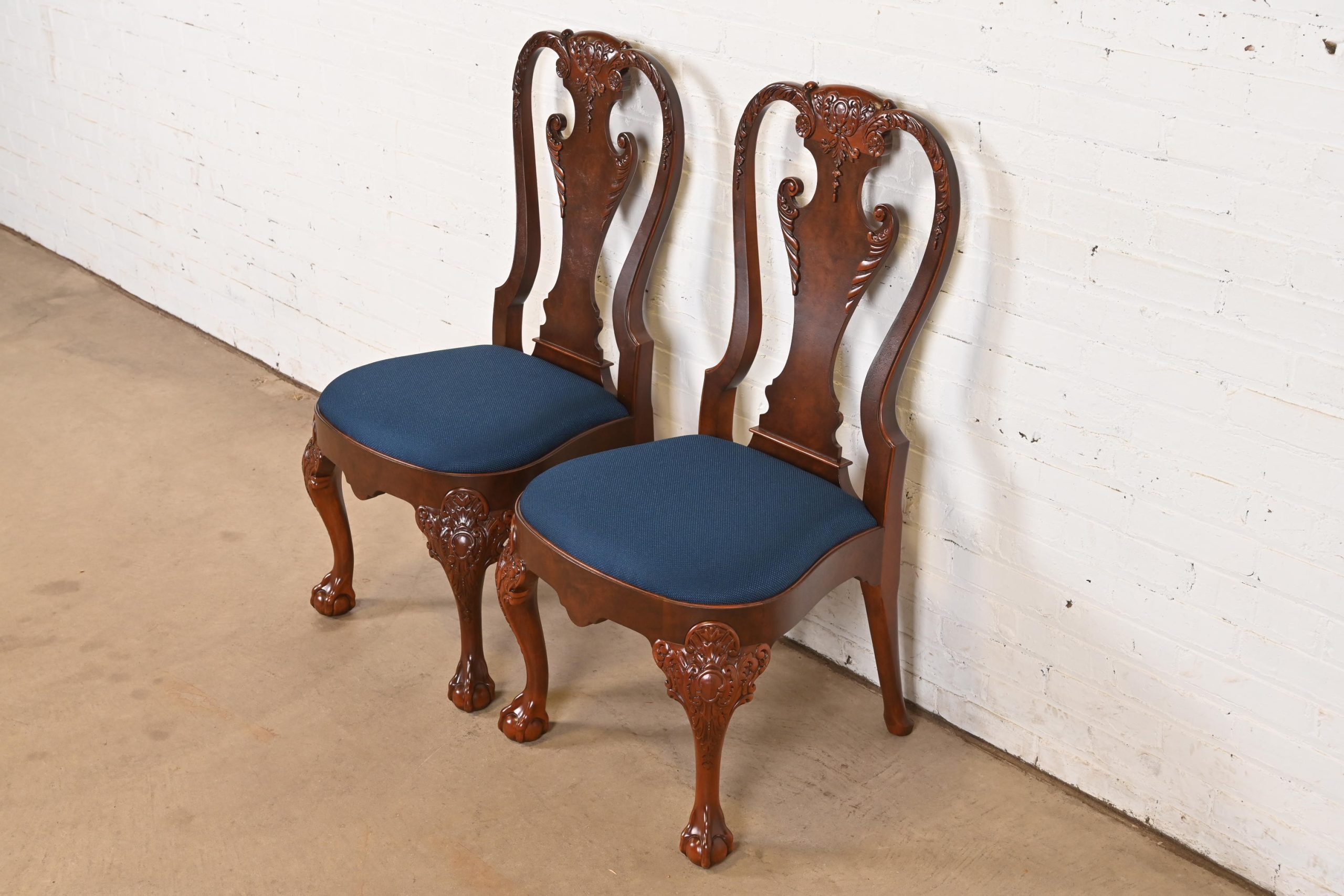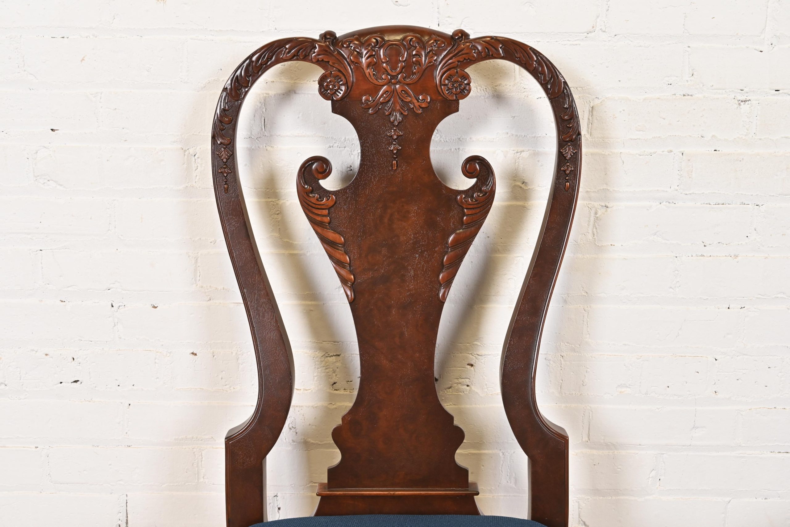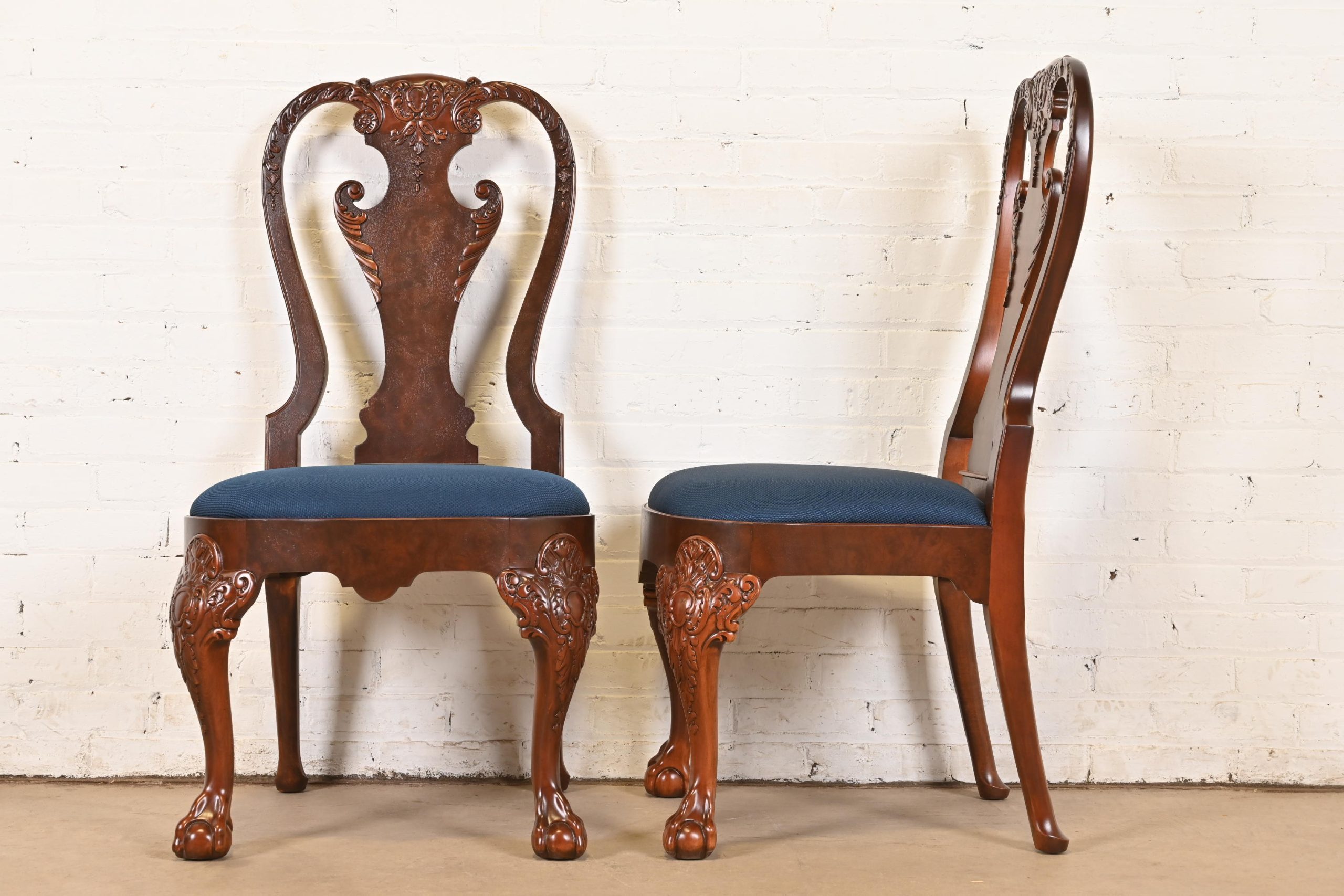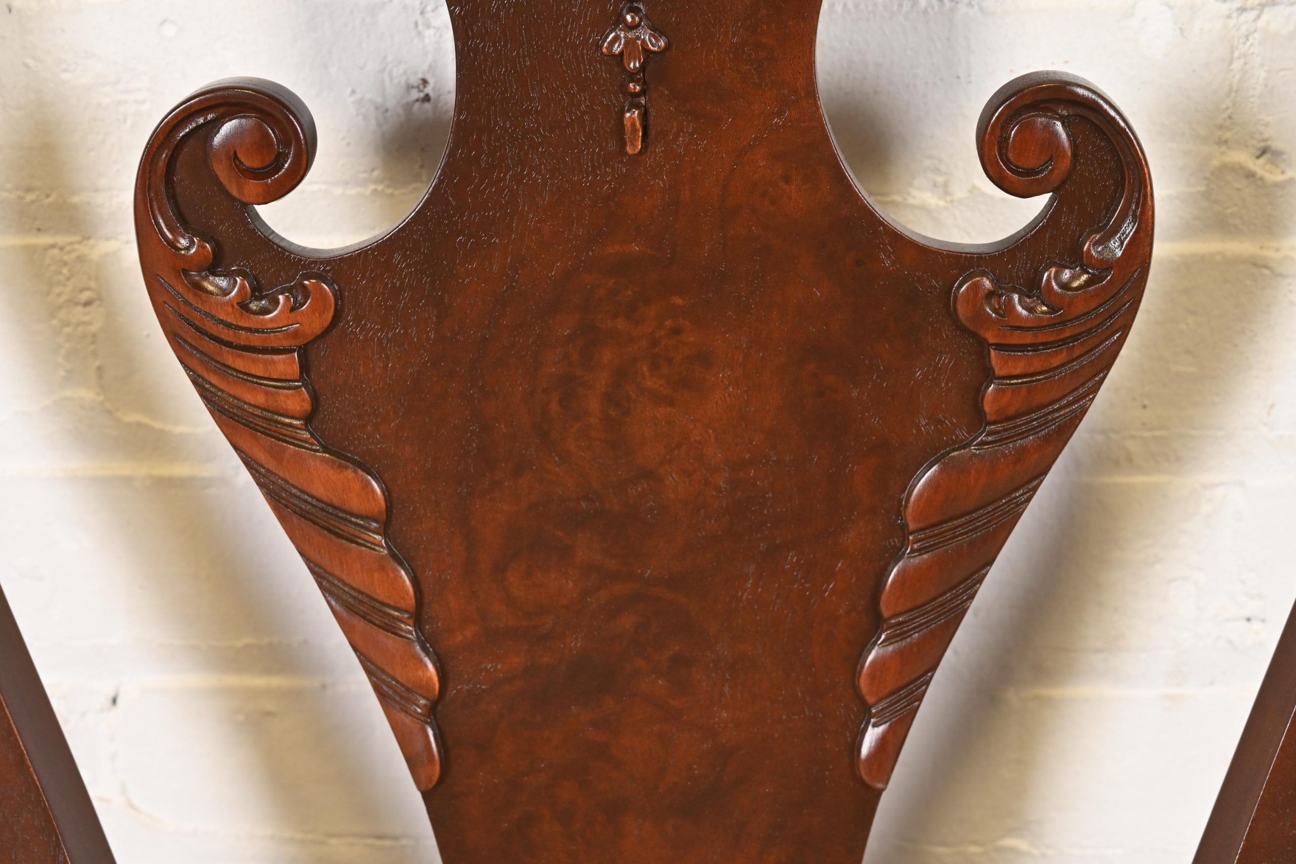Baker Furniture Stately Homes Chippendale Carved Burled Walnut Side Chairs or Dining Chairs, Newly Refinished