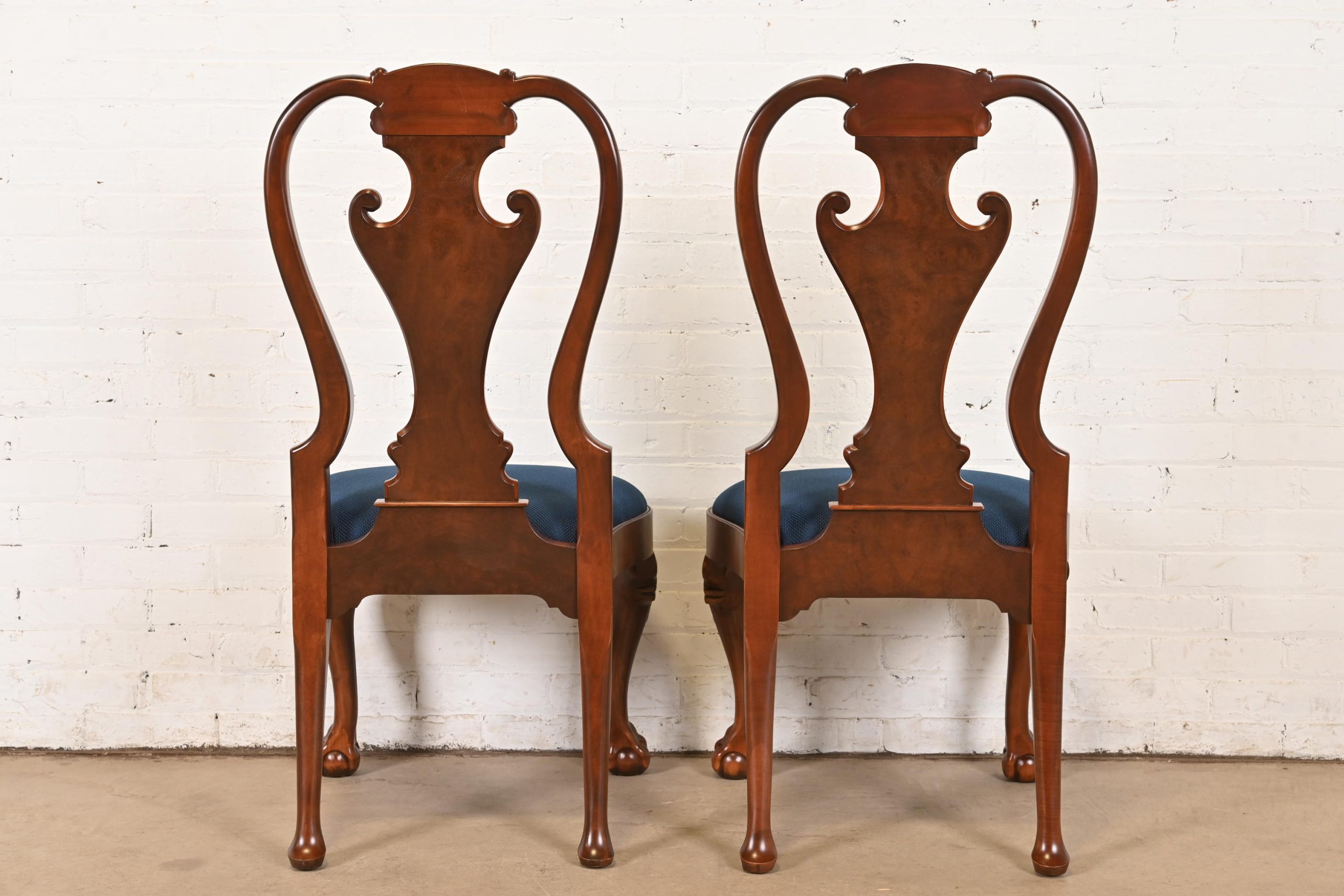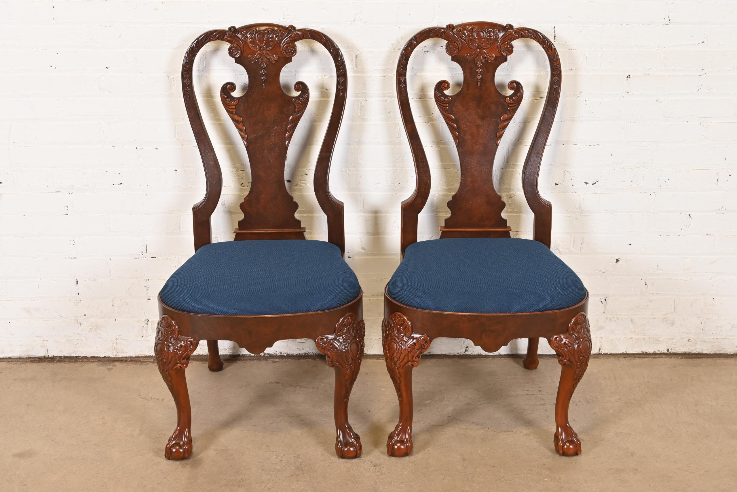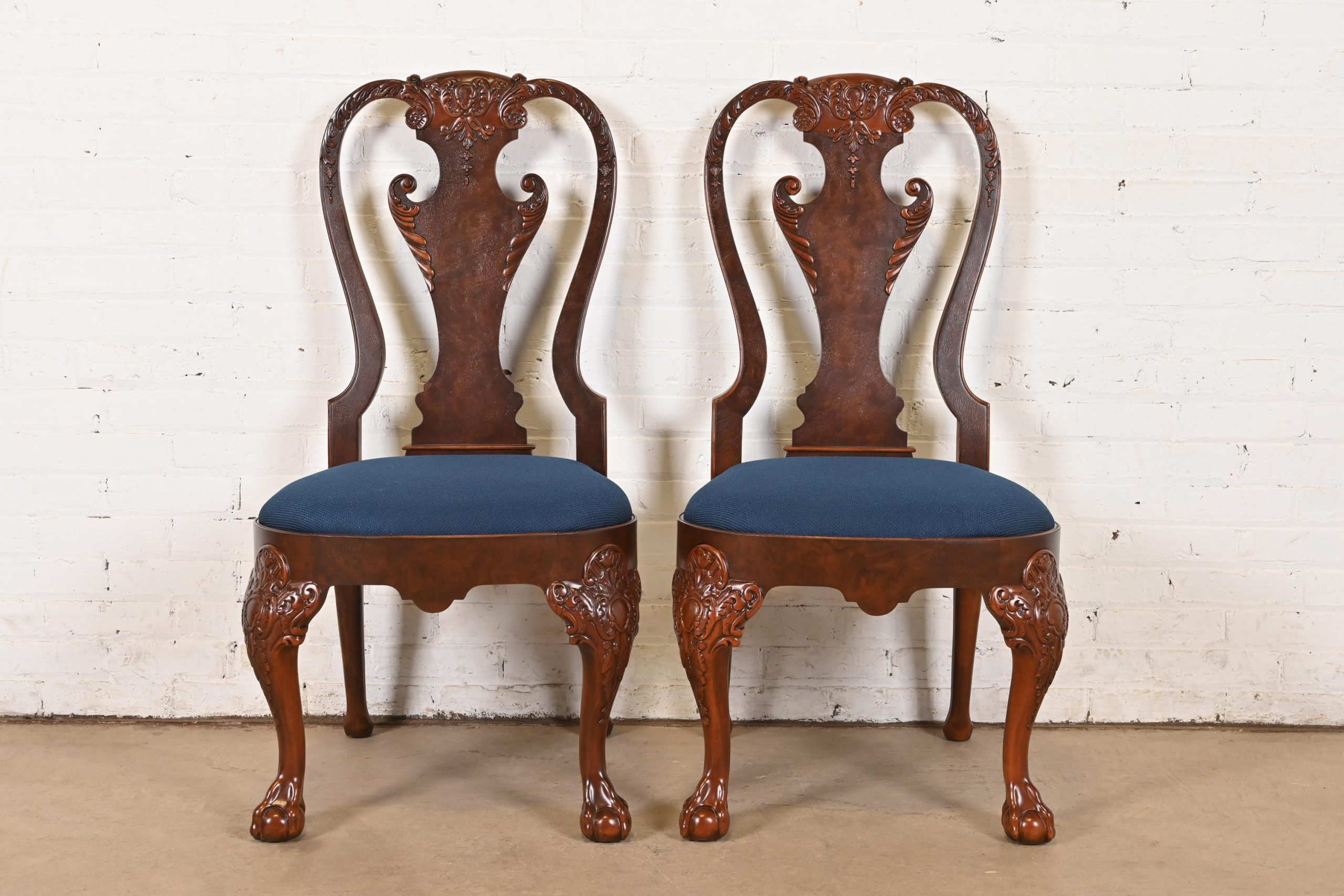 Baker Furniture Stately Homes Chippendale Carved Burled Walnut Side Chairs or Dining Chairs, Newly Refinished