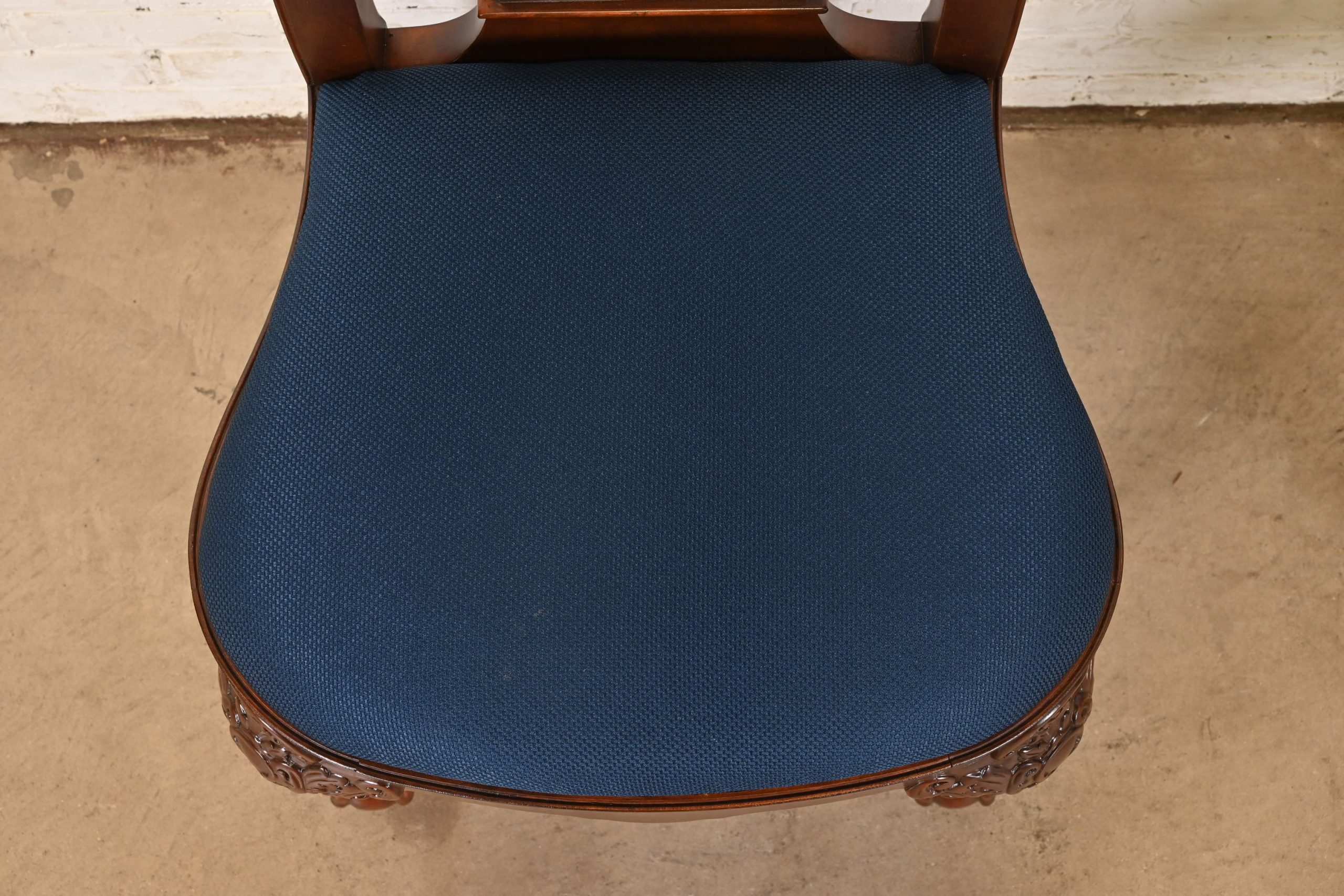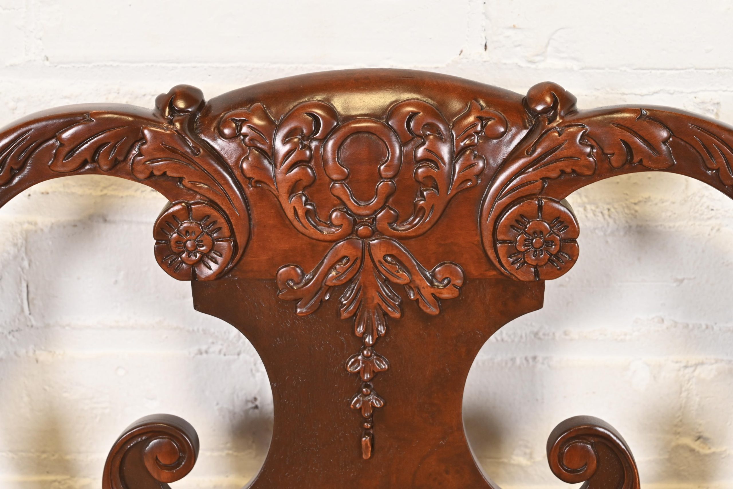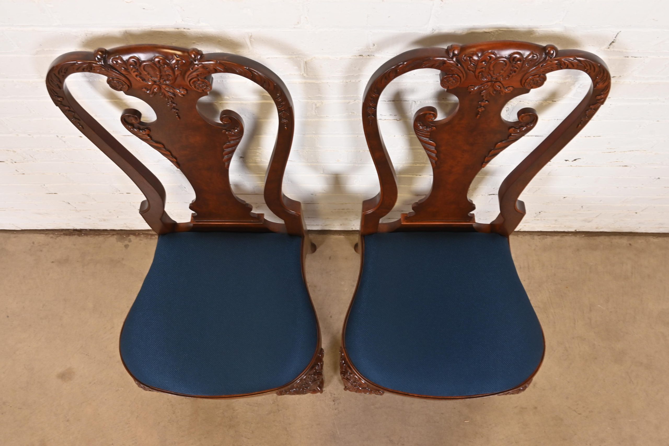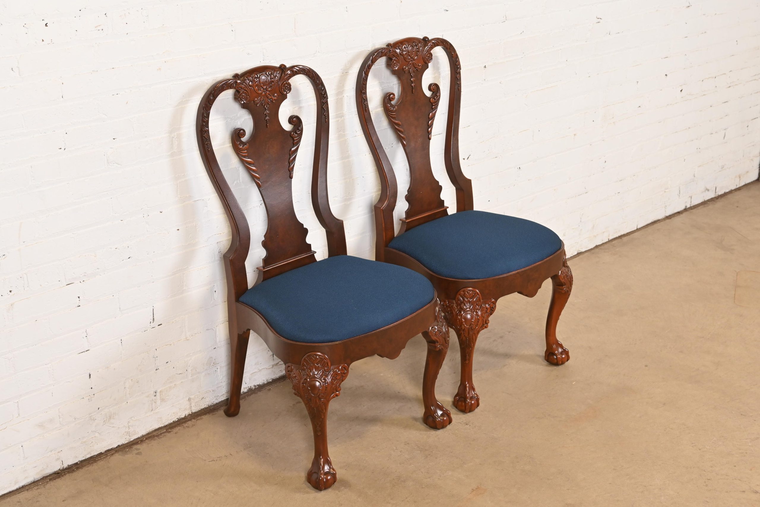 Baker Furniture Stately Homes Chippendale Carved Burled Walnut Side Chairs or Dining Chairs, Newly Refinished