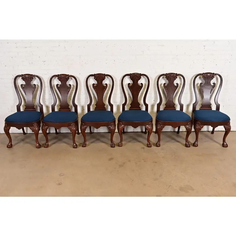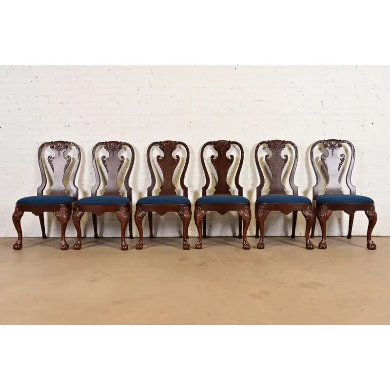An outstanding set of six Georgian or Chippendale style side chairs or dining chairs