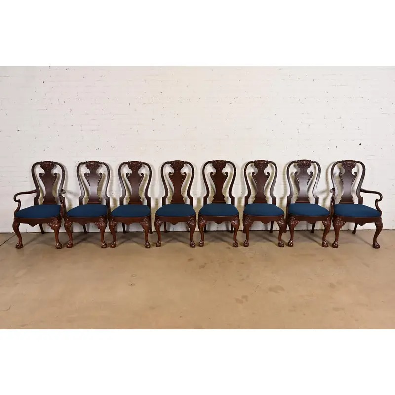 An outstanding set of eight Georgian or Chippendale style dining chairs