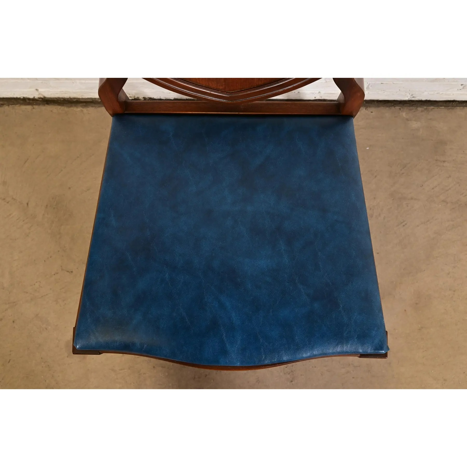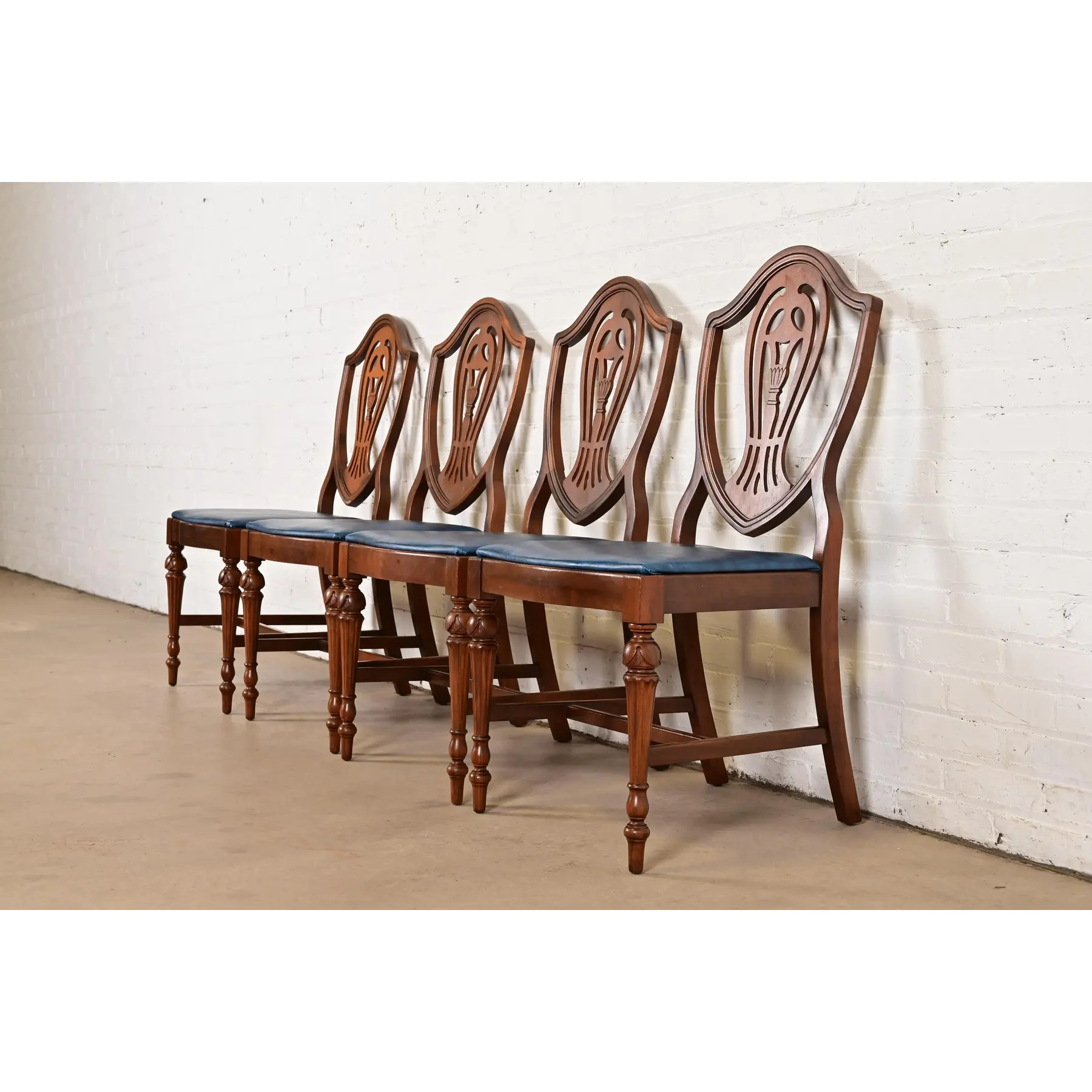 Baker Furniture Style Federal Carved Mahogany Shield Back Dining Chairs, Set of Four