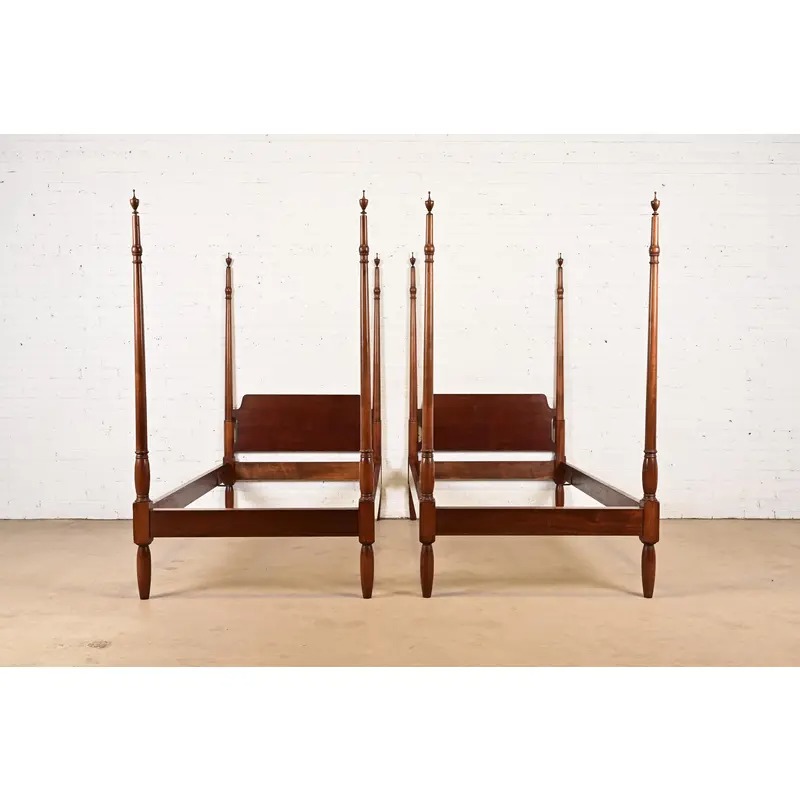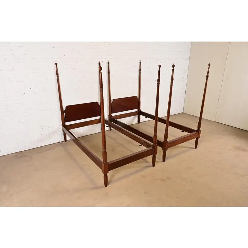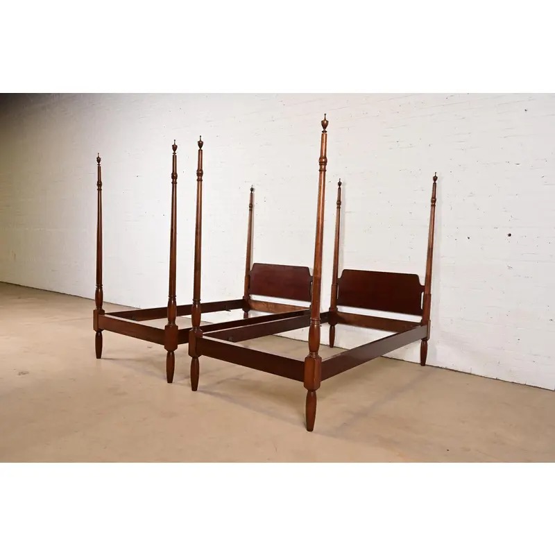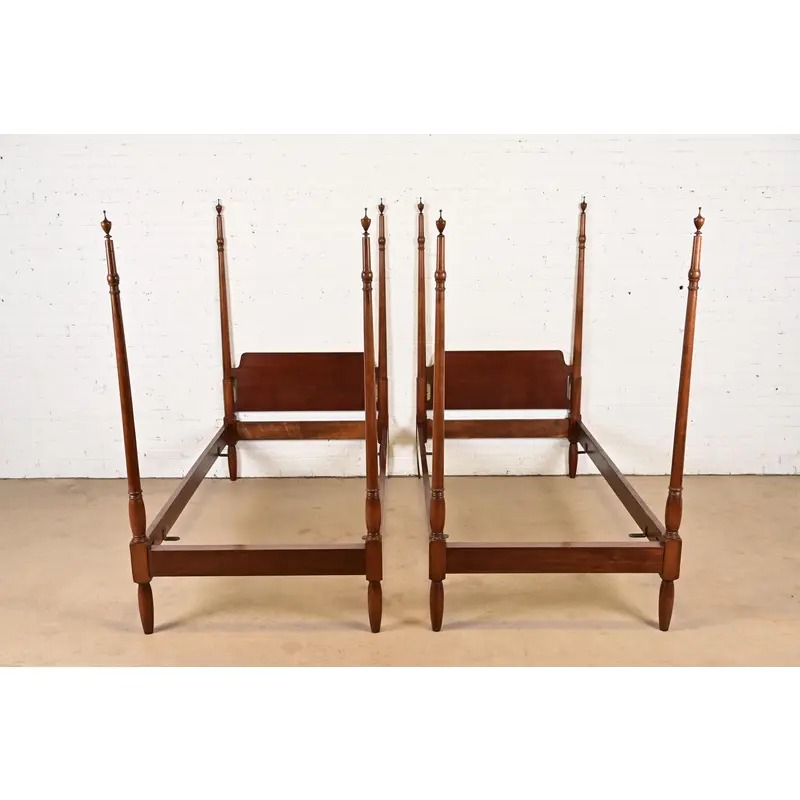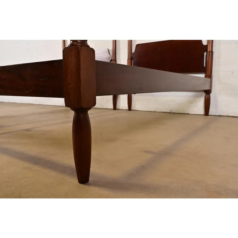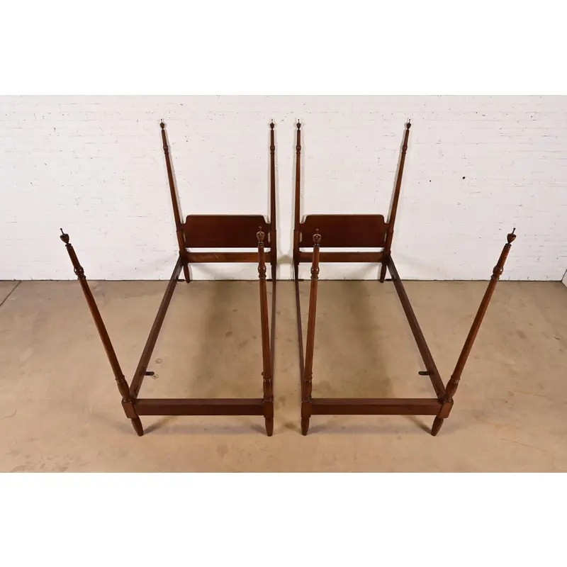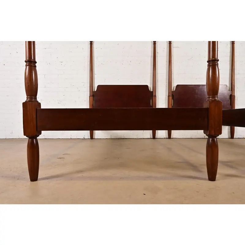 A gorgeous pair of Federal or Georgian style carved mahogany twin size poster beds